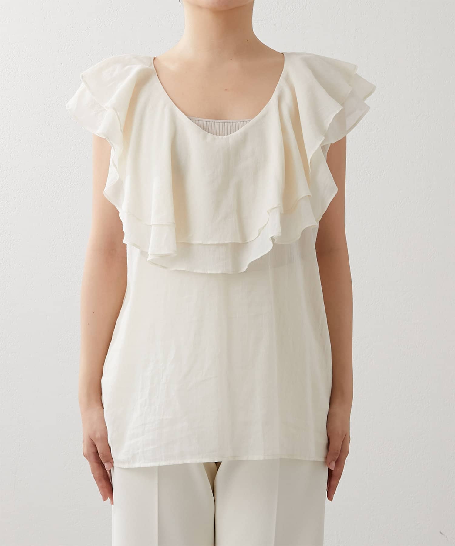 フリル2WAYノースリブラウス