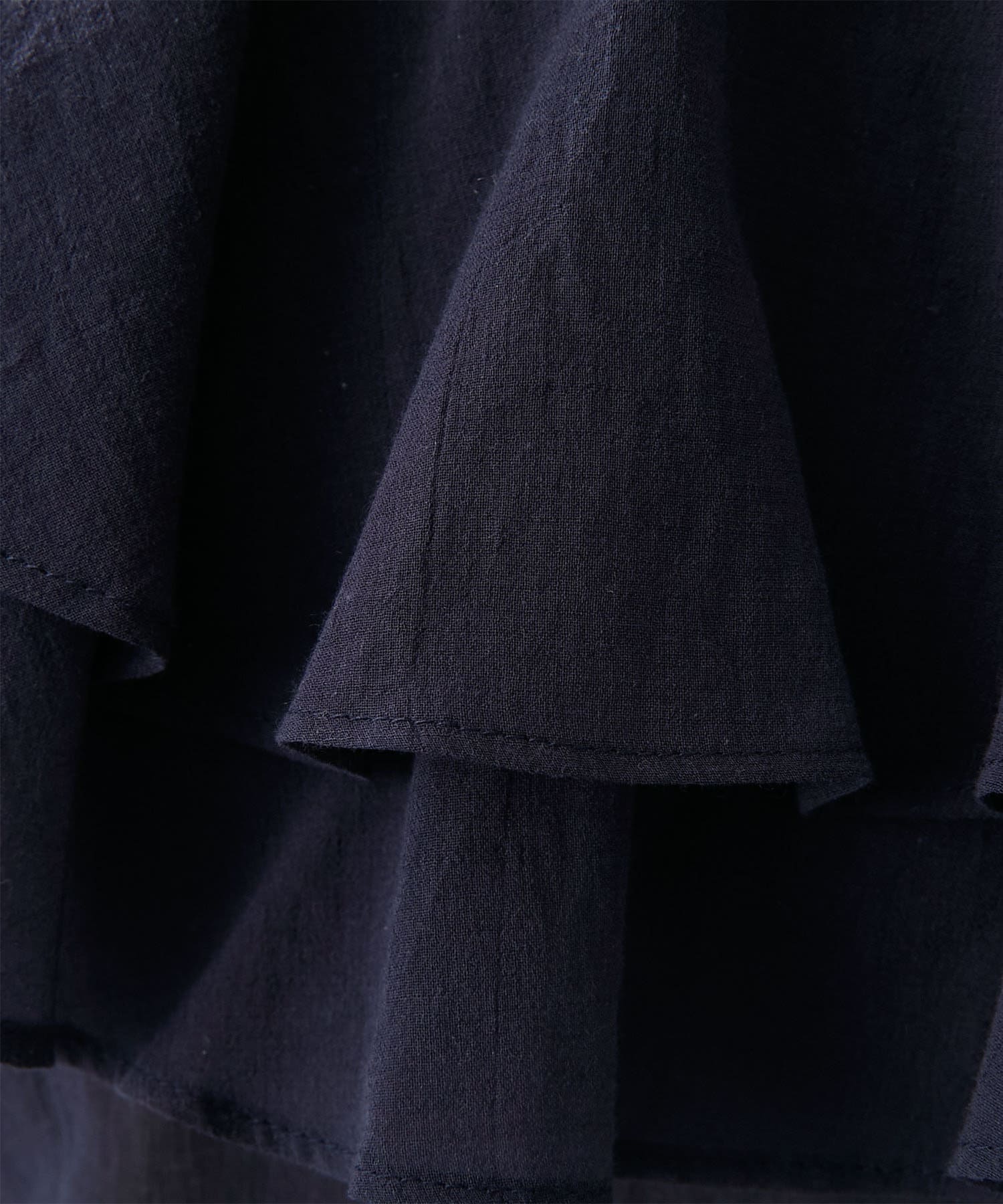 ■肩周りを覆う大きめのフリルカラーが気になる二の腕をカバーし、一枚でも楽しめるデザイン。