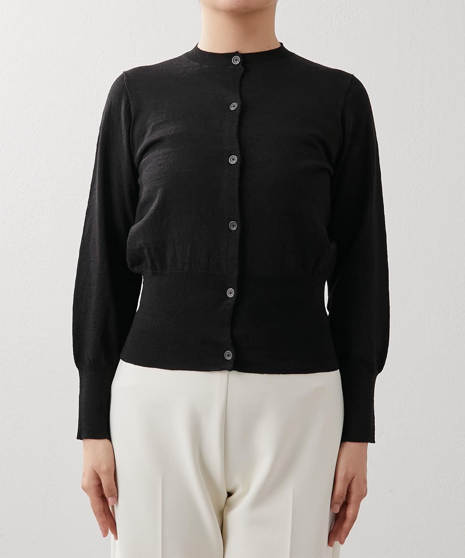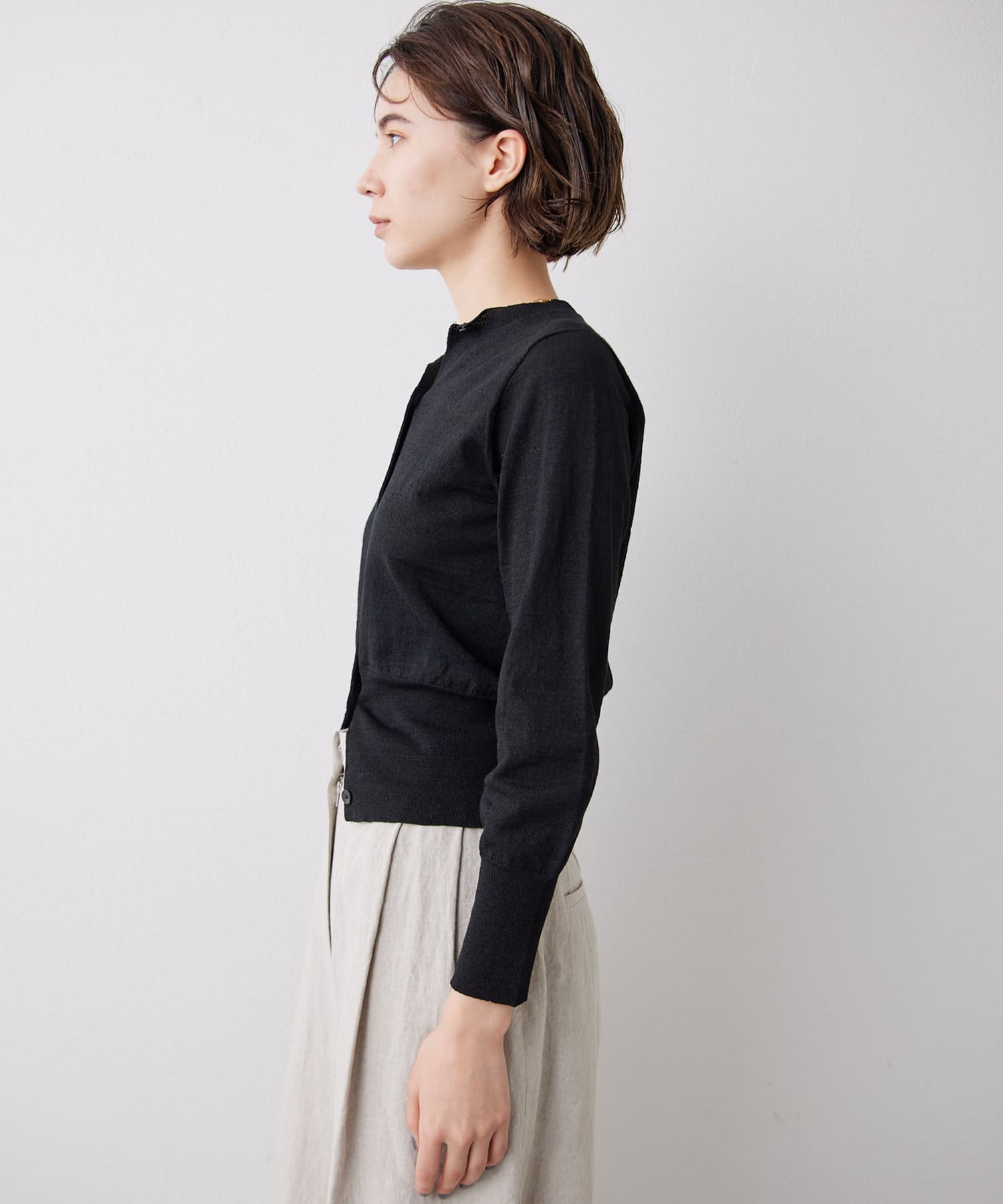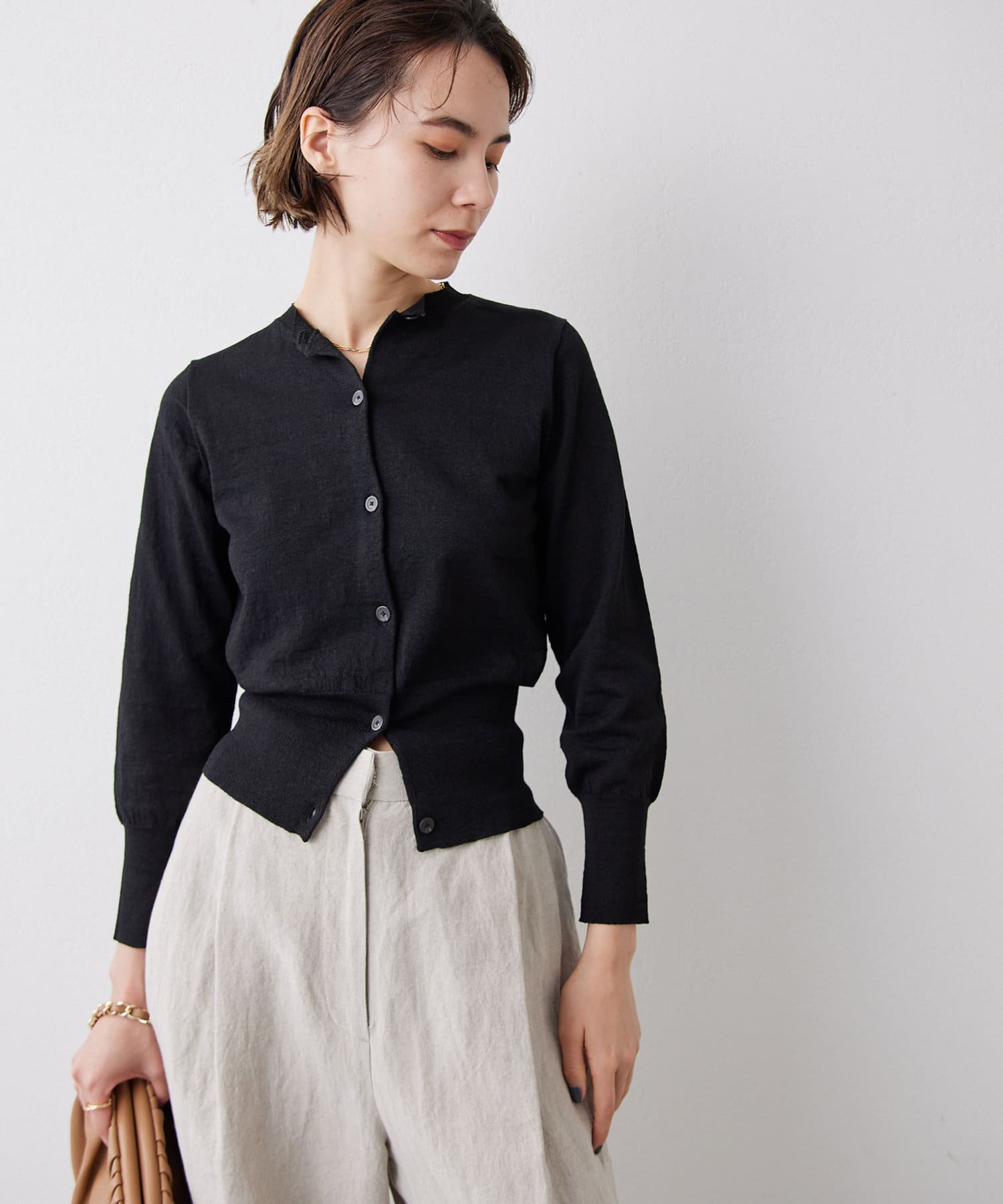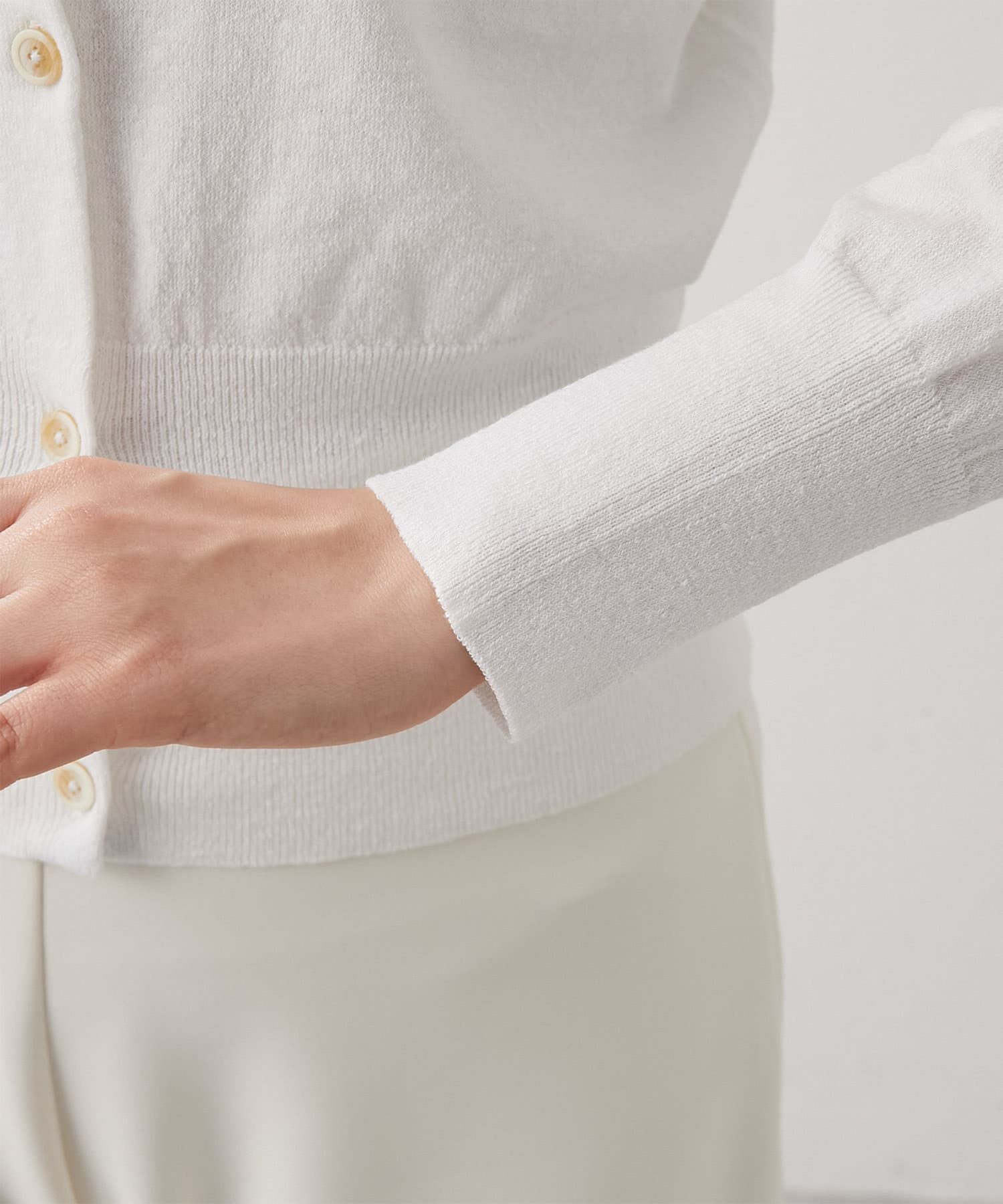 ■クロップド丈でコンパクトなサイズ感に仕立てたニットカーディガン。