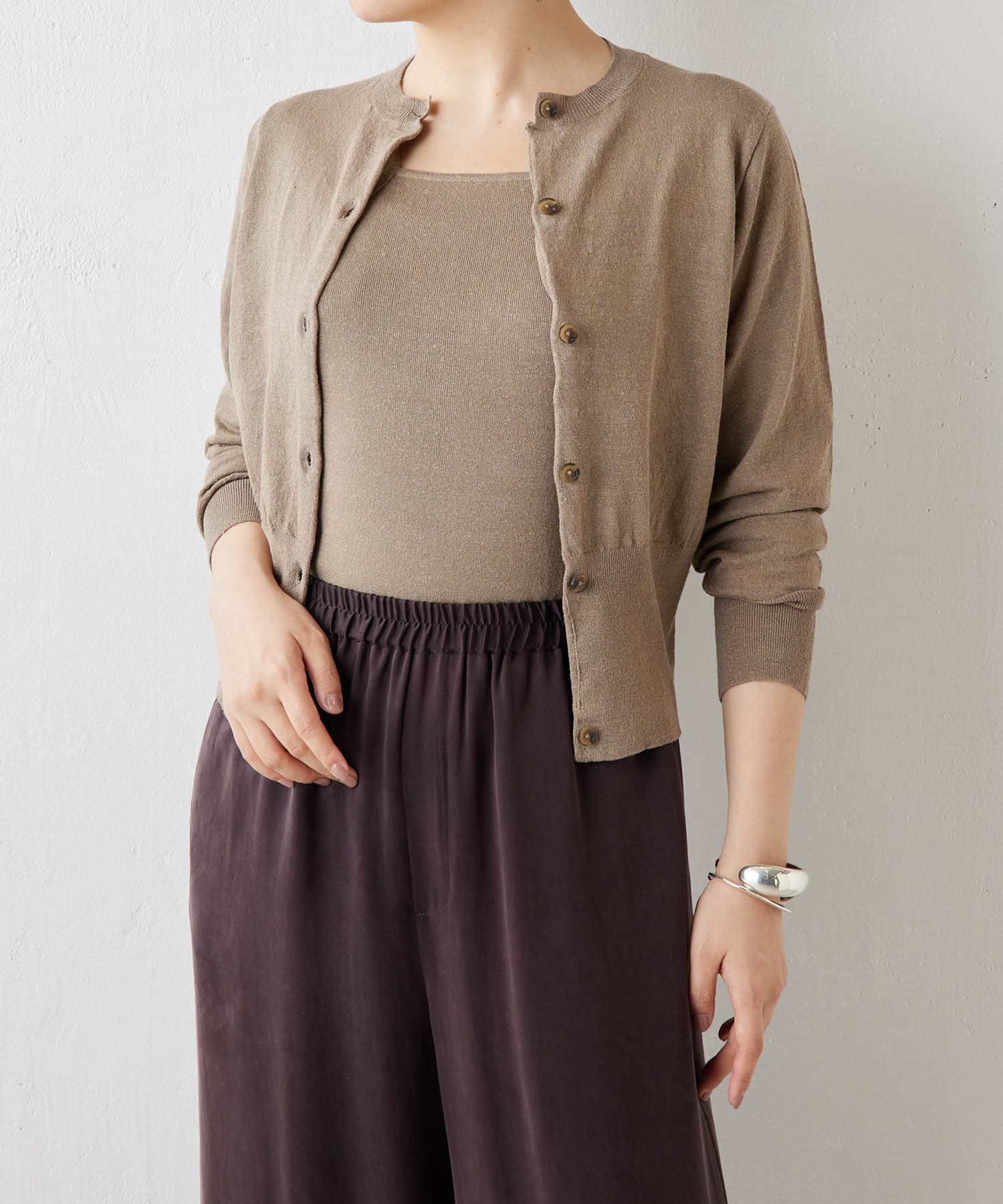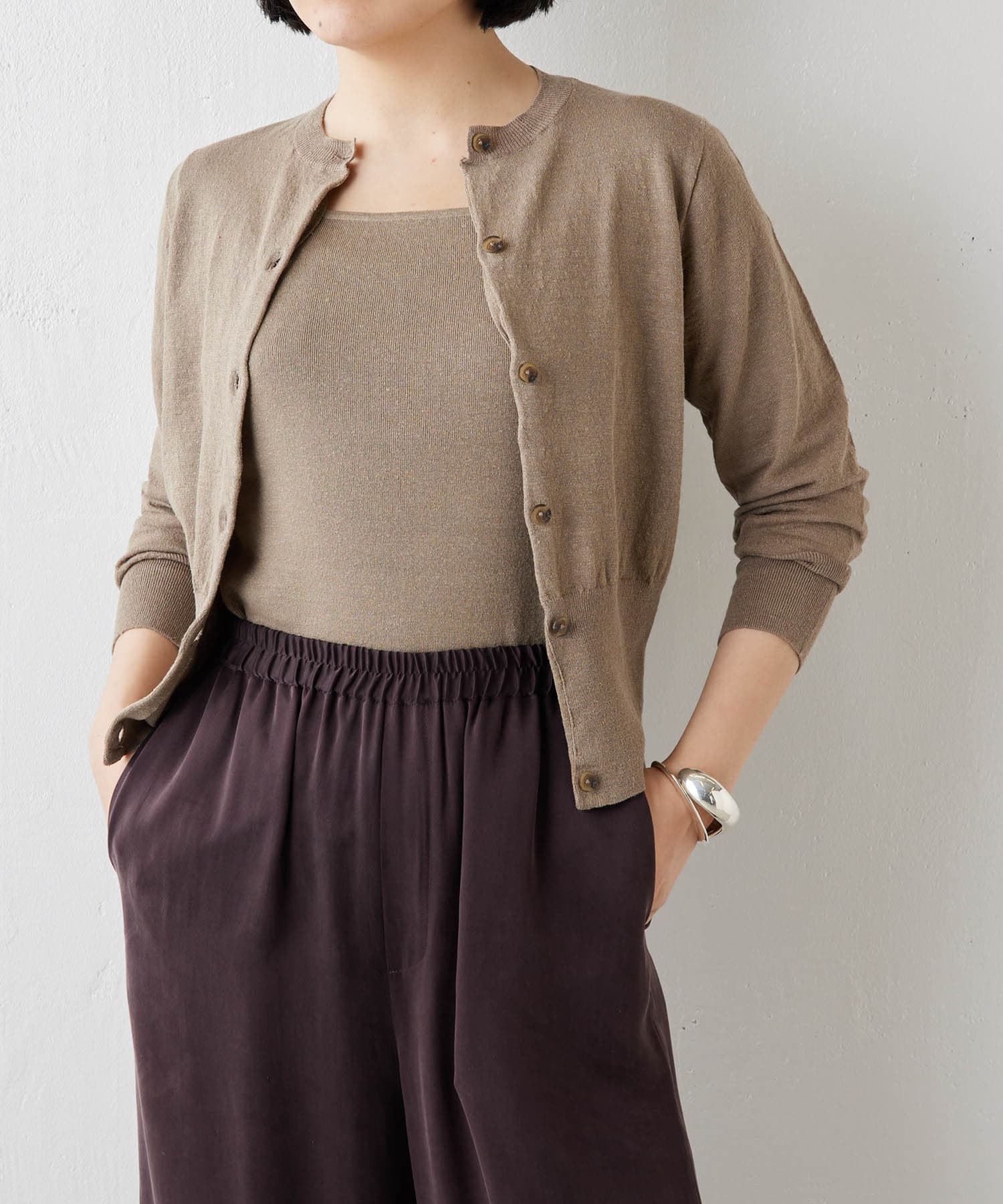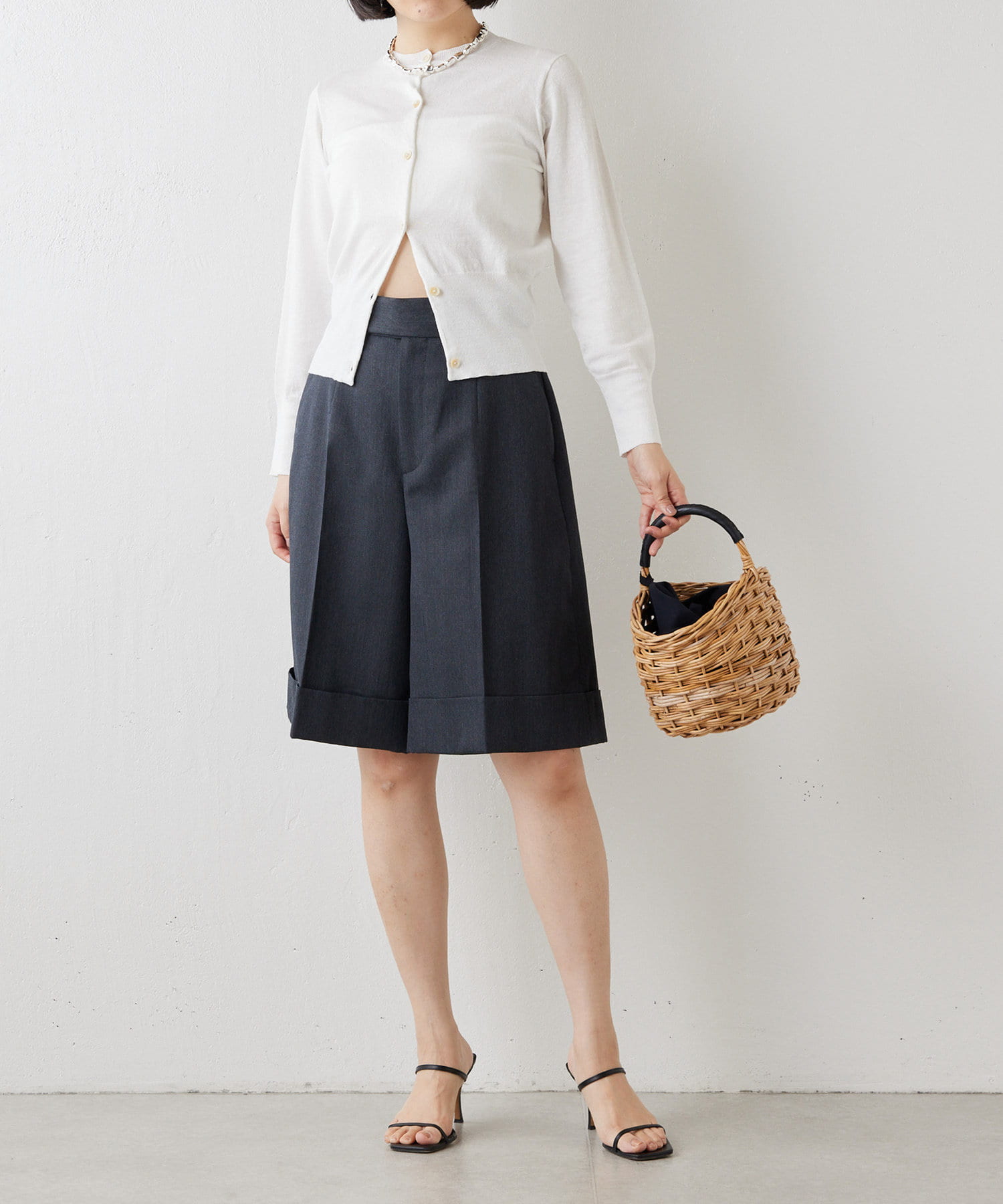 ■クロップド丈でコンパクトなサイズ感に仕立てたニットカーディガン。