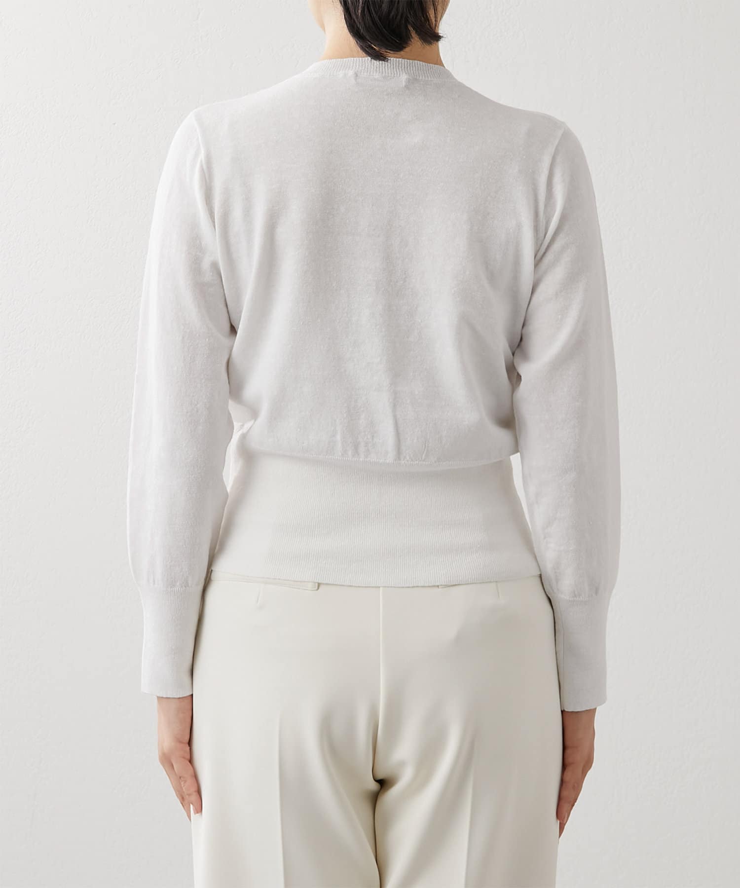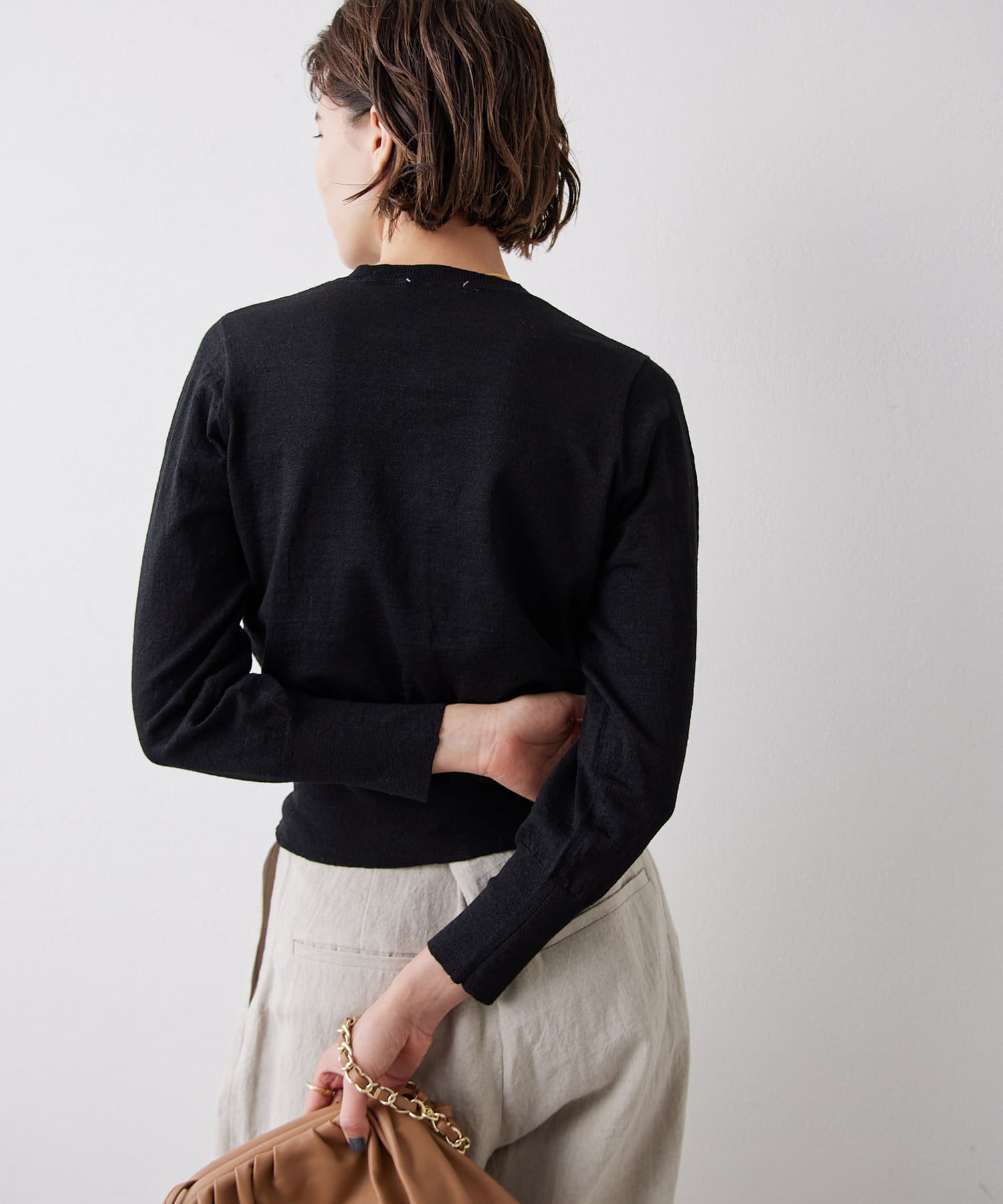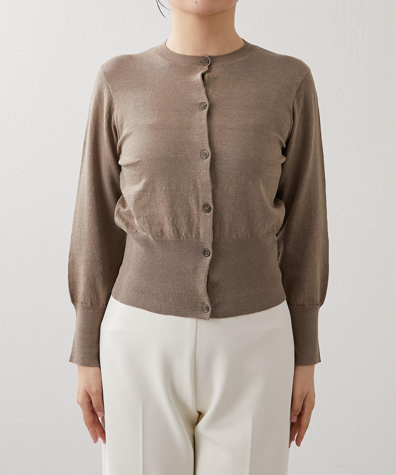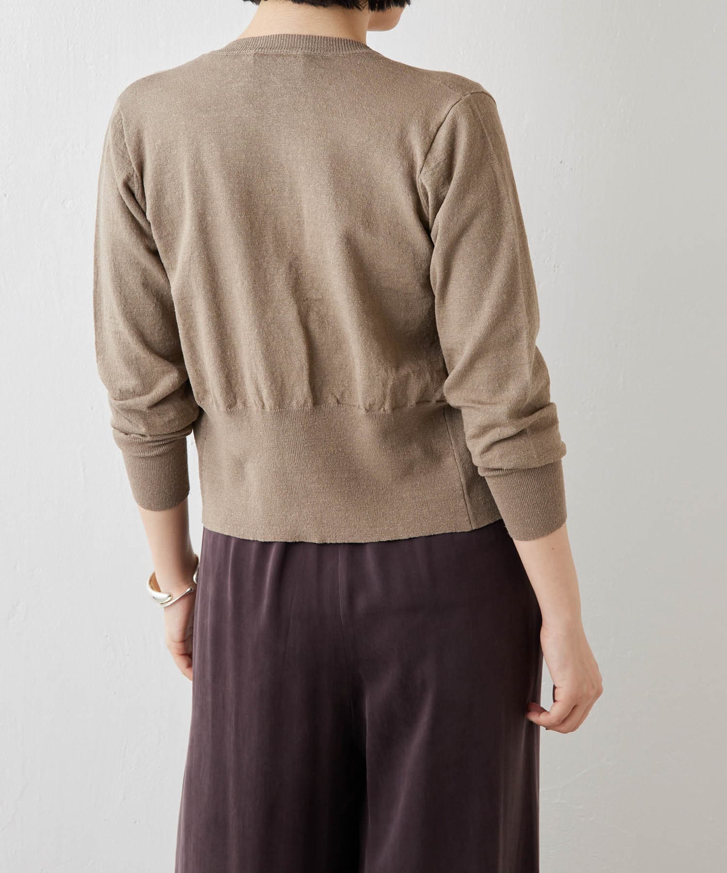 ■クロップド丈でコンパクトなサイズ感に仕立てたニットカーディガン。