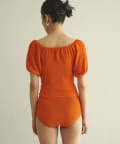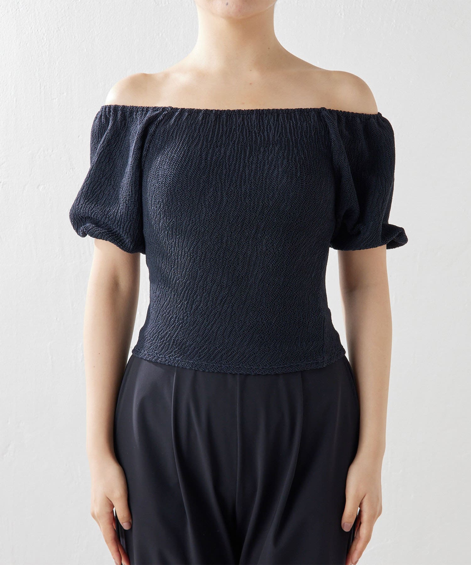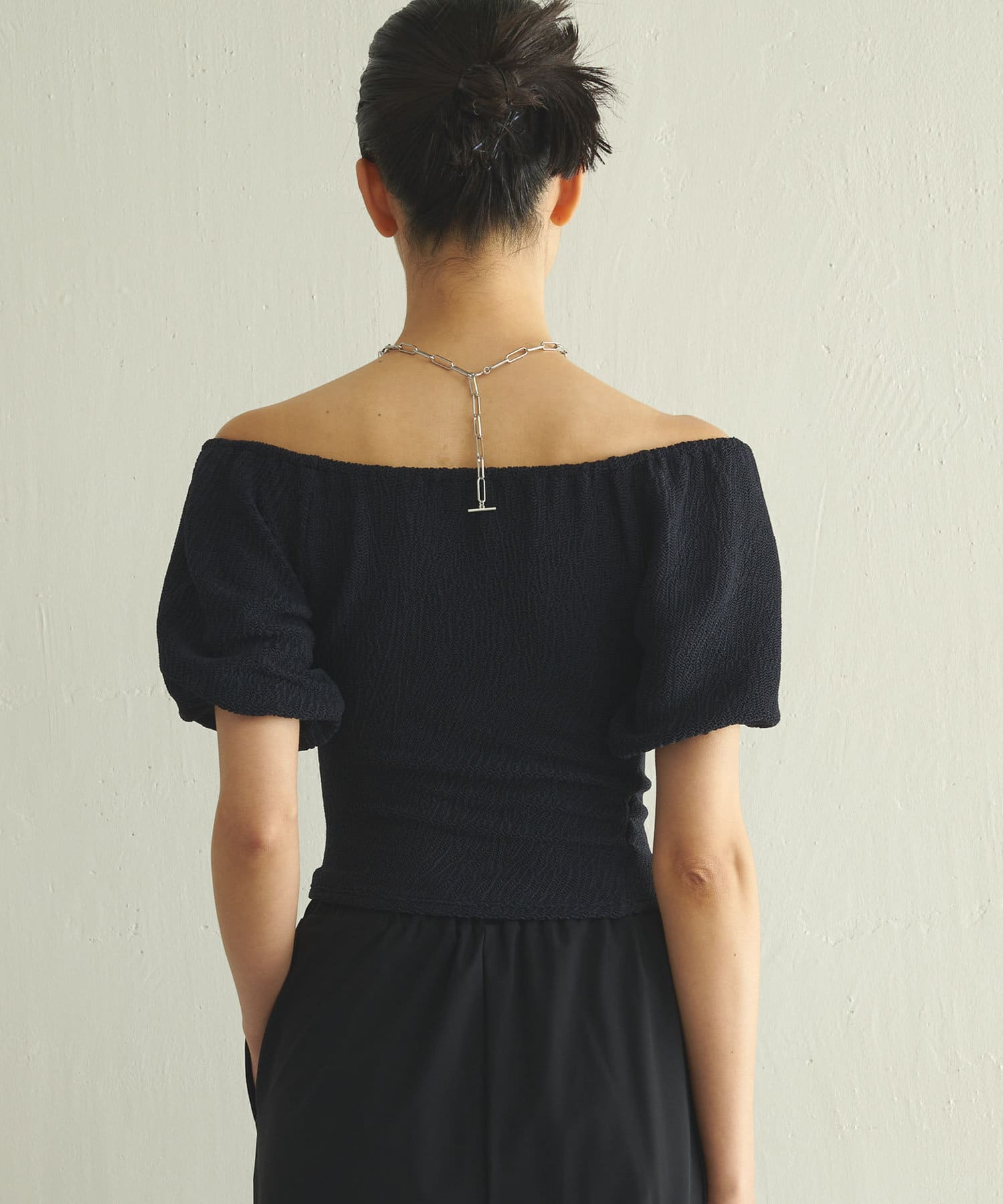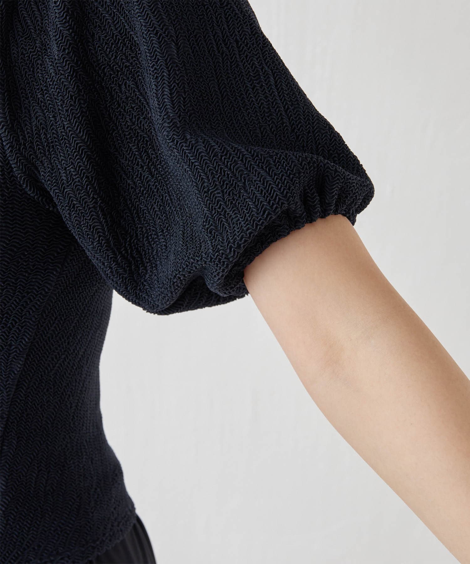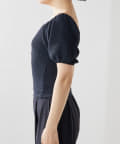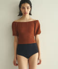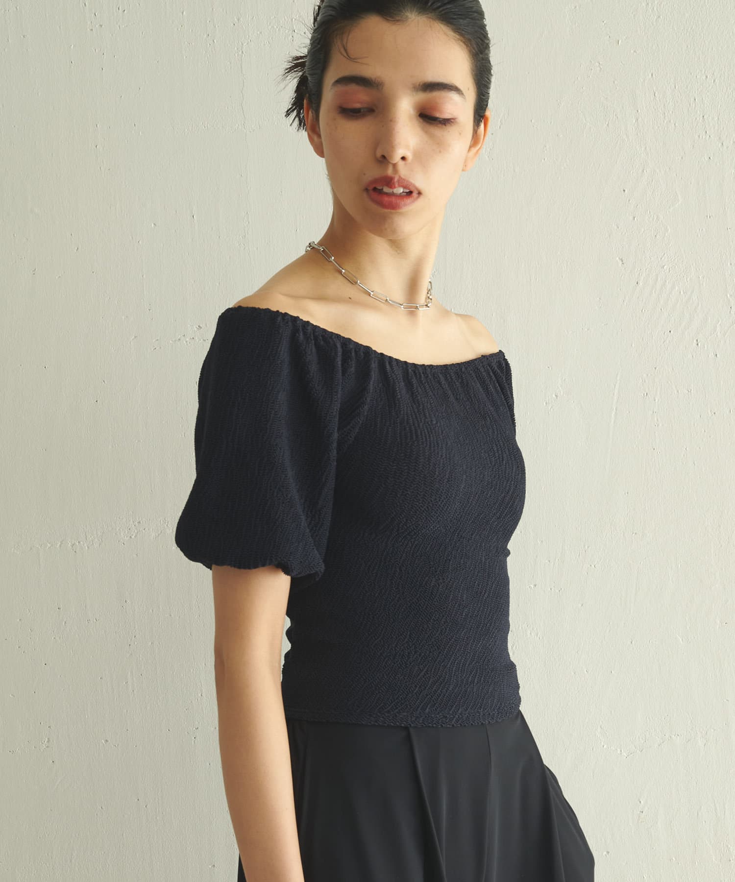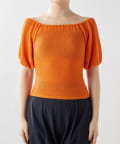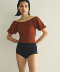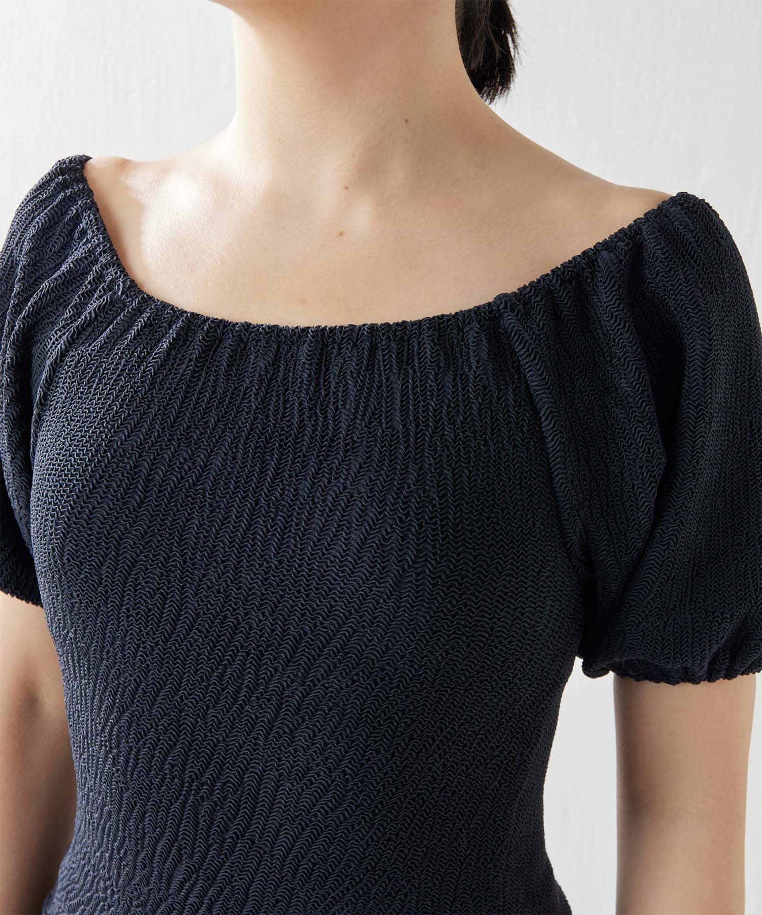 ■気になる二の腕もすっきりとカバーする立体的なパフスリーブは、オフショルダーのように肩を落とすのも◎。