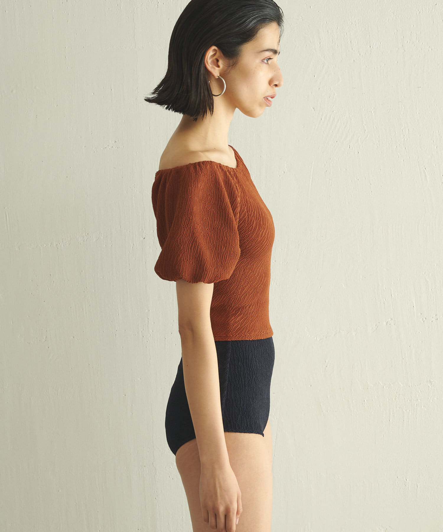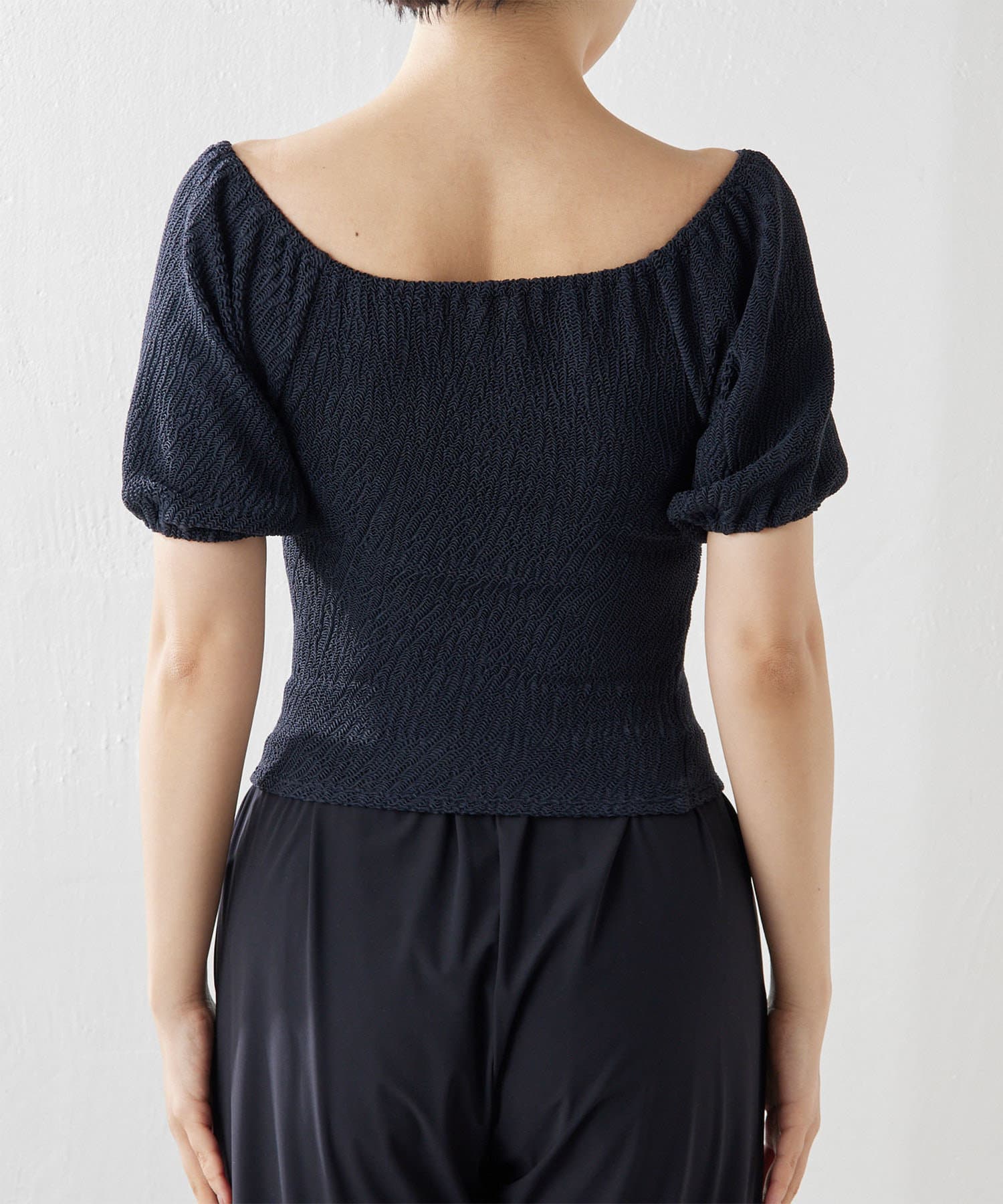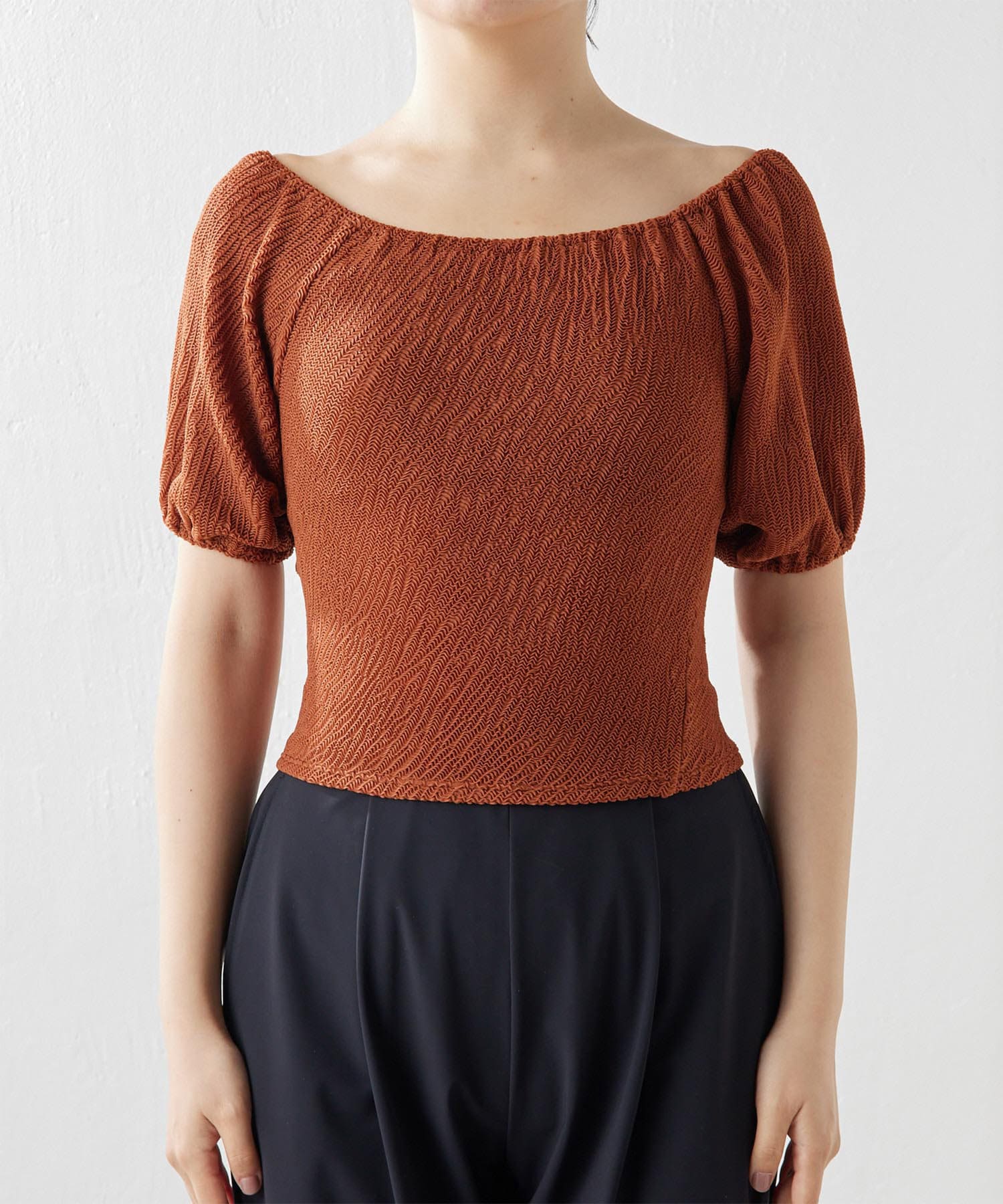 ■生地の表面感が凹凸のあるインポート素材を使用したトップス。