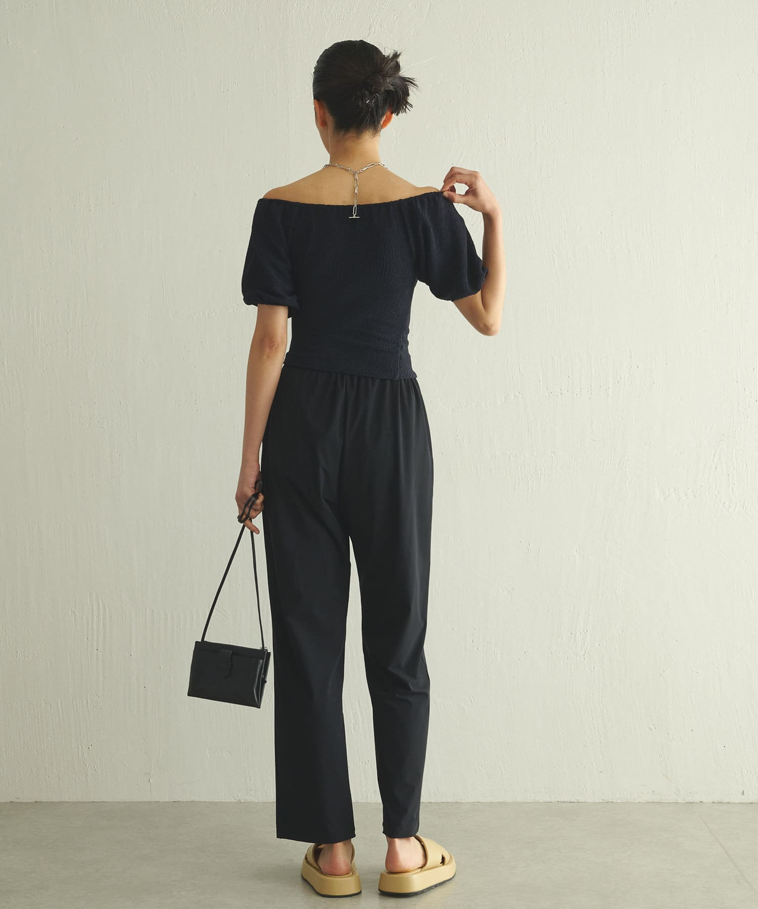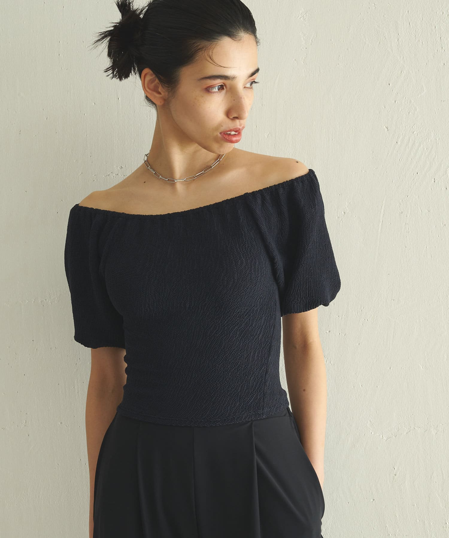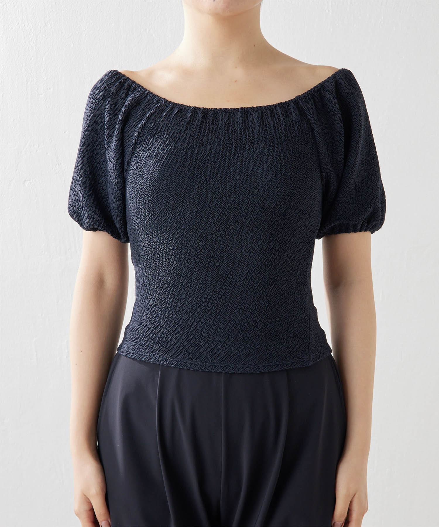 ■生地の表面感が凹凸のあるインポート素材を使用したトップス。