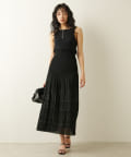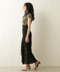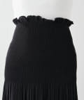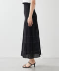 ジャガード素材でこなれ感のあるデザインです。腿あたりまではニット素材で伸縮性がありますが、少しタイトなサイズ感です。裾はランダムプリーツで、広がりすぎることなくすっきりお召しいただけます。