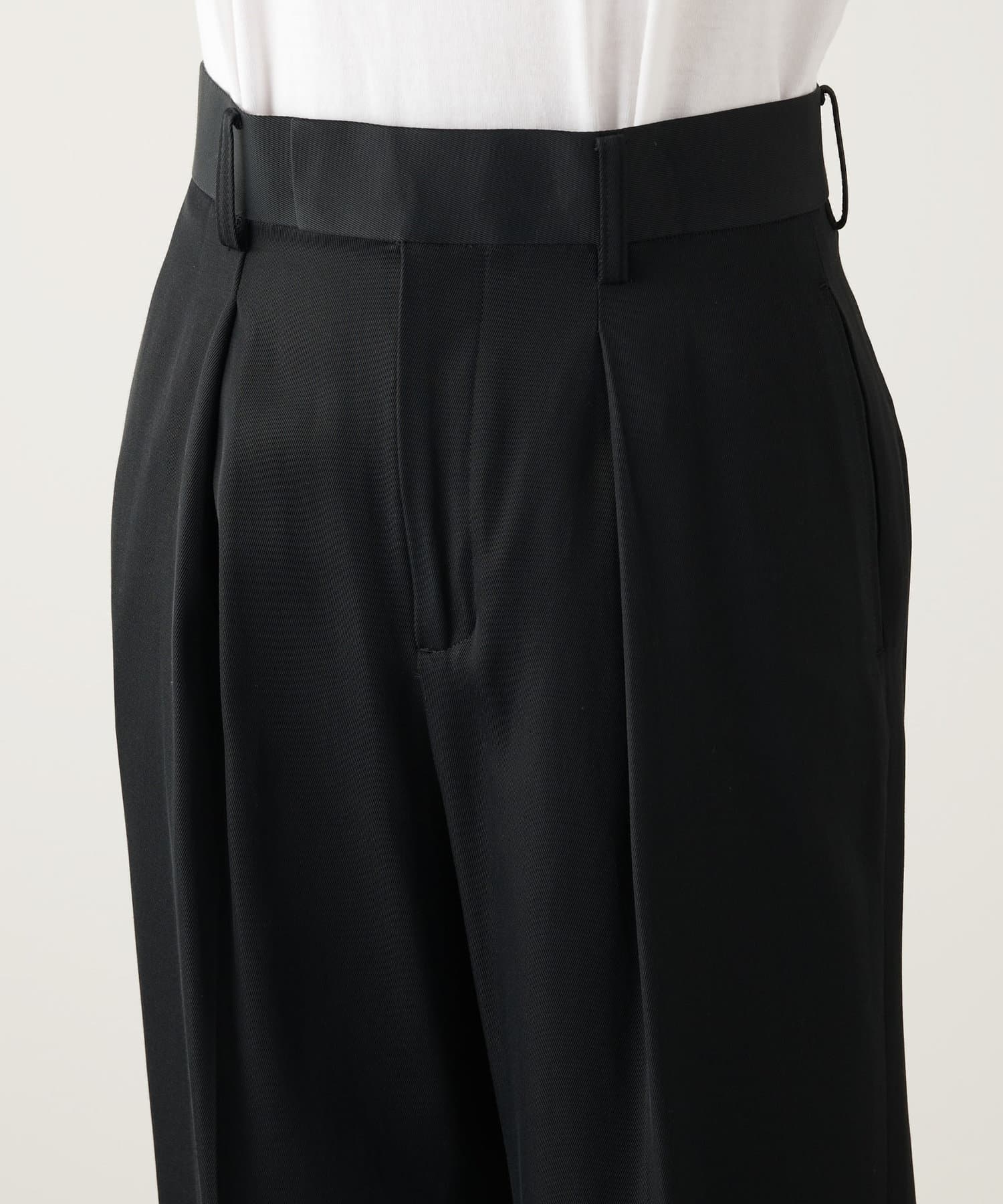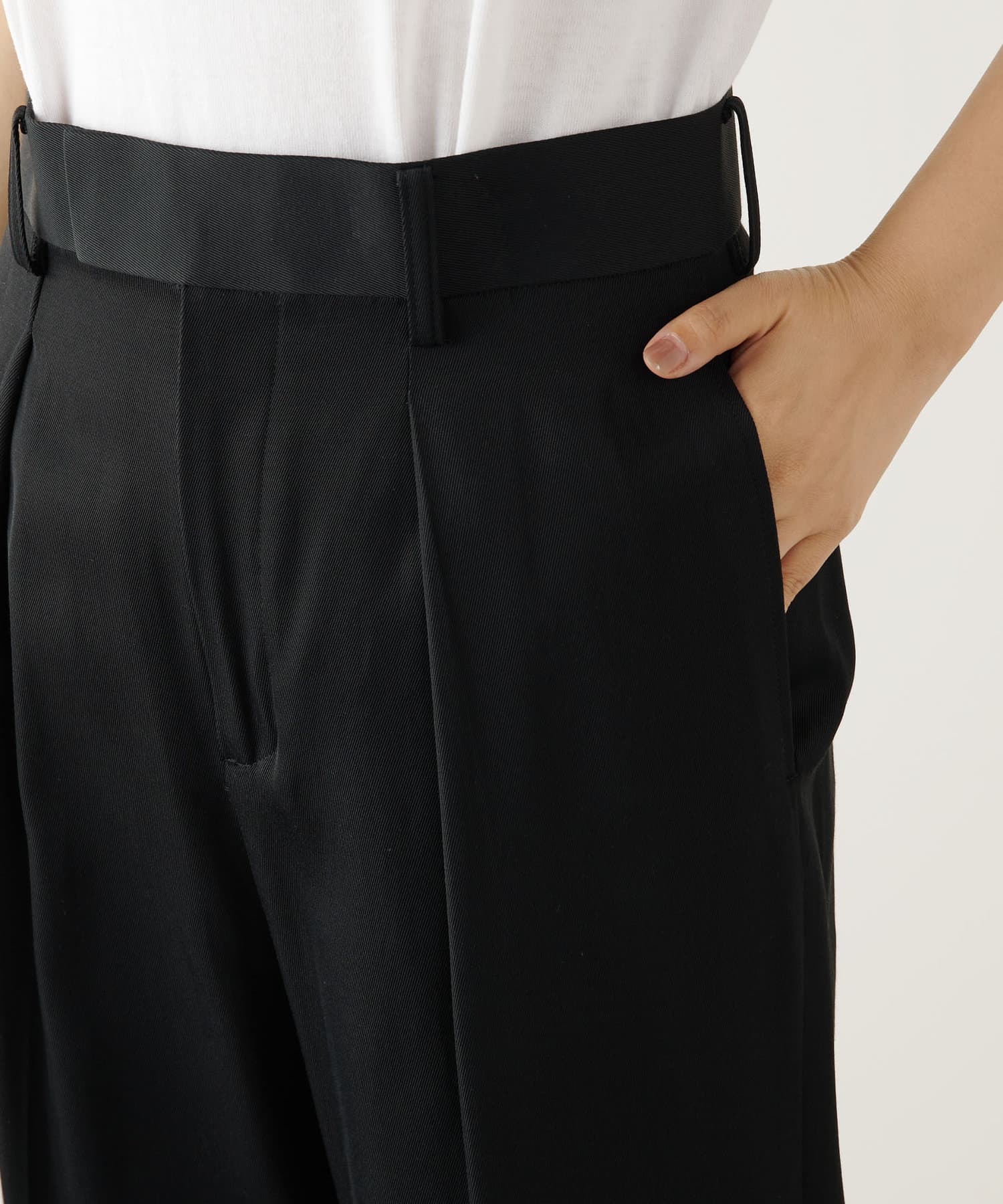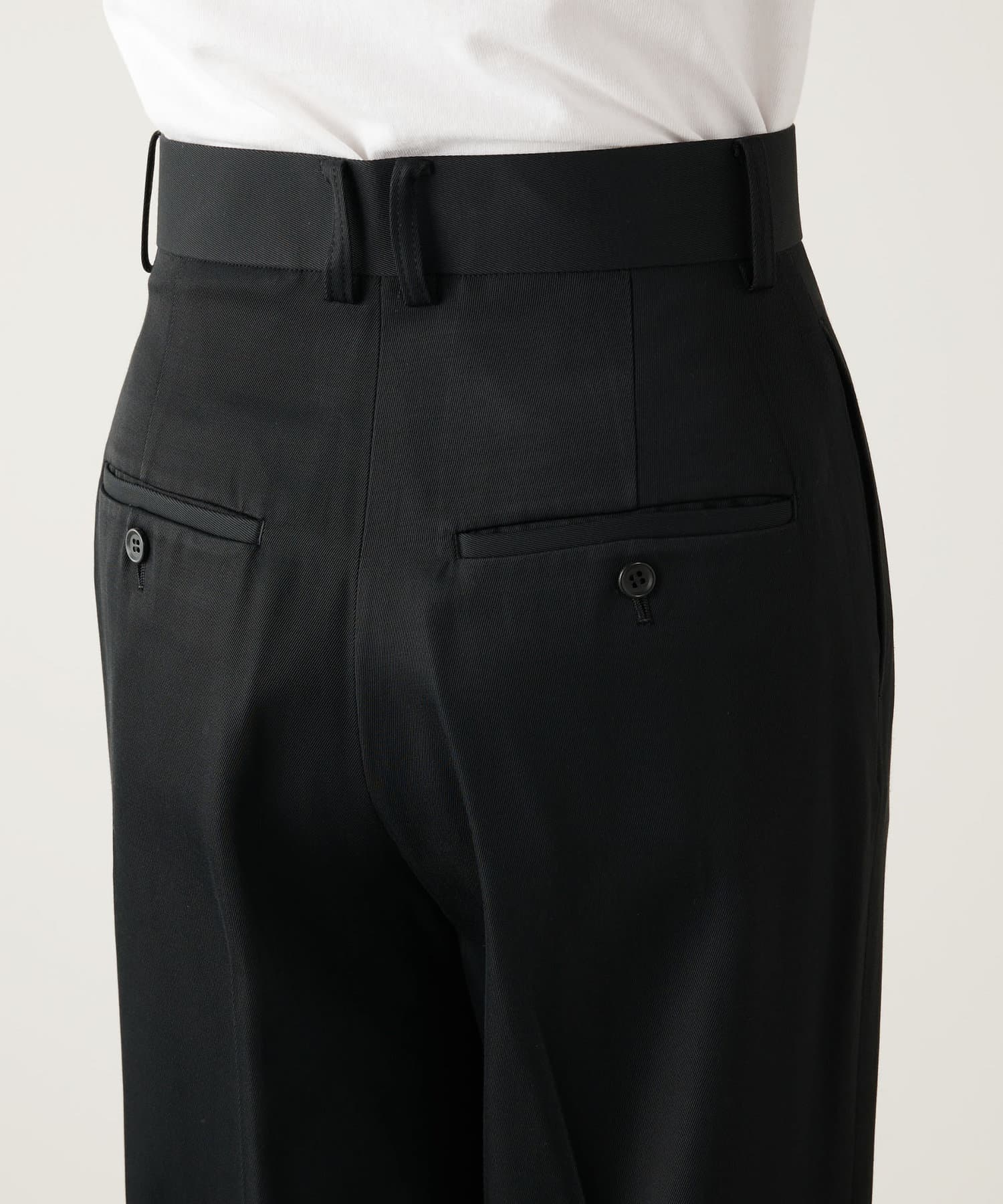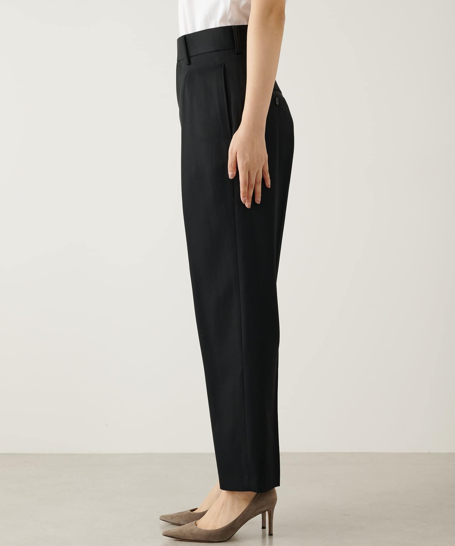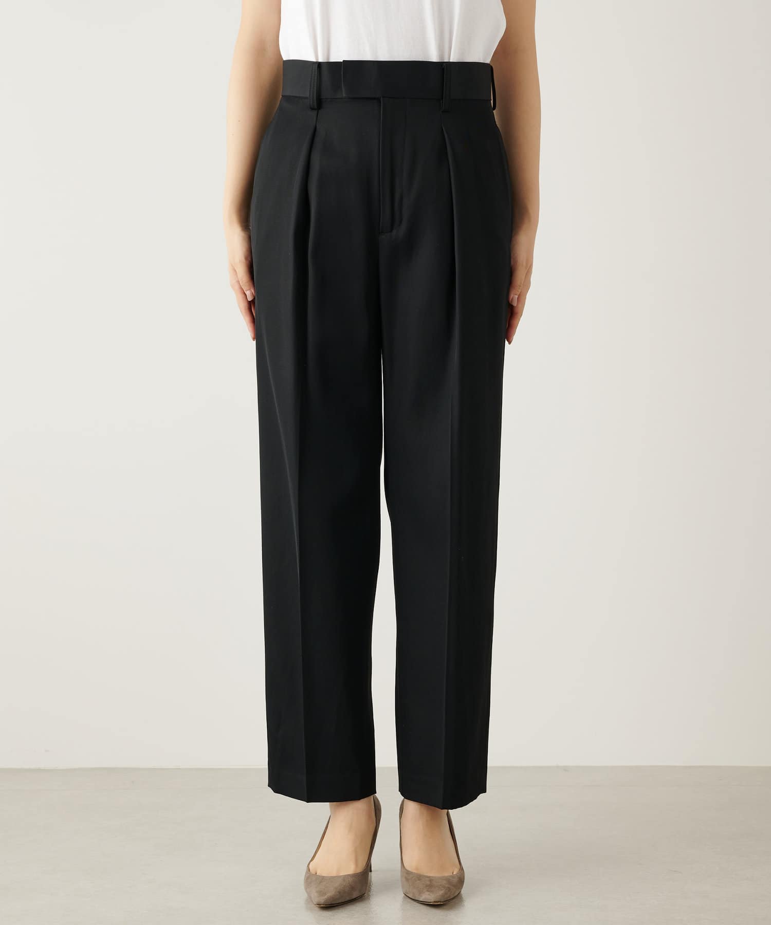 大人のスタイリングに馴染む、きれいめチノ素材のタックパンツ