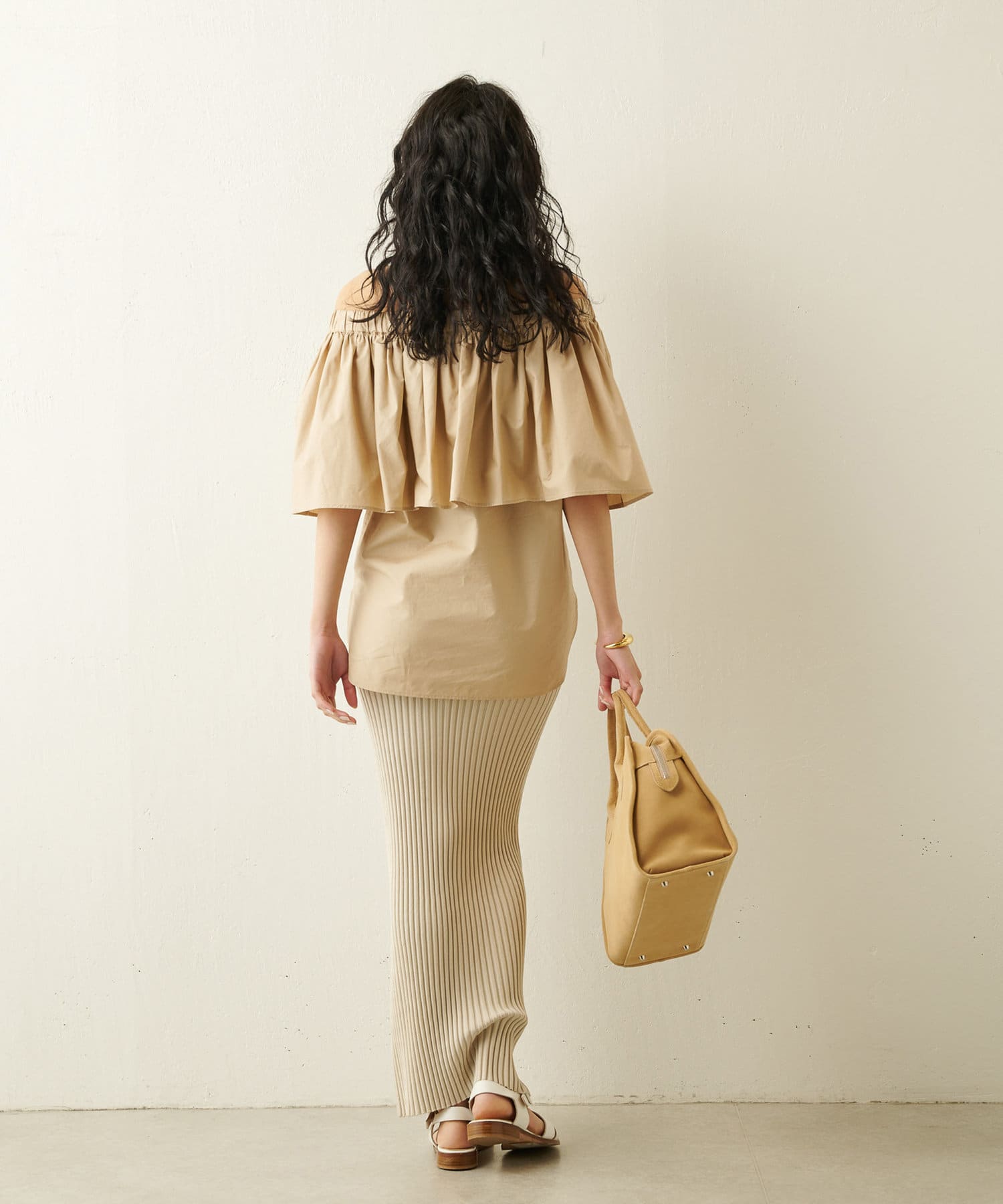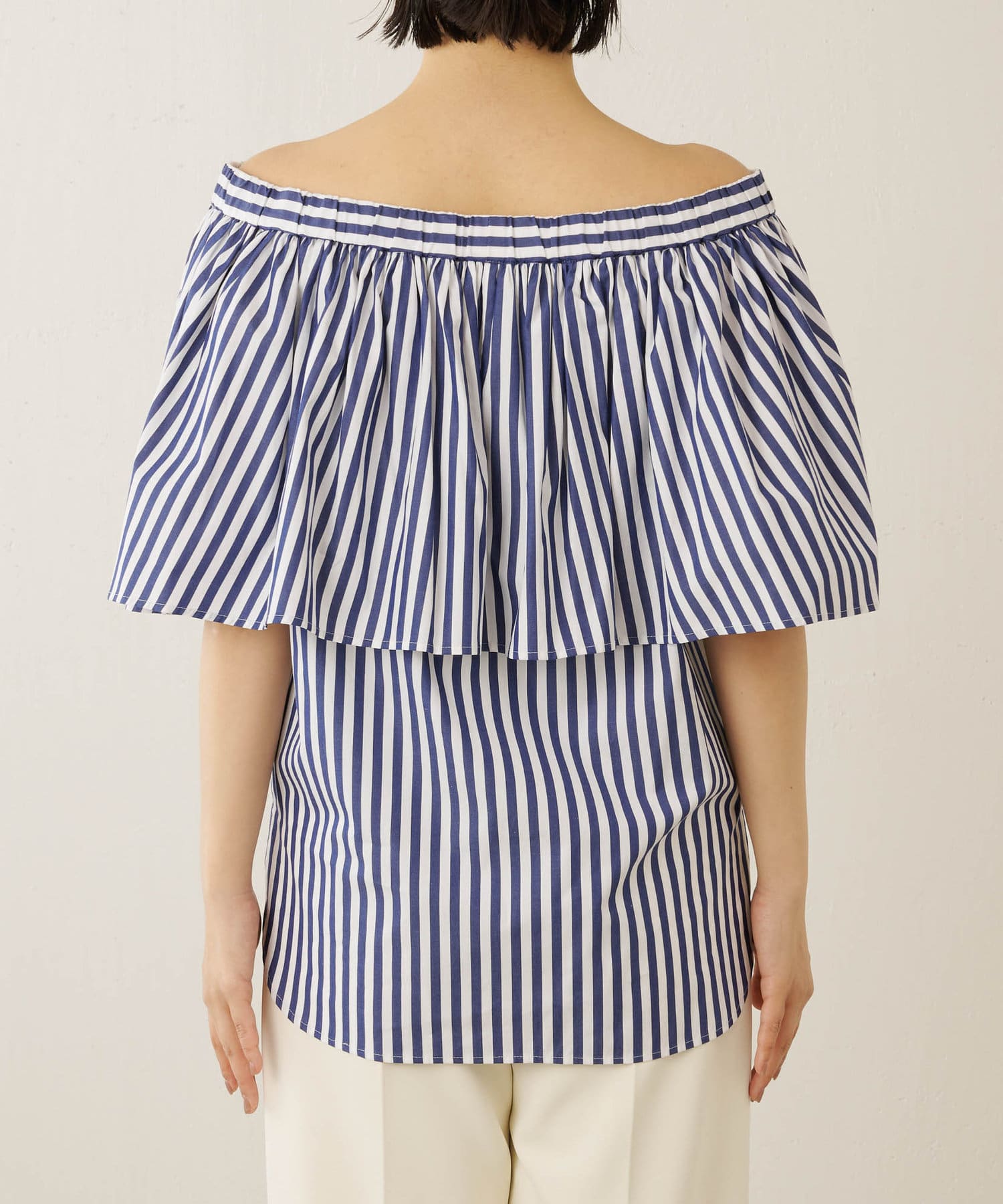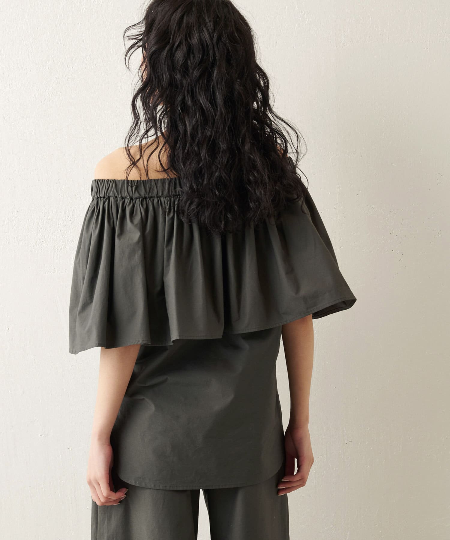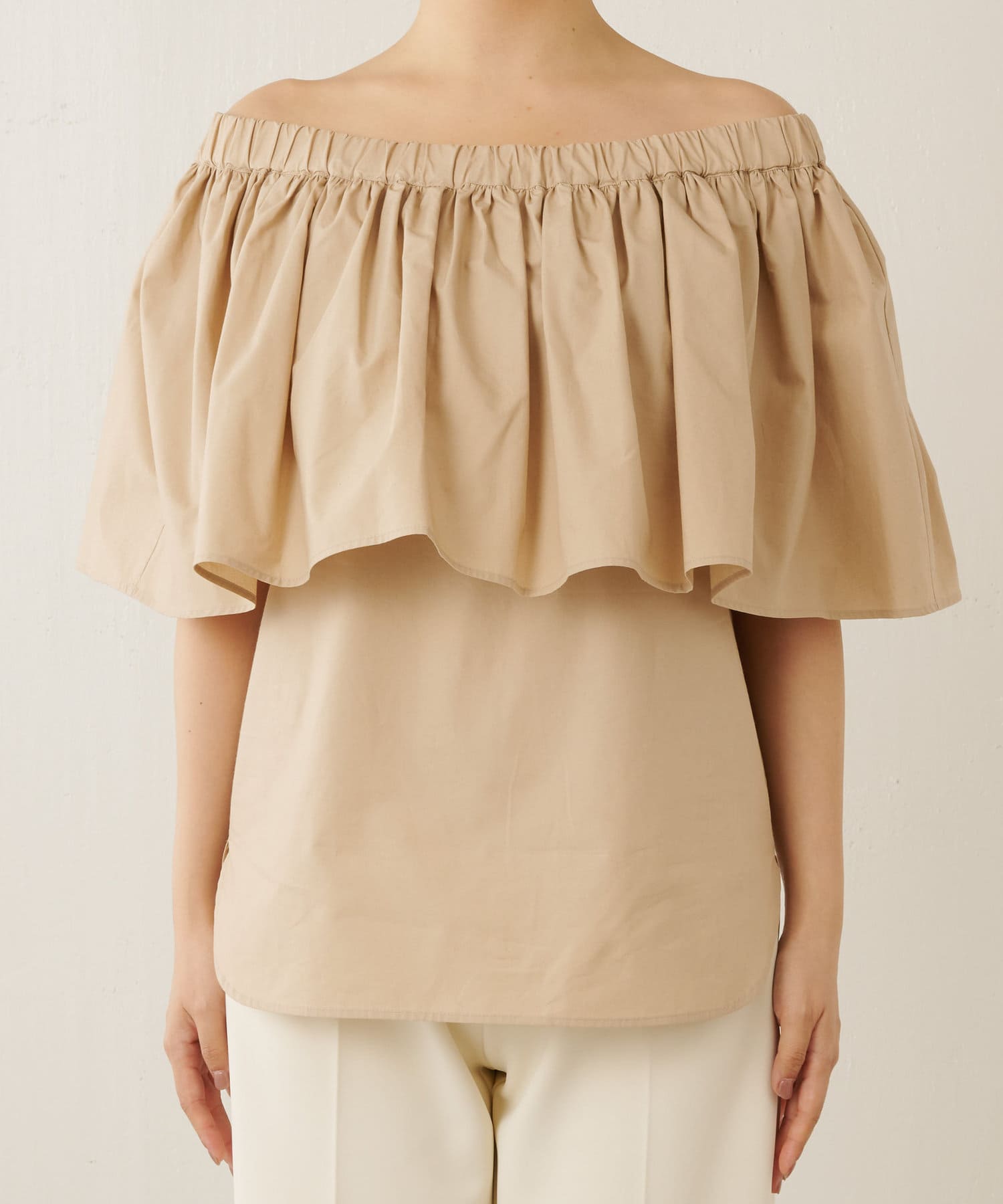 ■着こなしの幅を楽しめるオフショルダーデザインのブラウス。