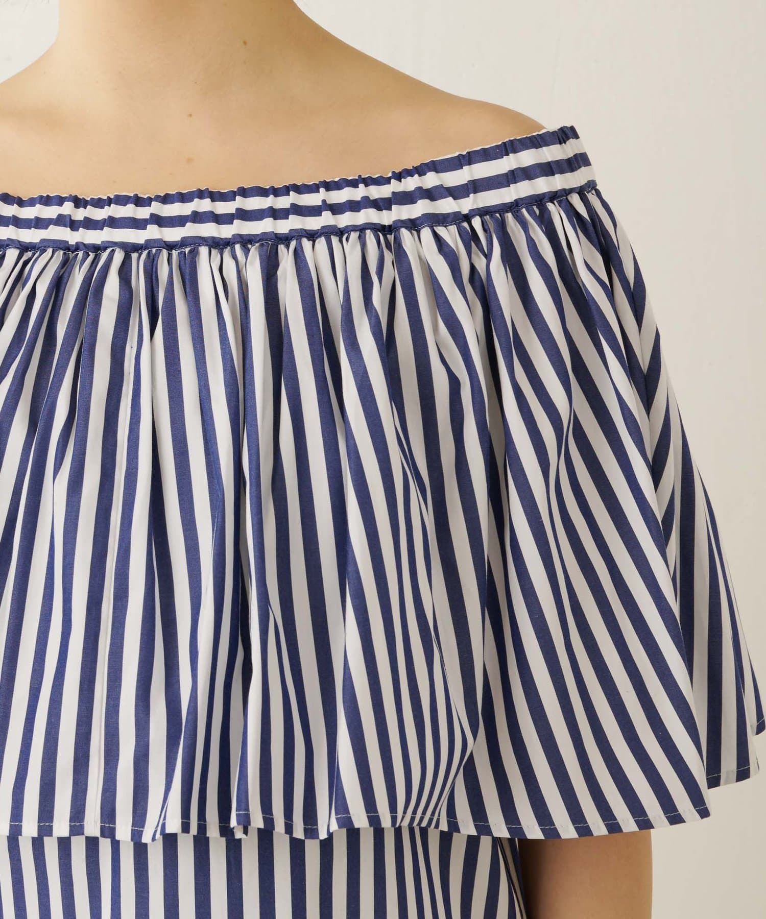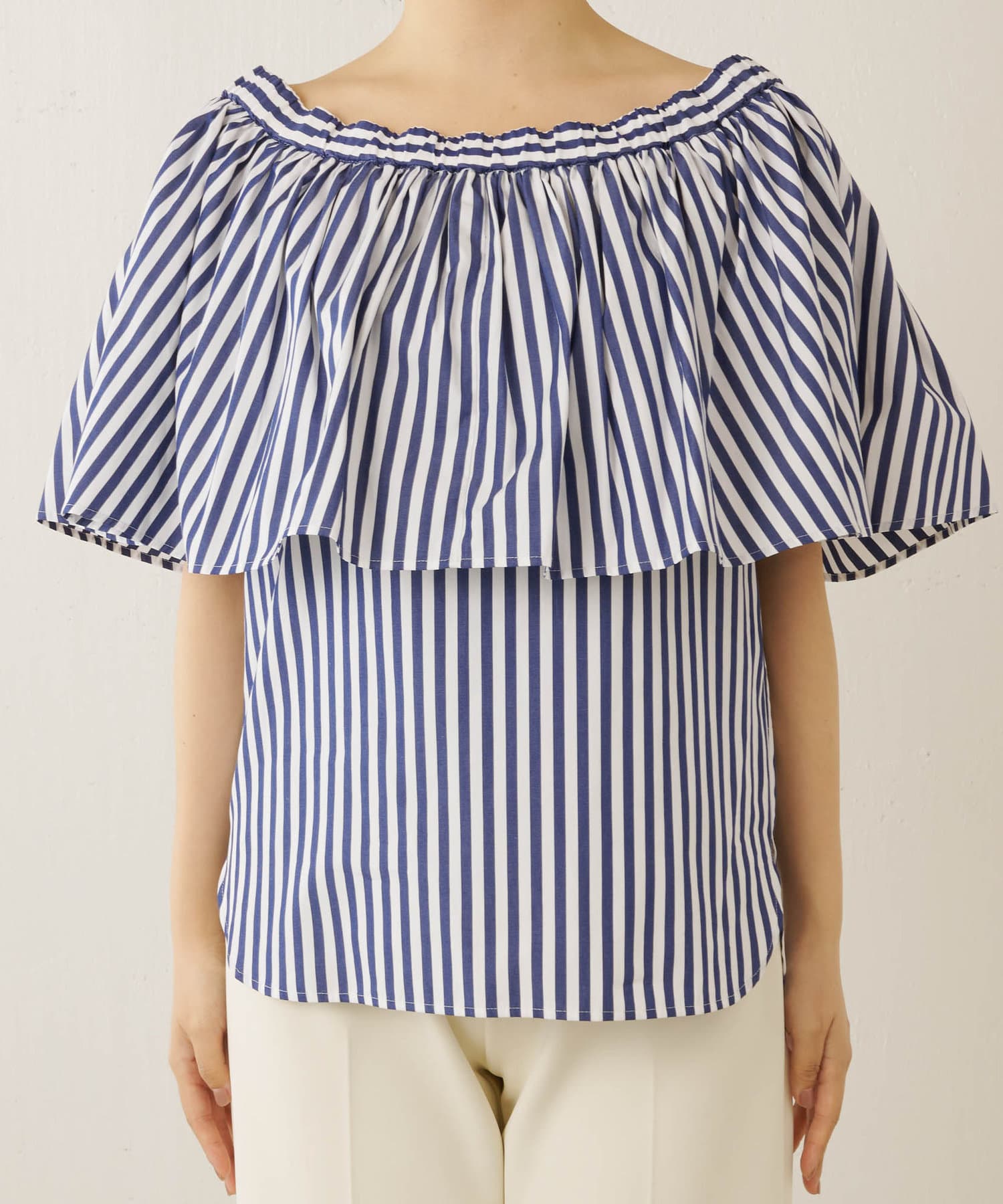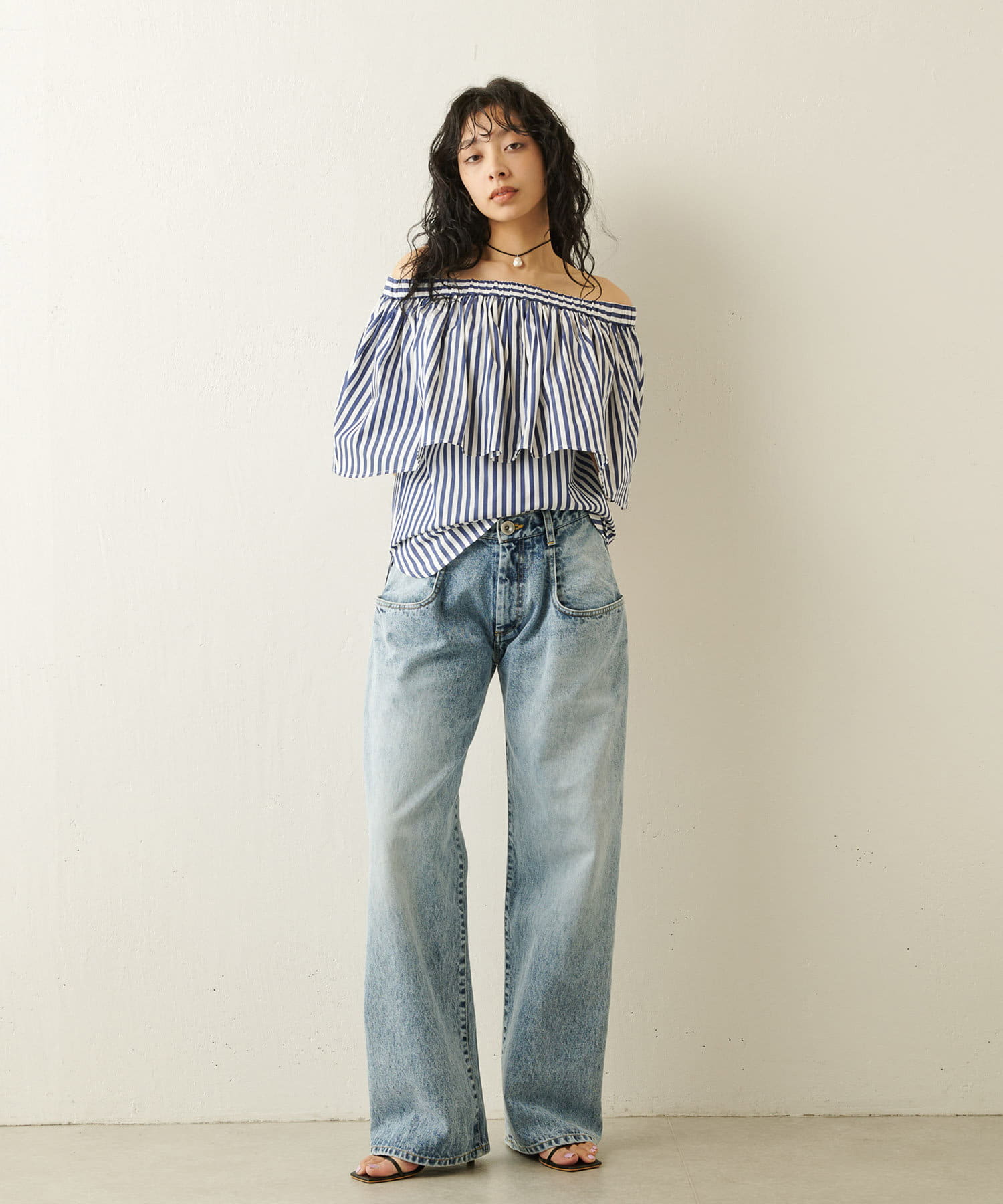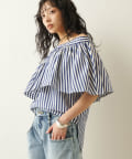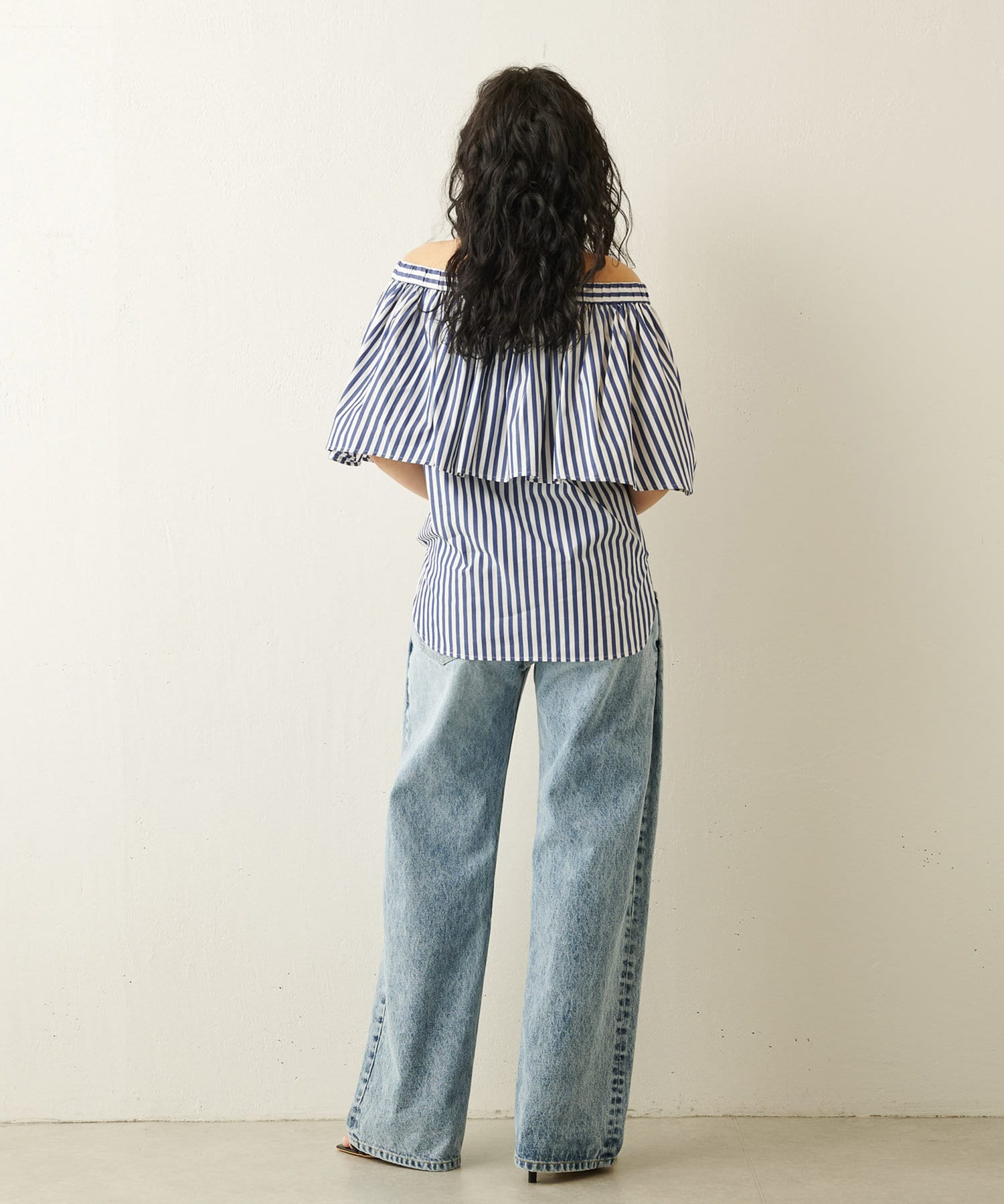 ■着こなしの幅を楽しめるオフショルダーデザインのブラウス。