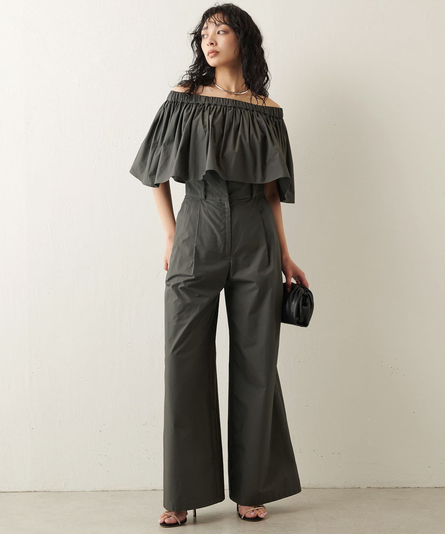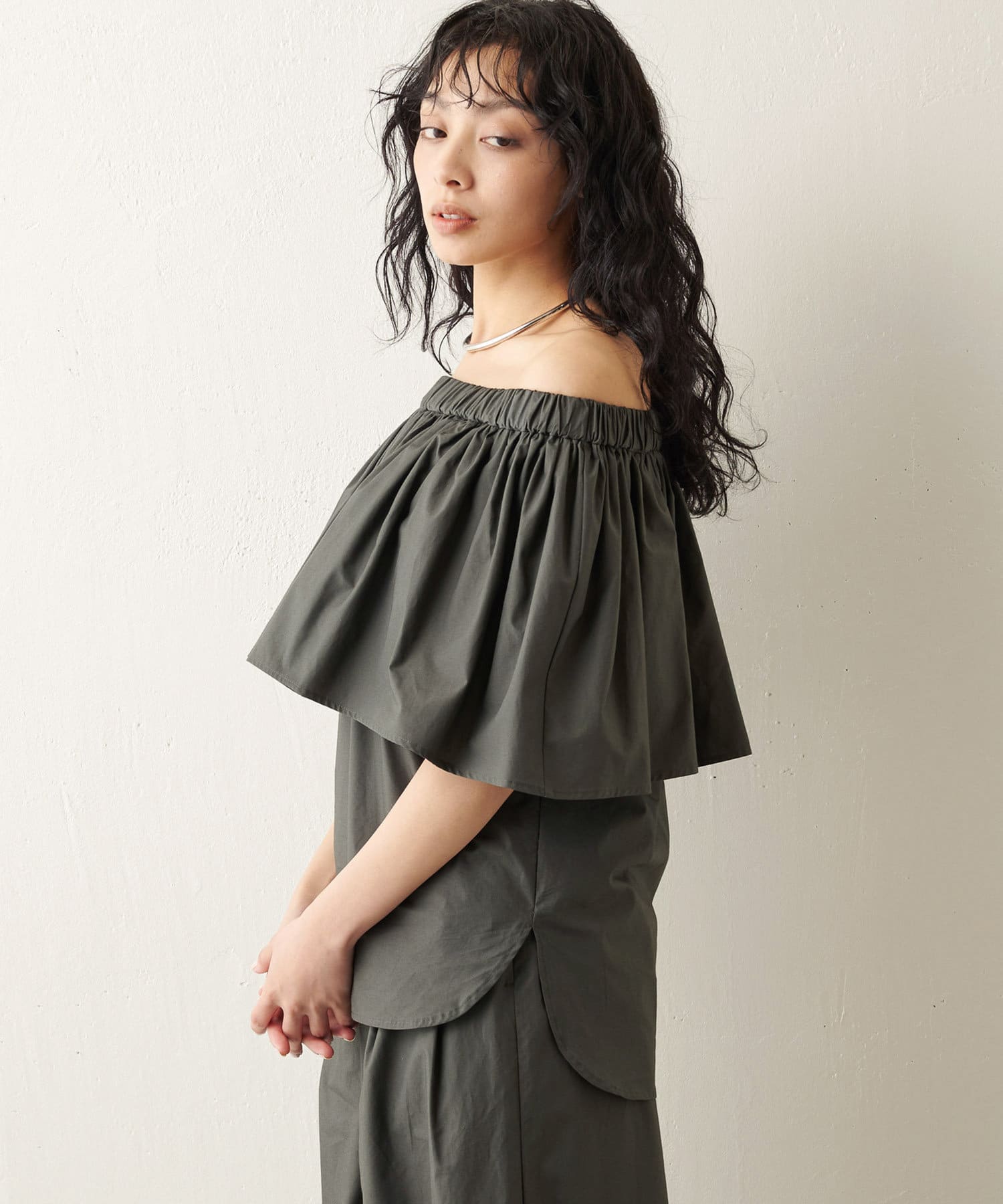 ■デザインポイントの大きめのフリルギャザーは、肩回りを華奢に魅せてくれる効果も。