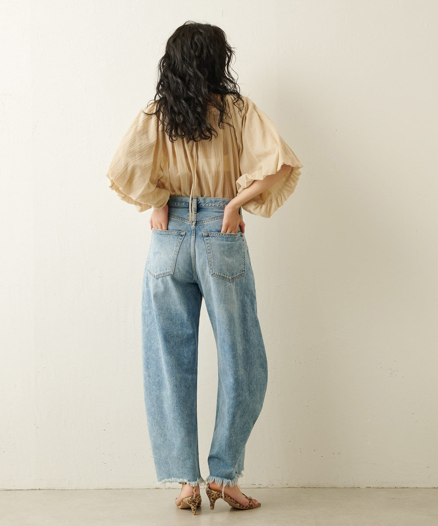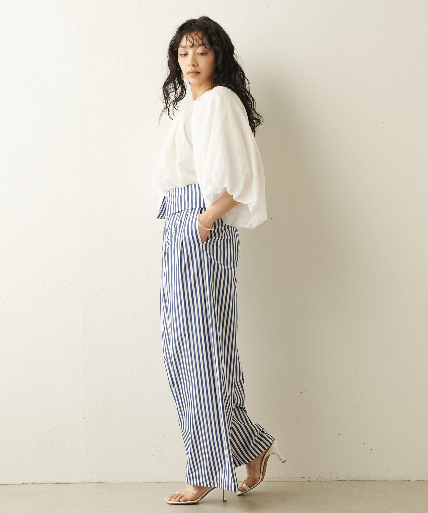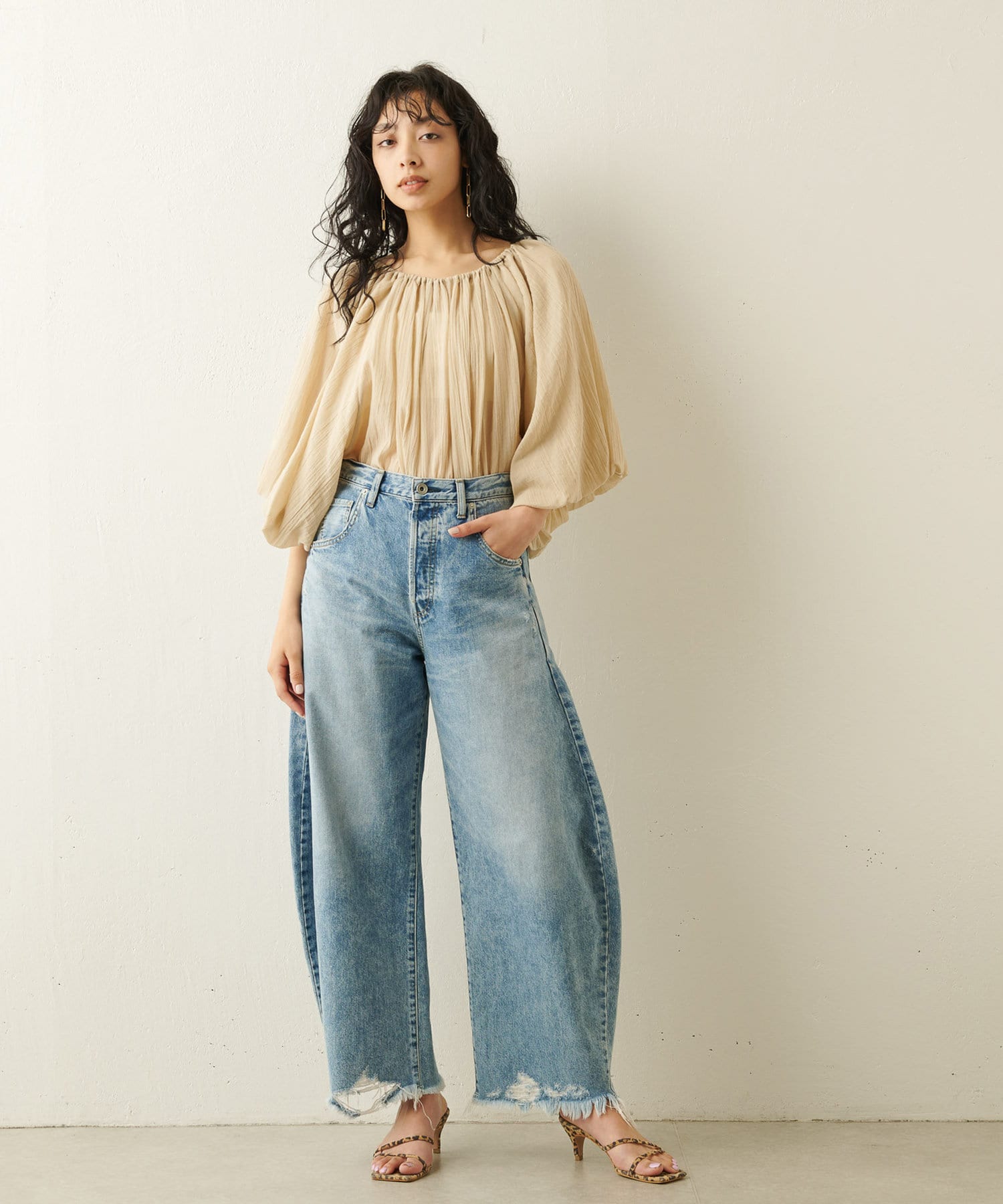 ナチュラルで女性らしい、ふんわりシルエットのバルーン袖ブラウス
