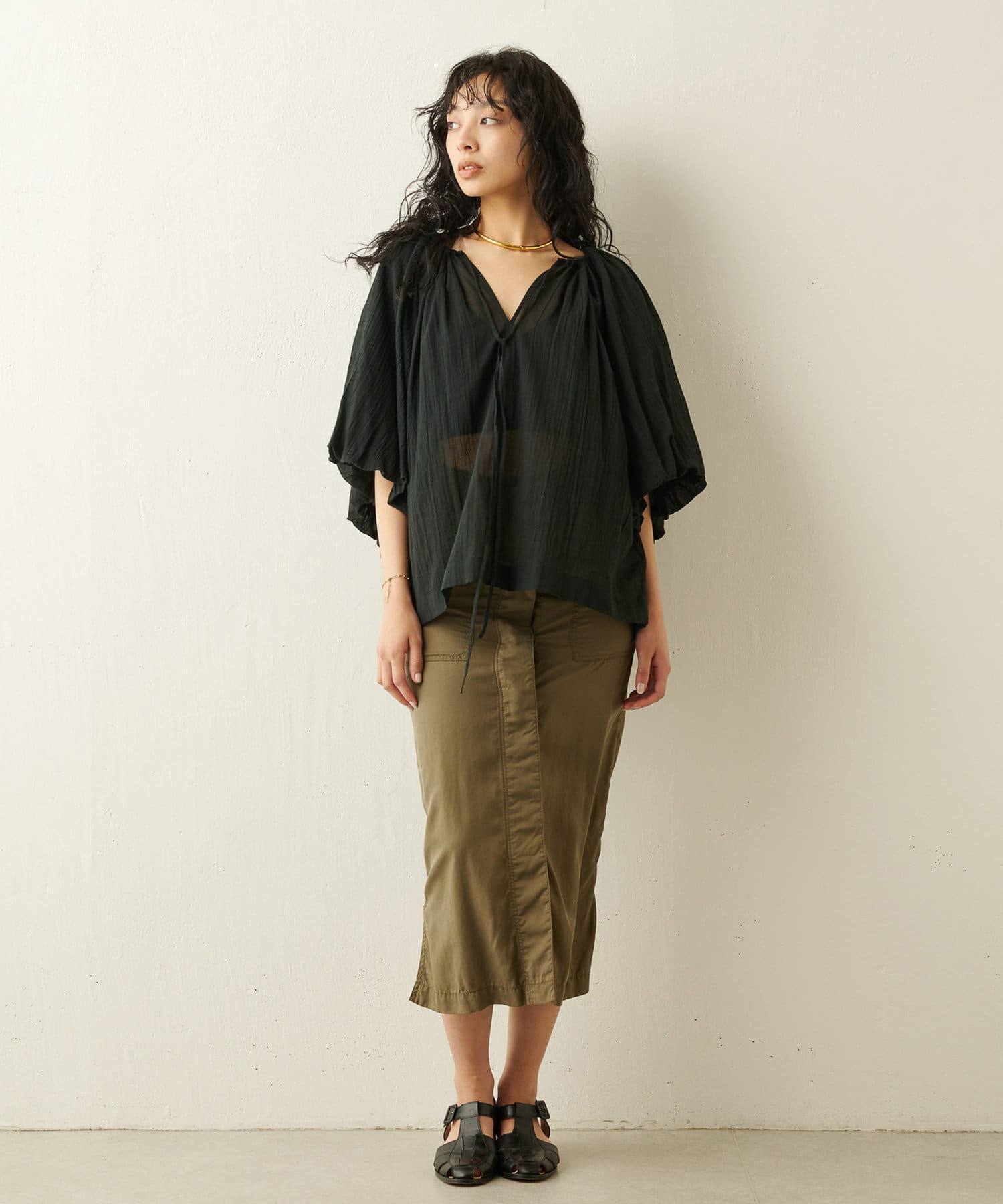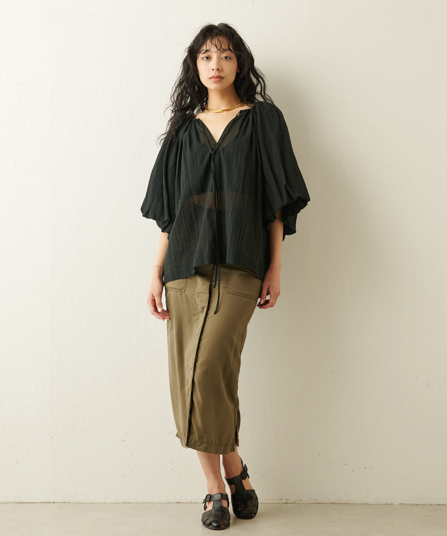 ■しぼしぼとした表面感が特徴的なボイル素材を使用したブラウス。