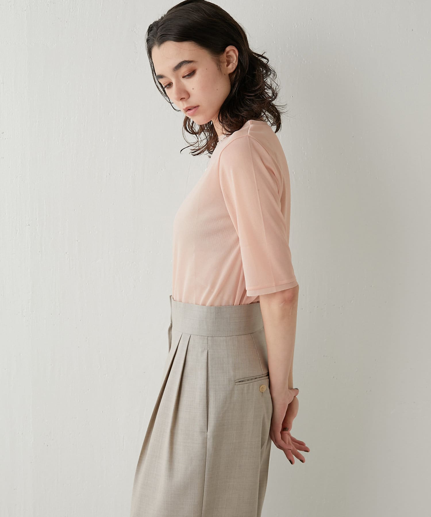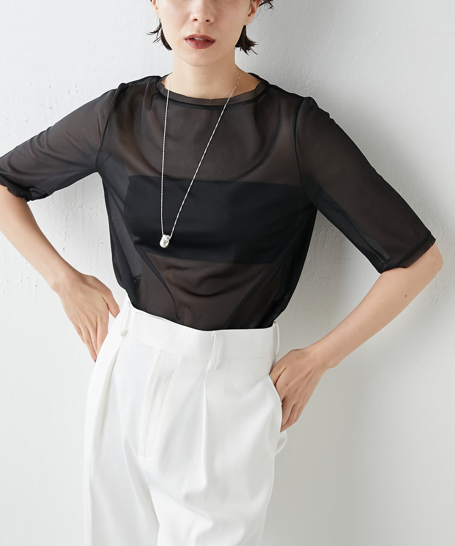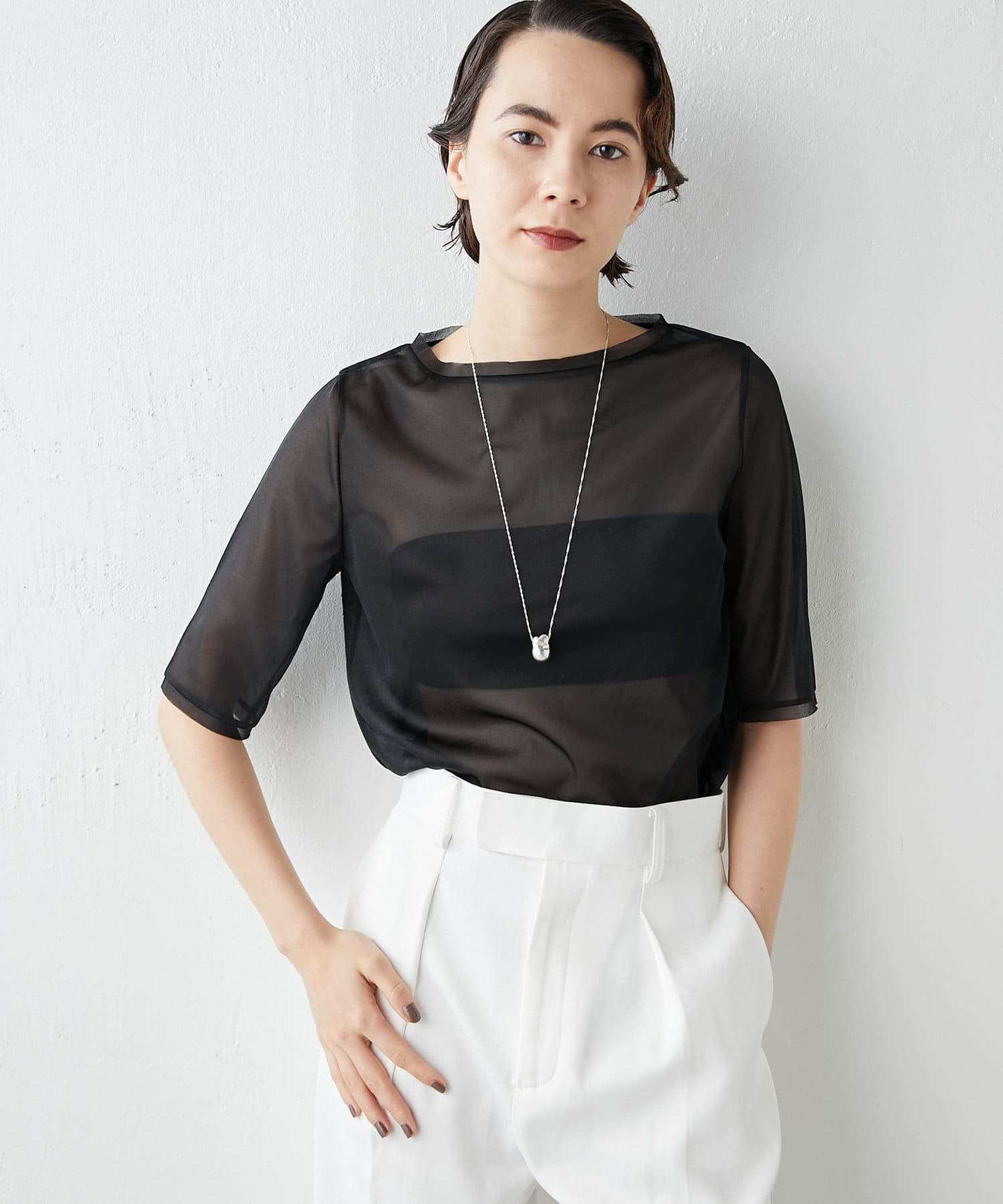 ■透け感のあるさらりとした素材が大人っぽくヘルシーに着こなせる一枚。