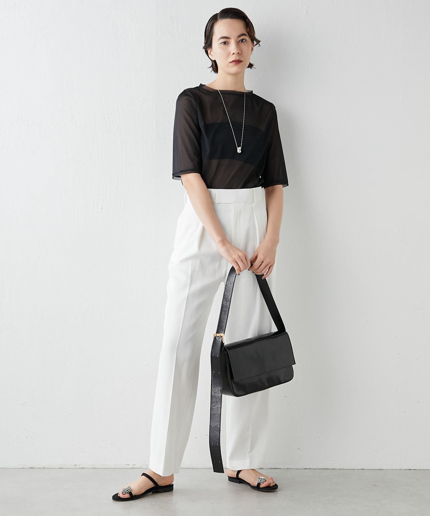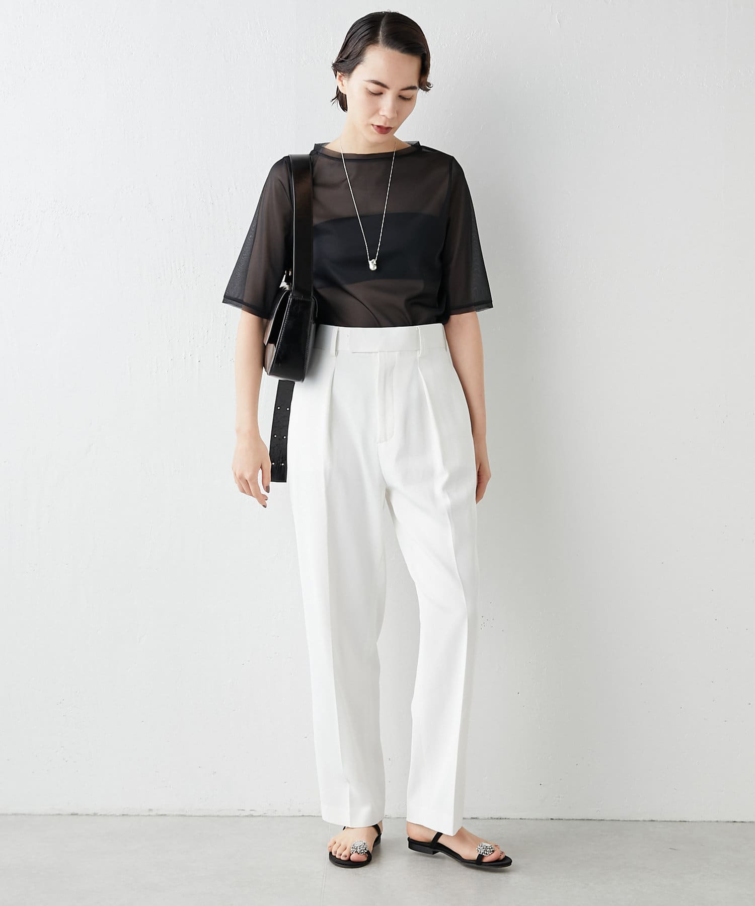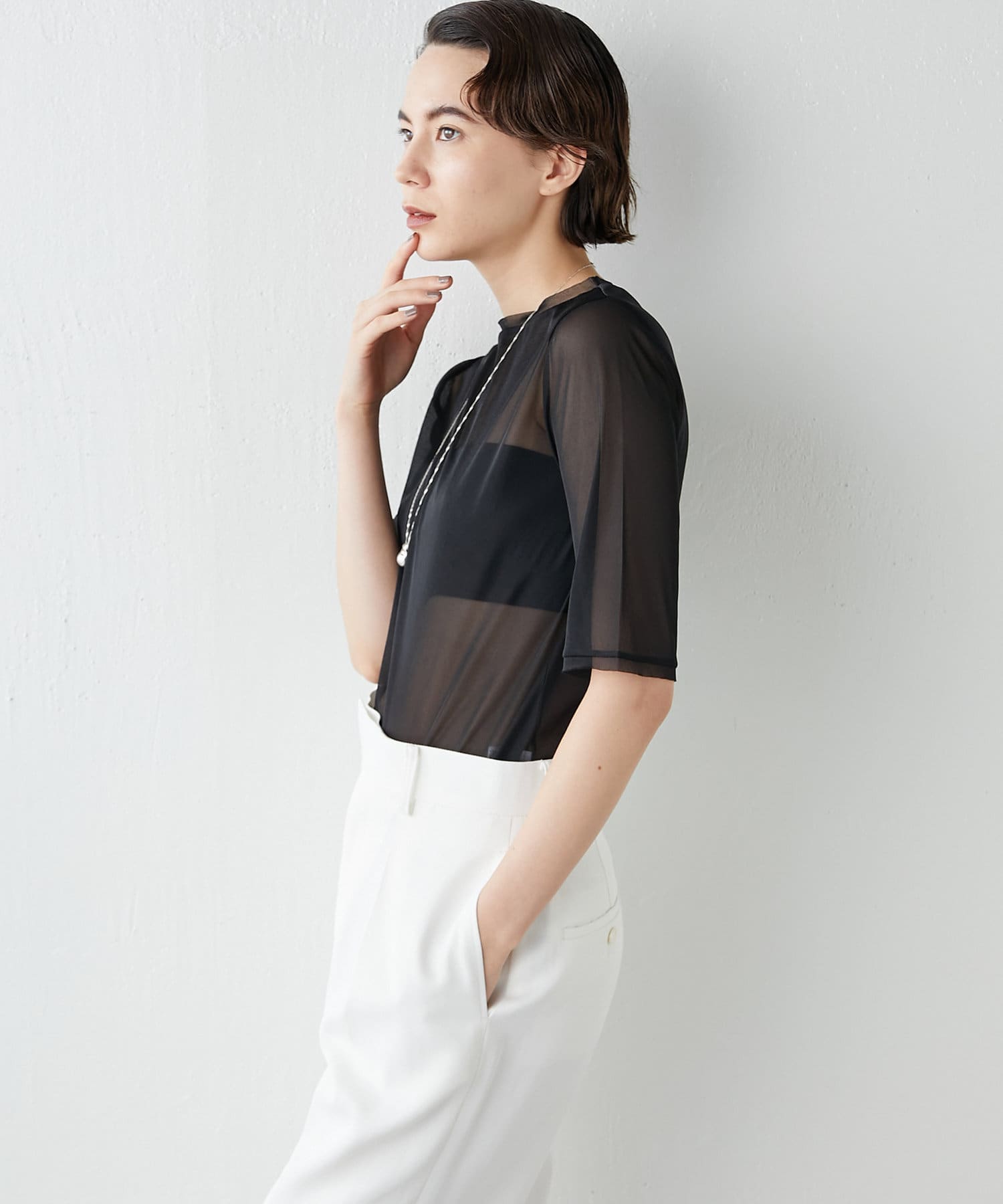 ■透け感のあるさらりとした素材が大人っぽくヘルシーに着こなせる一枚。