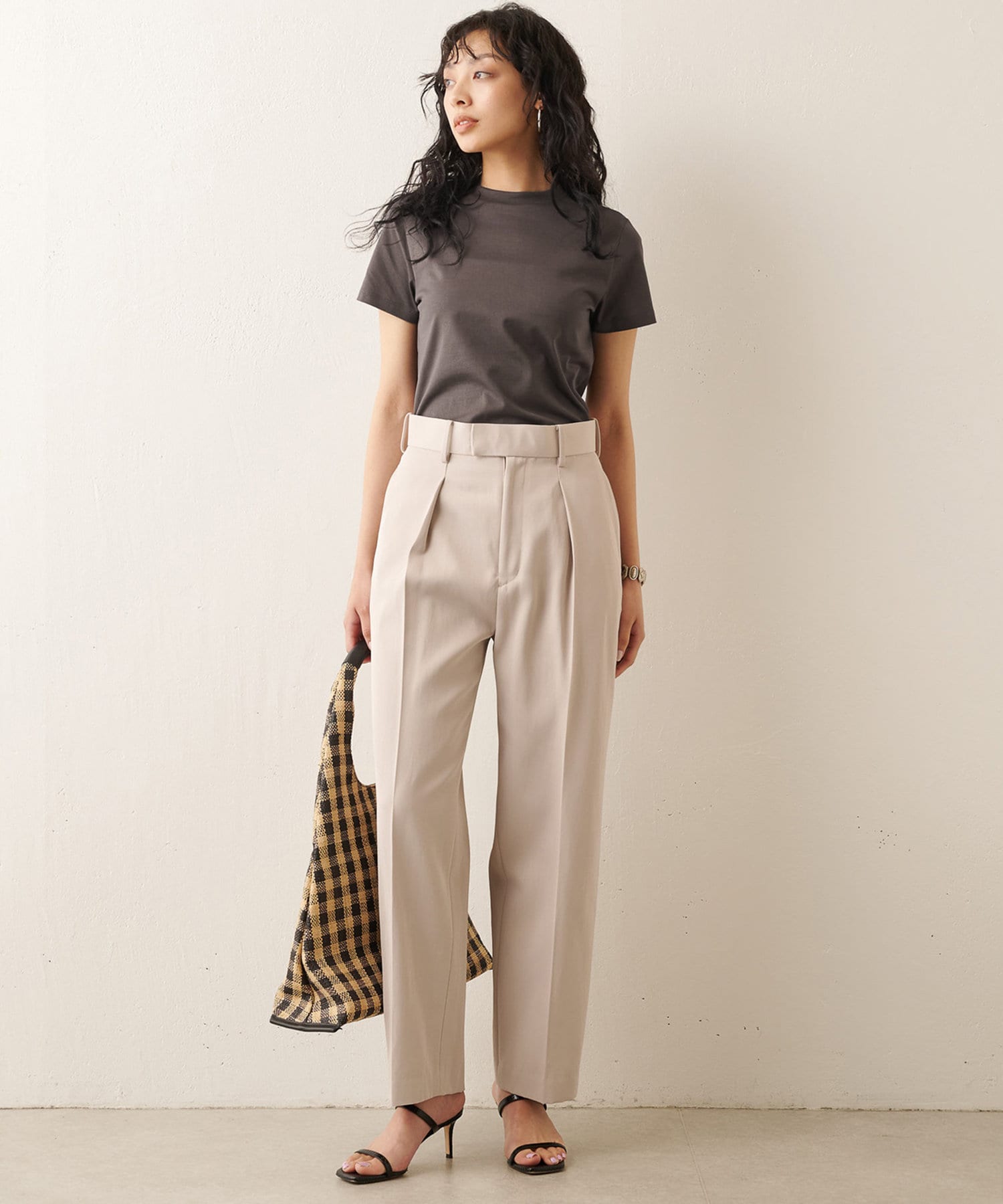 ■トレンドやシーズンを問わないベーシックなTシャツは、一枚でさらっと楽しむのはもちろん、ジャケットなどのインナーとしてもおすすめ。