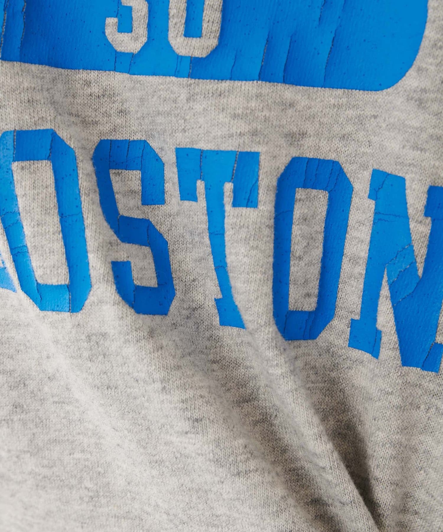 ■ロゴプリントにもクラック加工を施し、よりヴィンテージライクな雰囲気を表現。