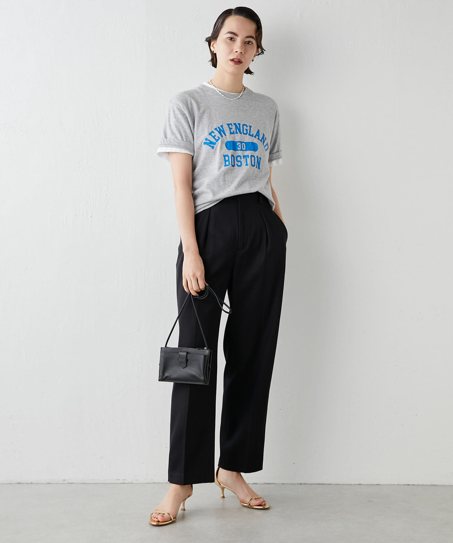 ■ボトムを選ばない程よくゆとりのあるシルエットながら、コンパクトな袖丈でラフ見えしすぎないのもポイント。
