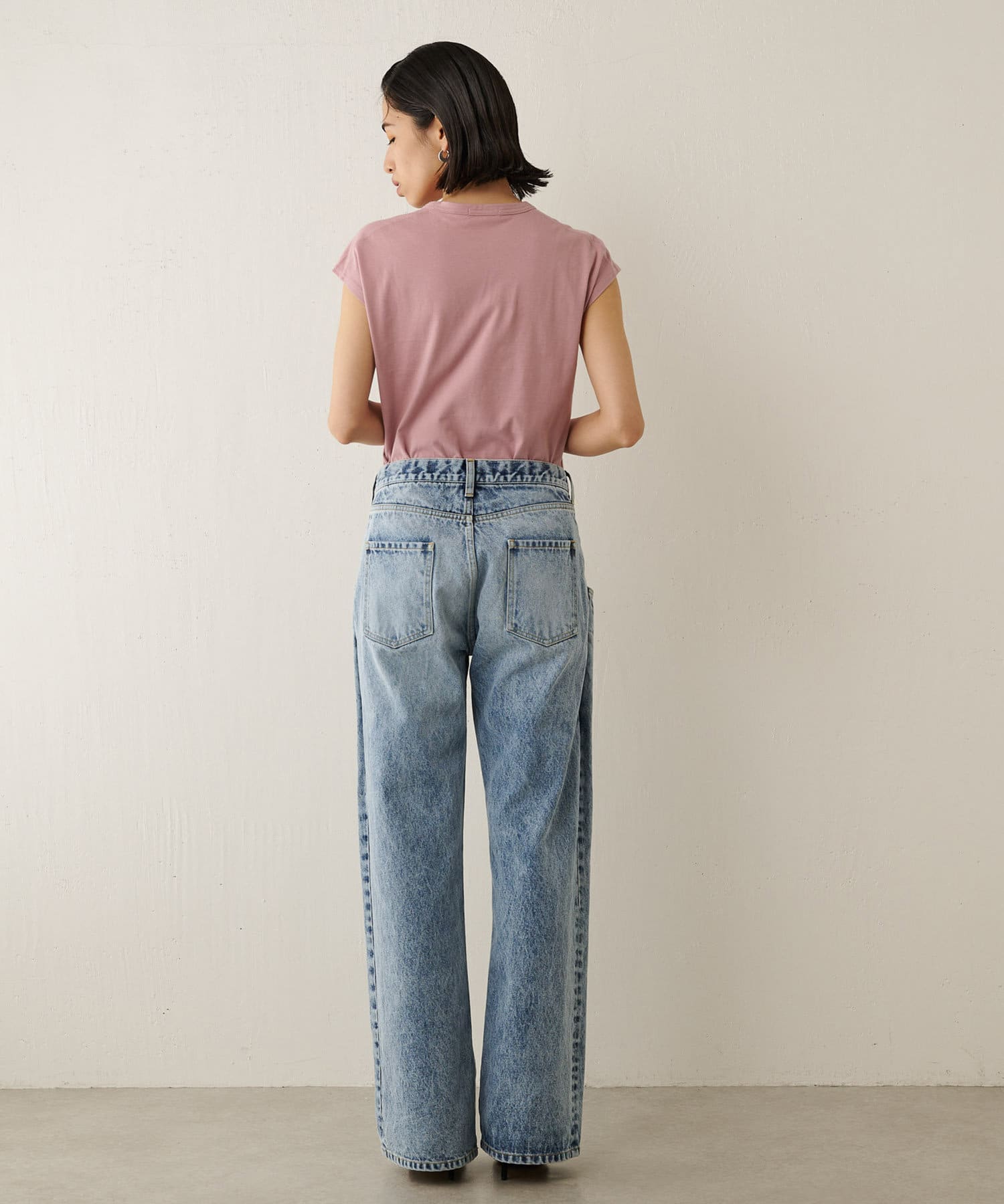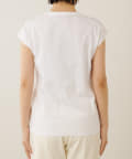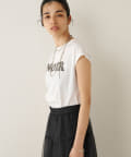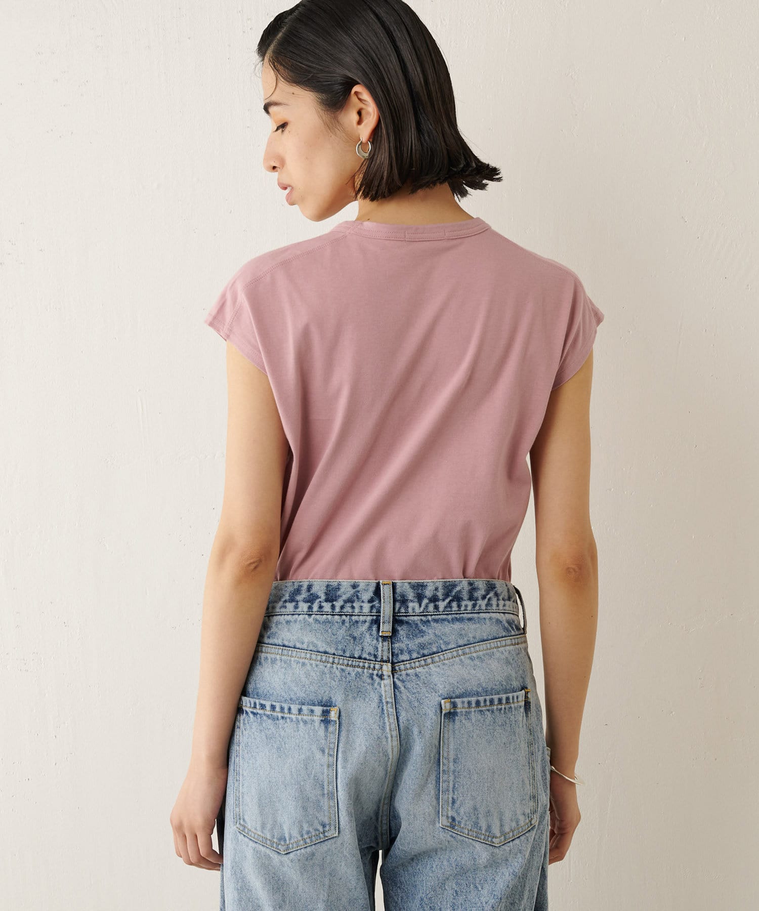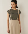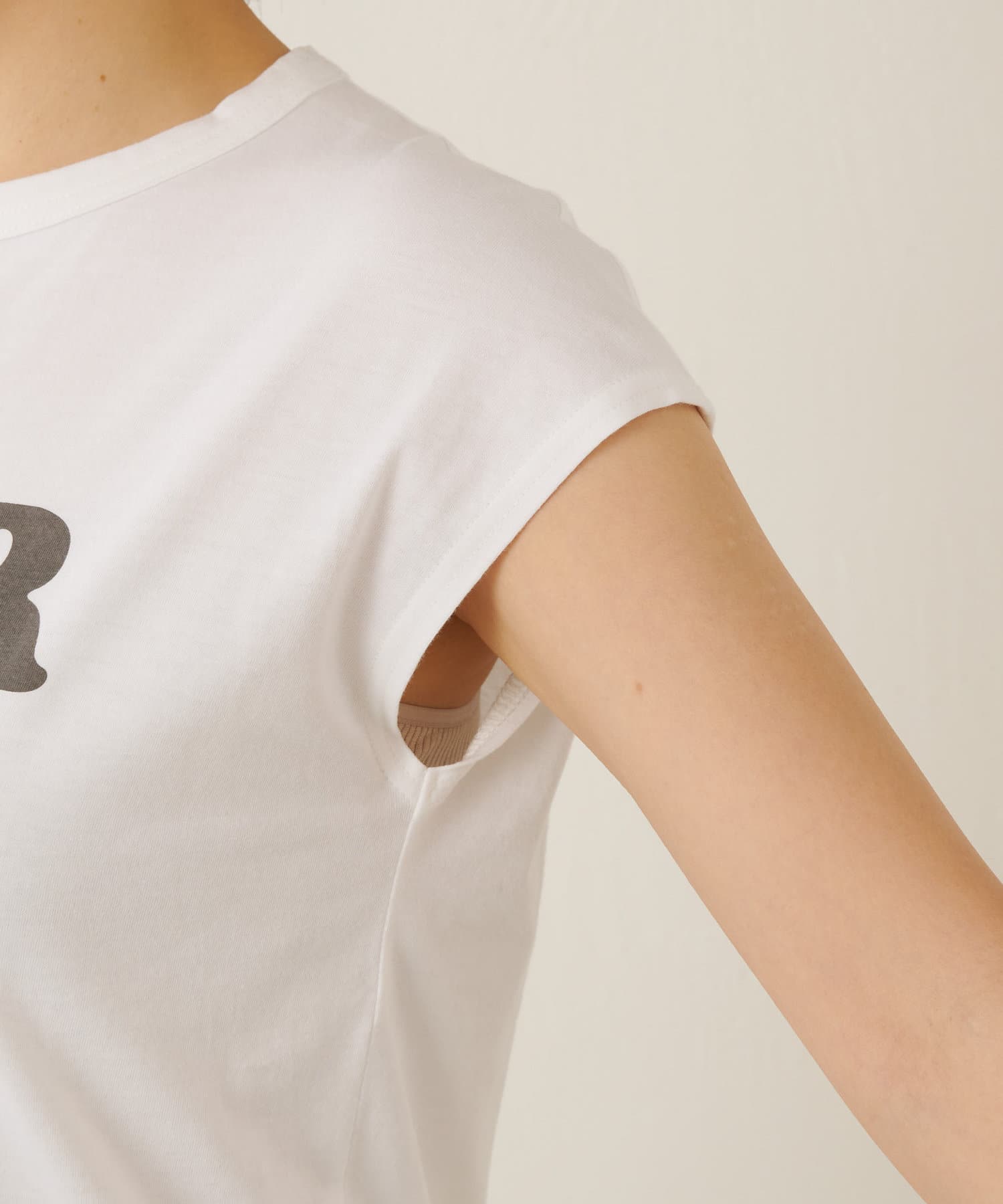 すっきりとした上半身になるカットソー。胸元のロゴがアクセントに。気になる二の腕もカバーしてくれるデザインです。
