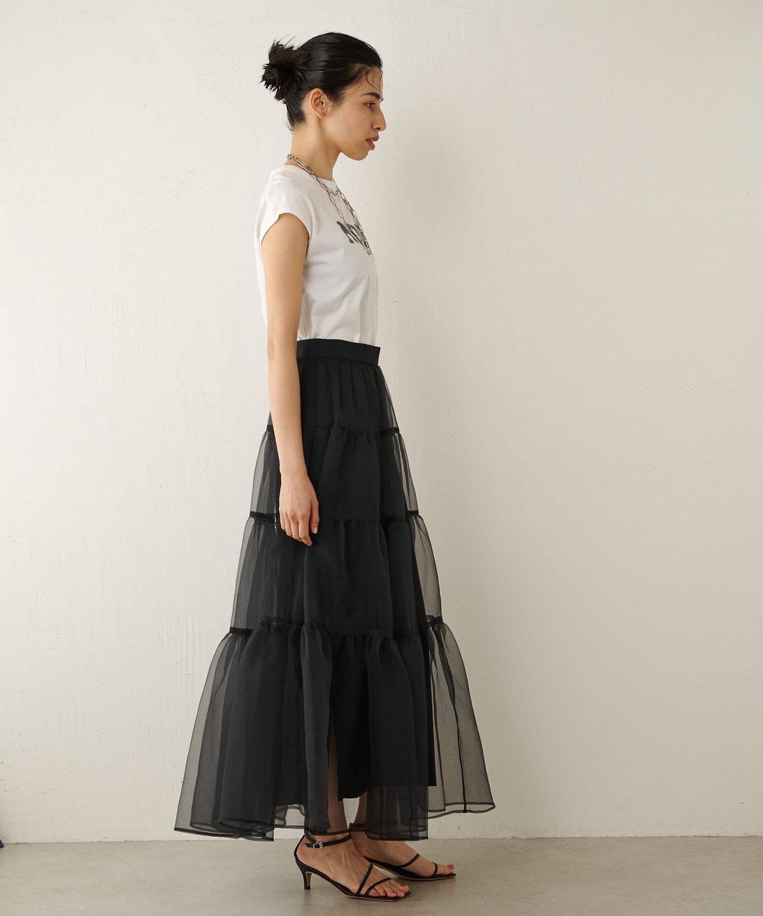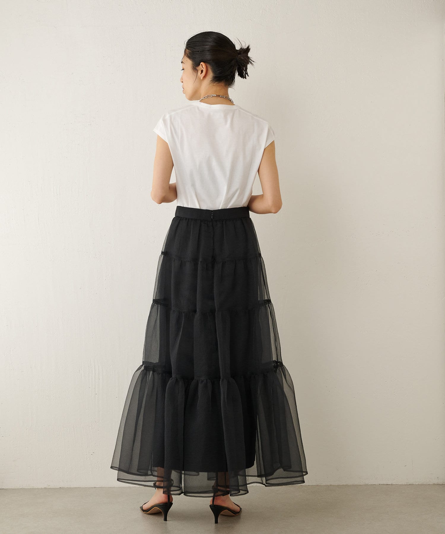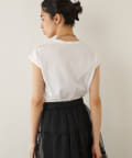 ■肩回りは露出しすぎずに一枚でも着こなしやすく、女性らしい印象をプラス。