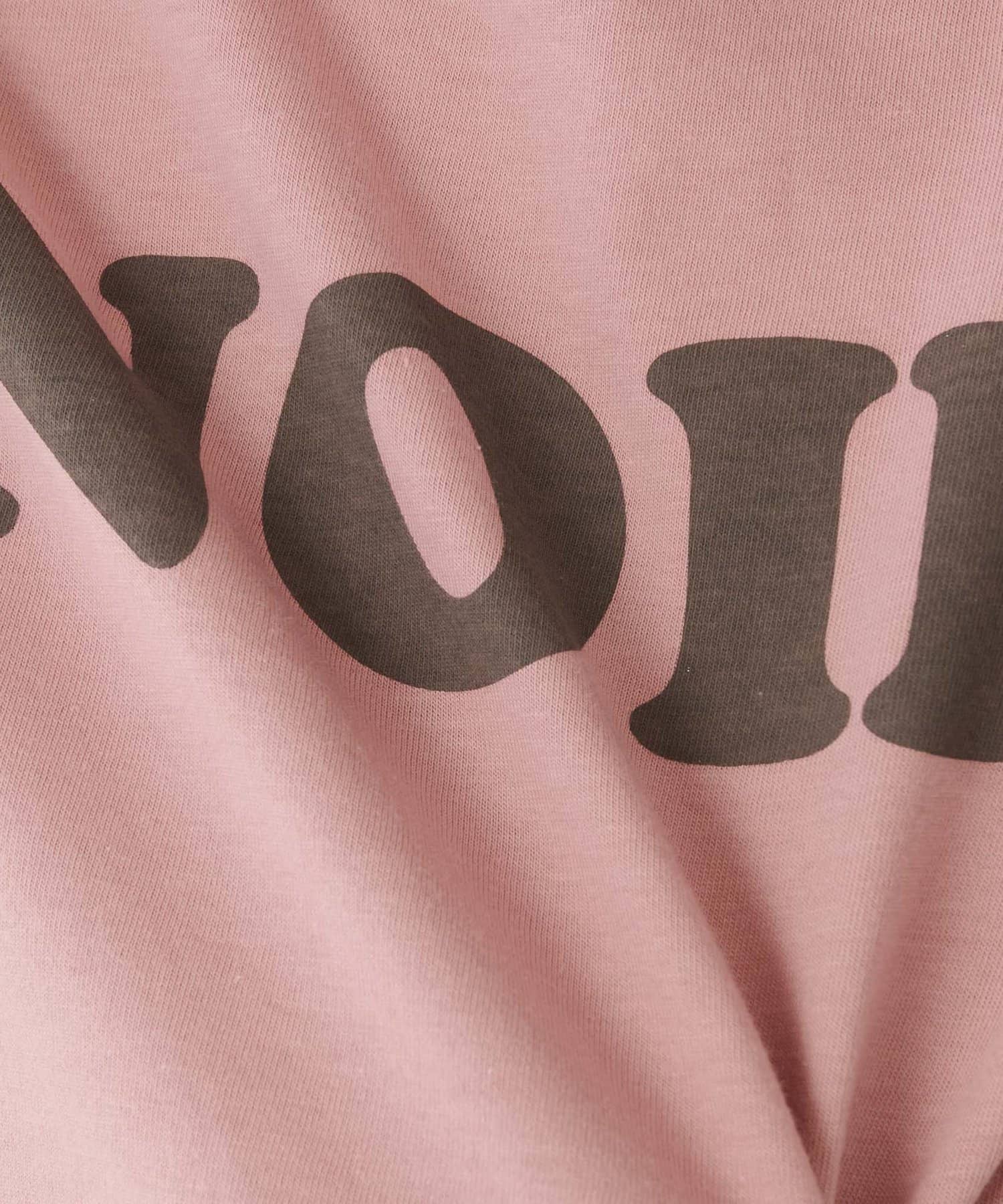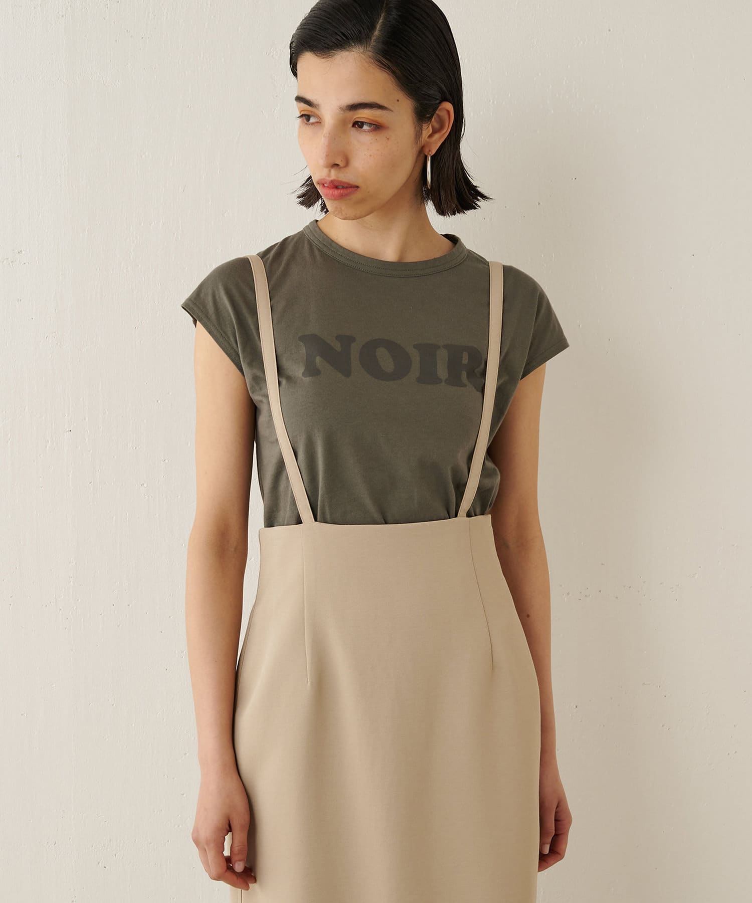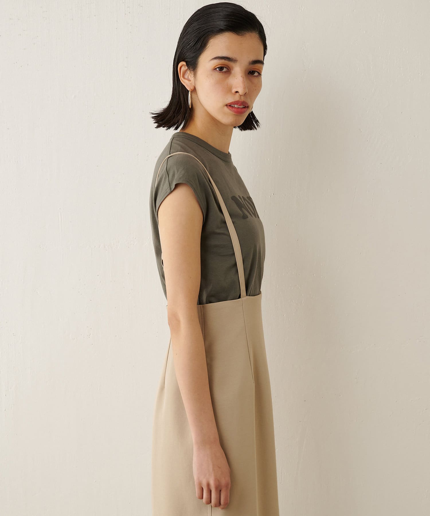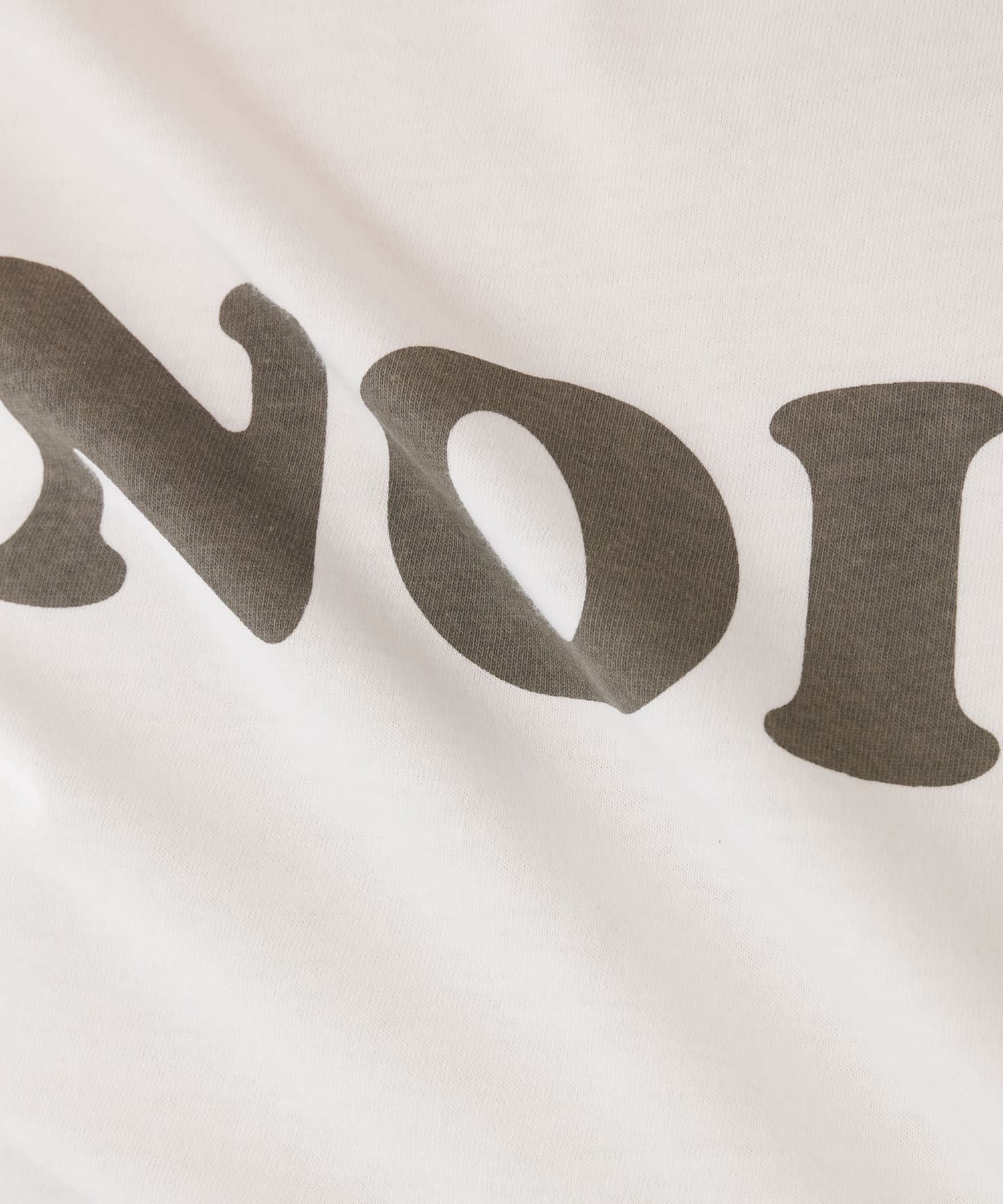 ■着こなしのアクセントになるロゴプリントは、主張しすぎないカラーリングが大人のスタイリングにぴったり。