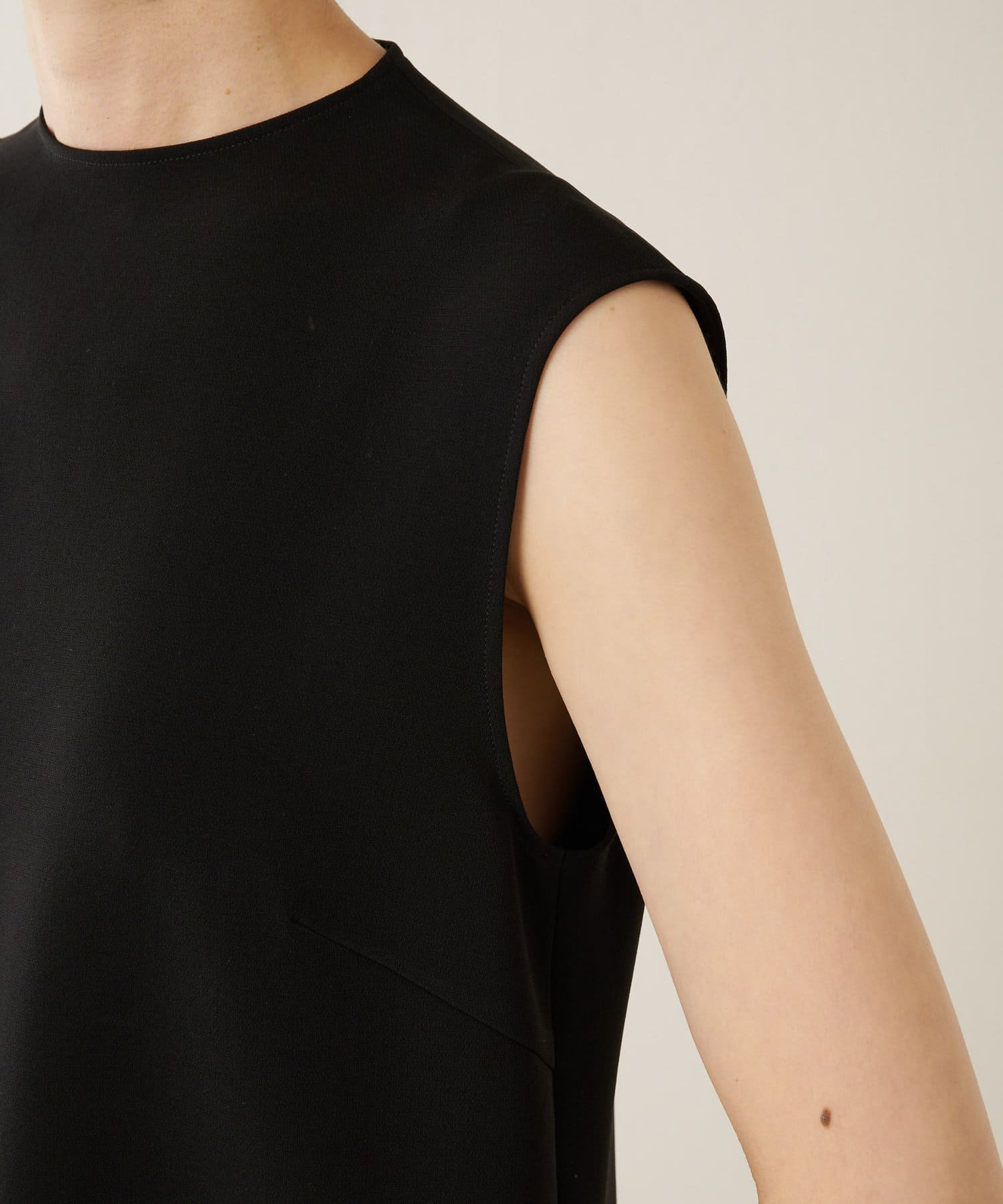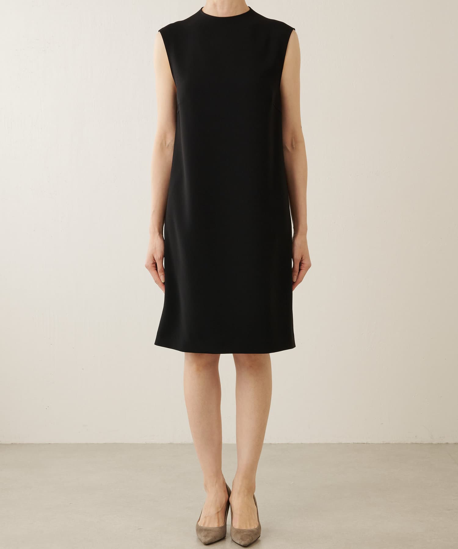 ■シンプルに仕上げられたミニ丈のノースリーブワンピース。