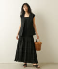 ■スカート部分のジャガード織りの立体的な柄や透け感が目を惹く一枚。