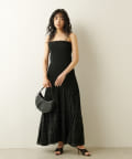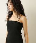 ジャガード素材の風合いが引き立つベアワンピース。ベアトップ部分は伸縮性に優れており、とても着心地がよかったです。