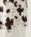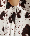 COW柄のボウタイブラウスです。ボウタイを後ろでアレンジも出来ます。さらっとした柔らかい肌触りで、ヒップまで隠れる丈なので体型カバーにもおすすめです。