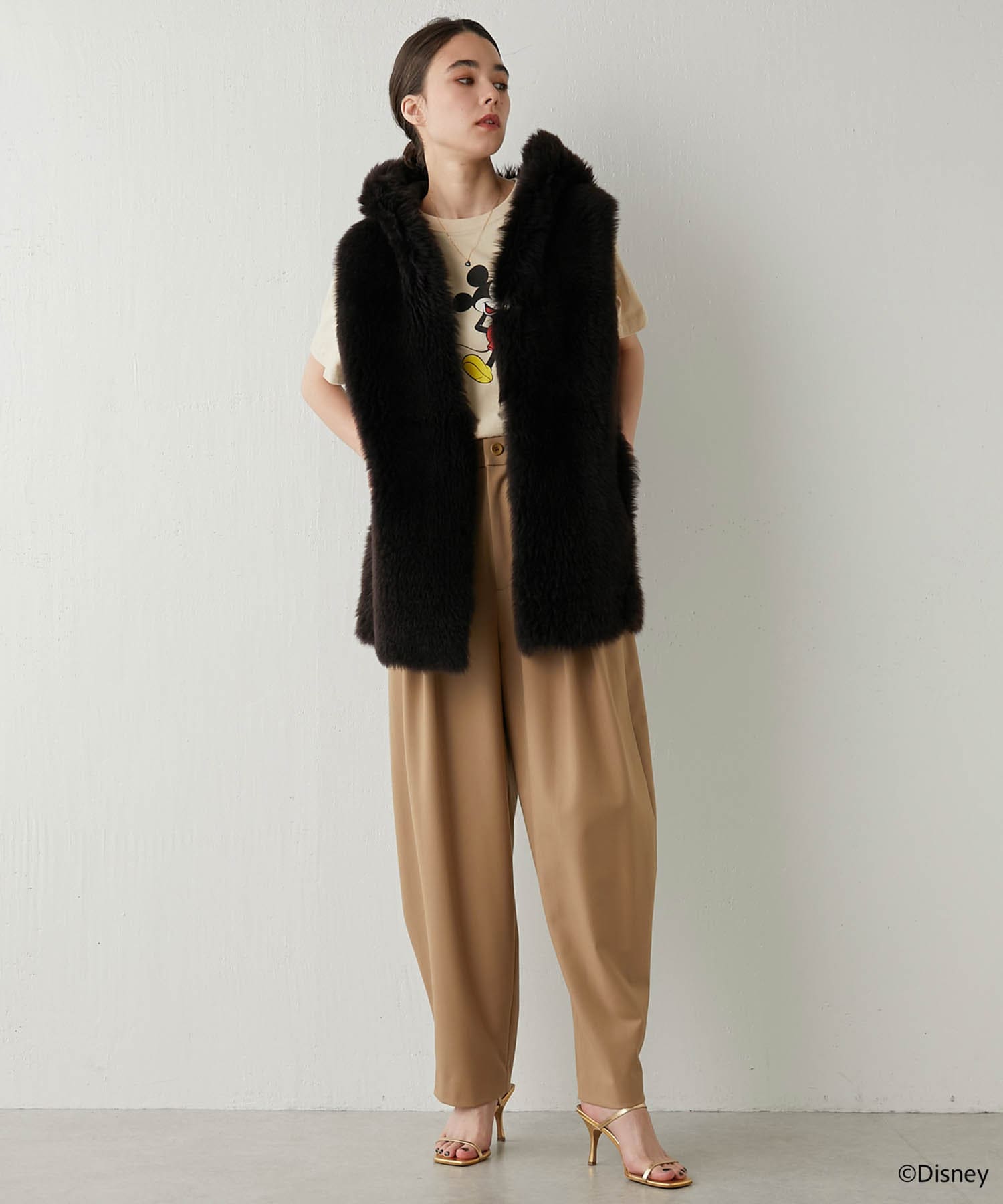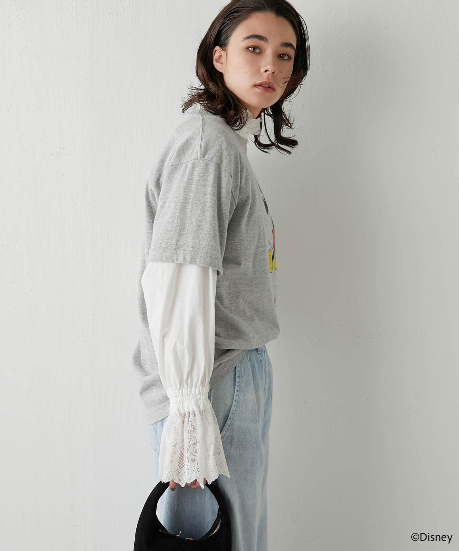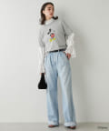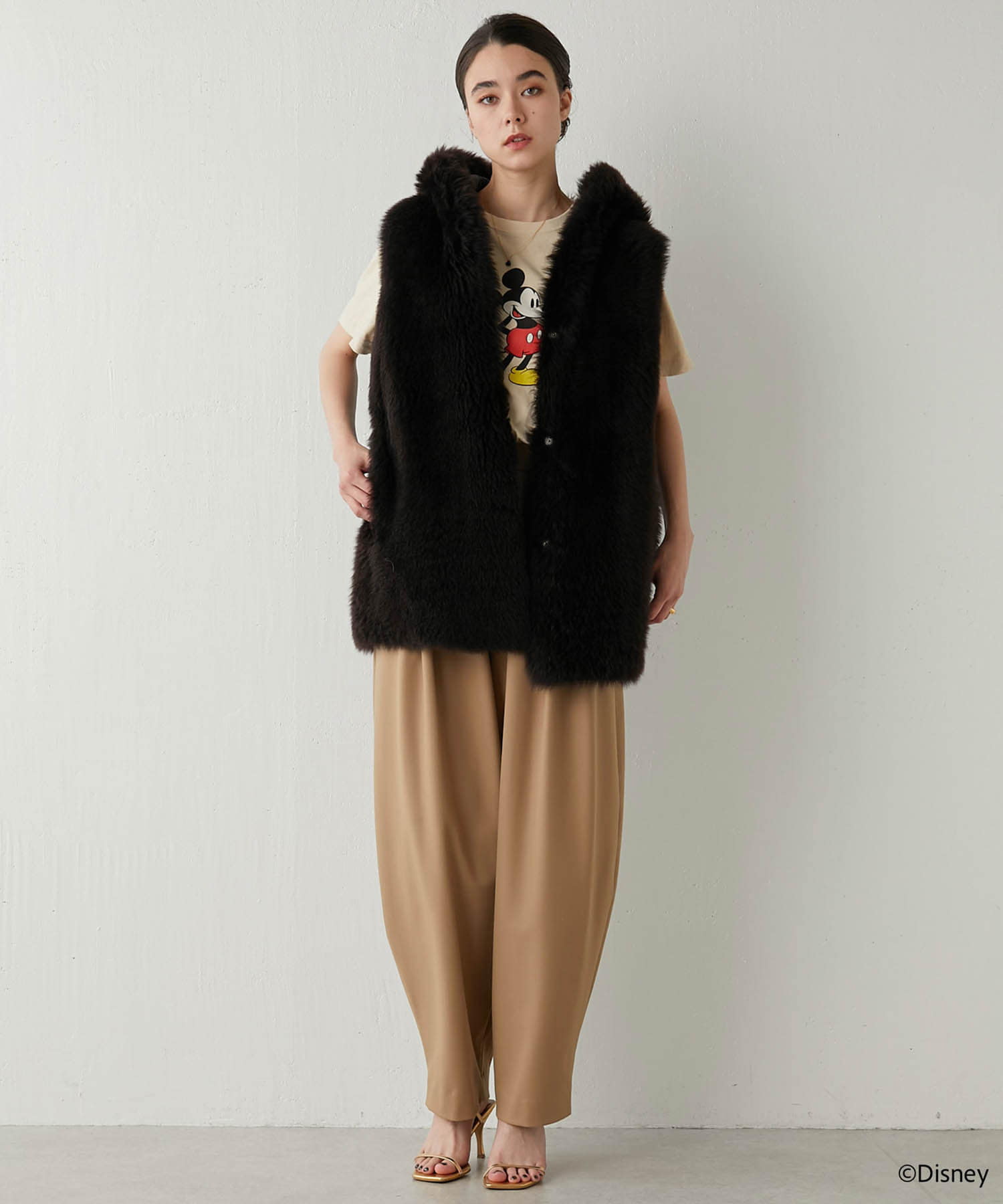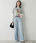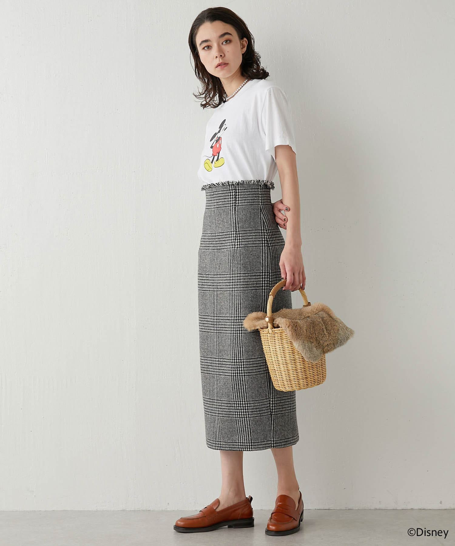 コーディネートのポイントになるミッキーTシャツ。短過ぎない丈感で、大人の女性に嬉しいサイズ感。シルエットも大き過ぎず小さ過ぎず、程よいので使いやすいです。肌のあたりも柔らかいですよ。
