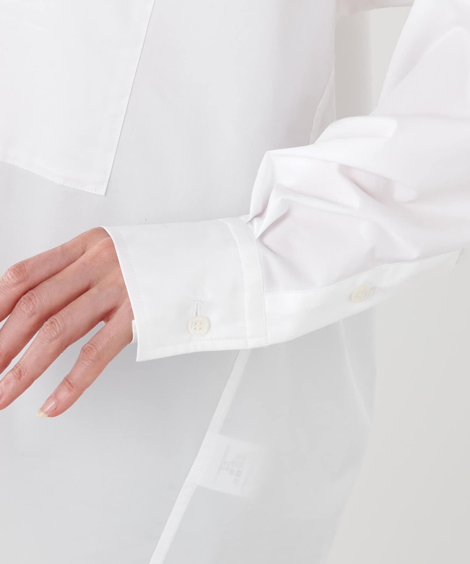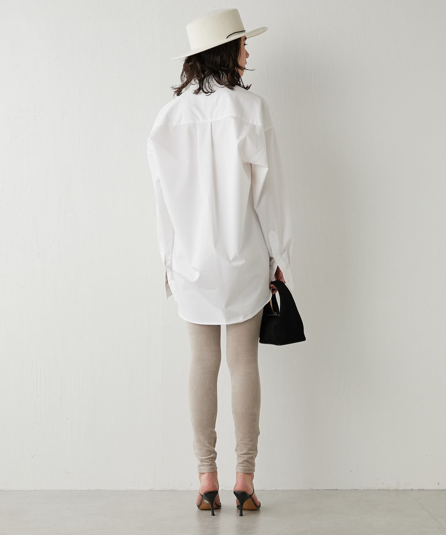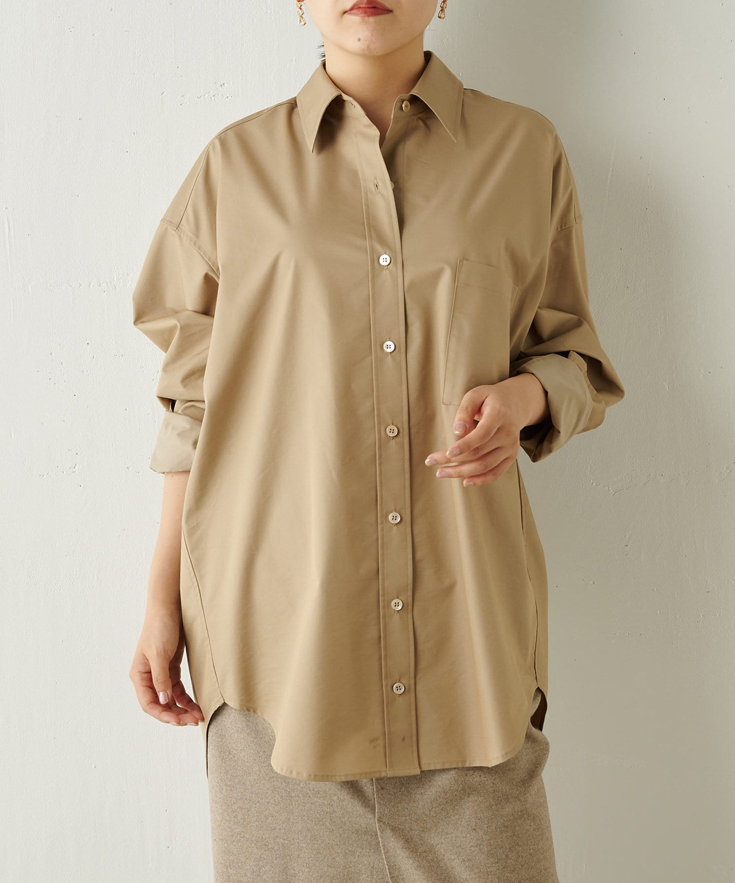 大きめのサイズ感がトレンドらしさをプラスしてくれるシャツ。お尻の隠れる長めの着丈は体型カバーになり、タイトなボトムの羽織りにも重宝しそうです!軽い着心地でさらっと羽織れるので、ノースリーブの合わせにもおすすめです。