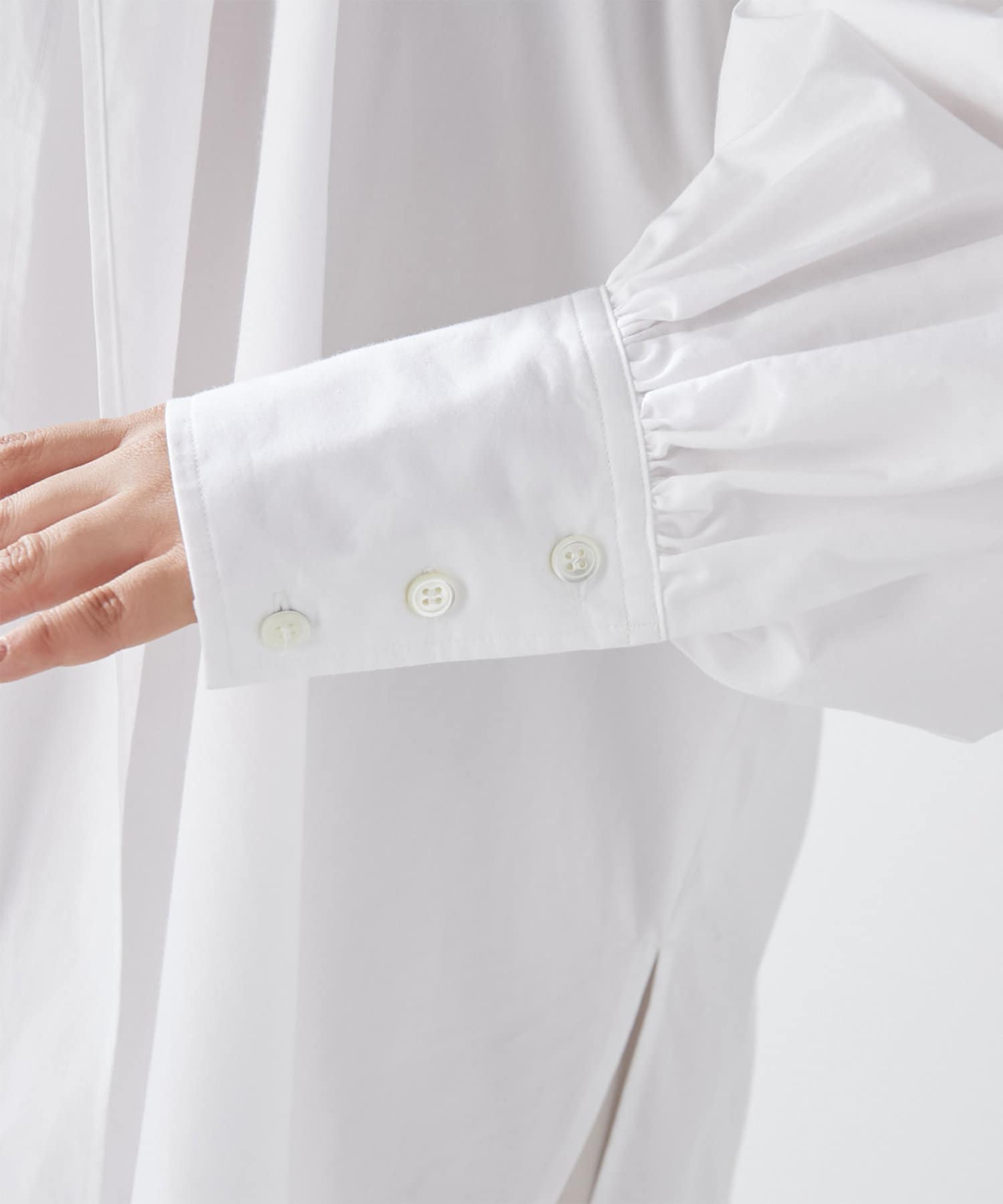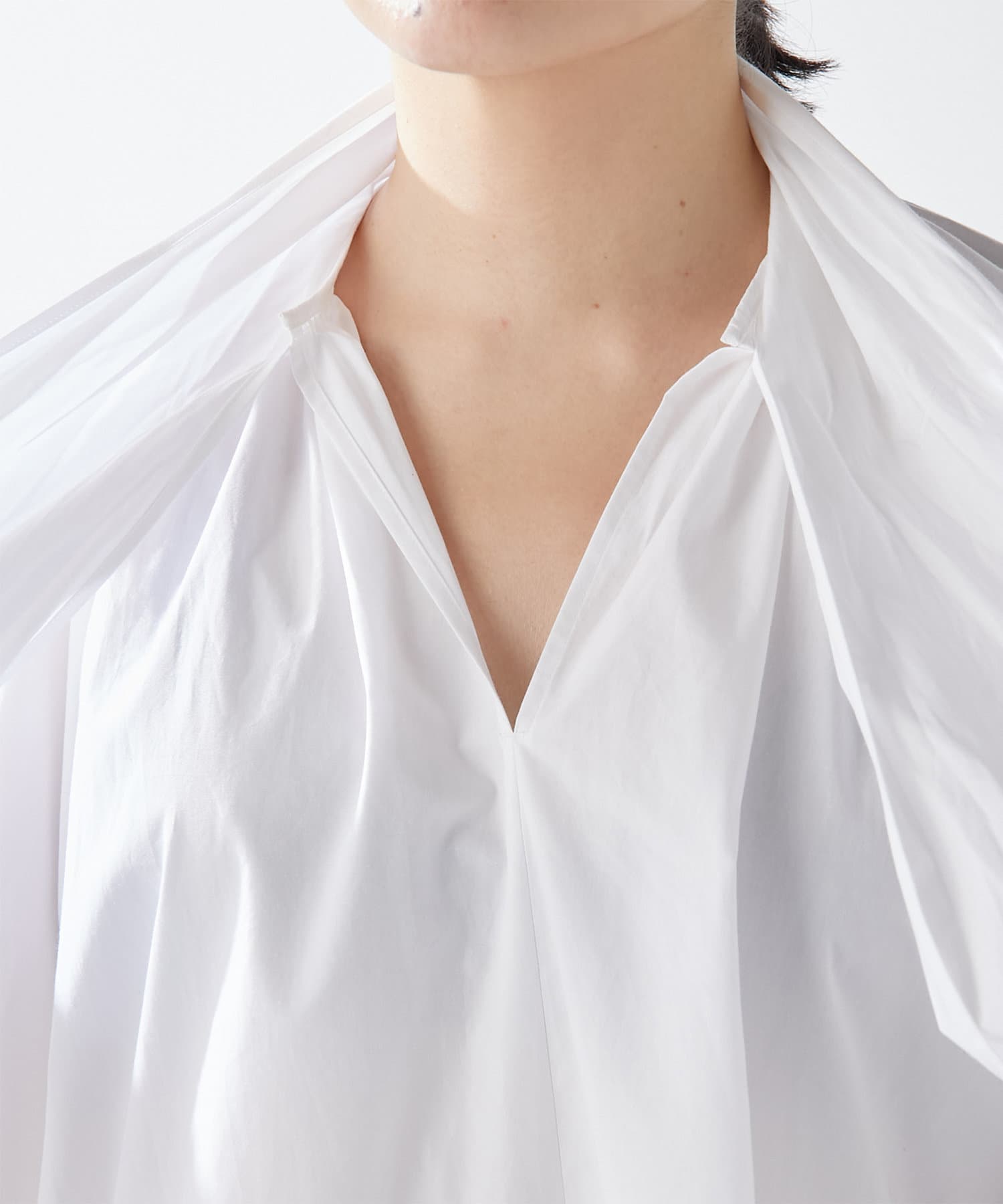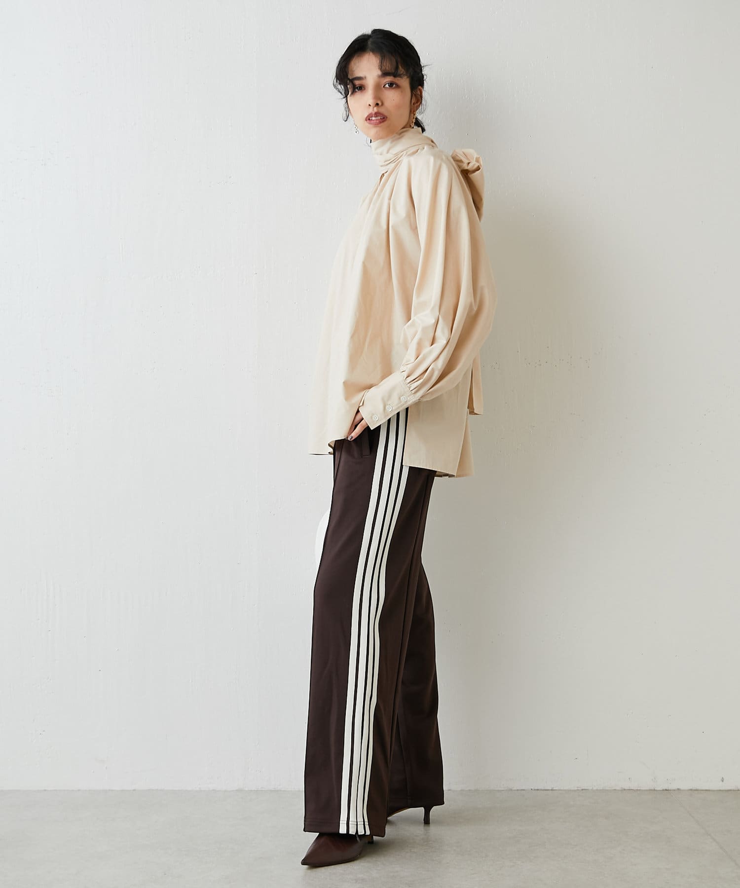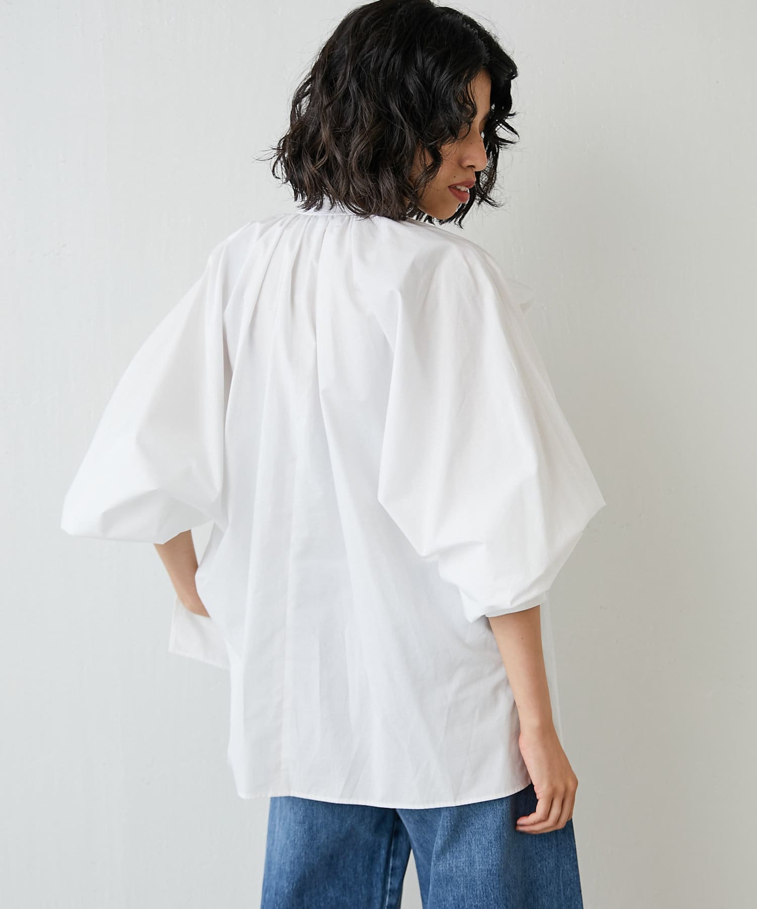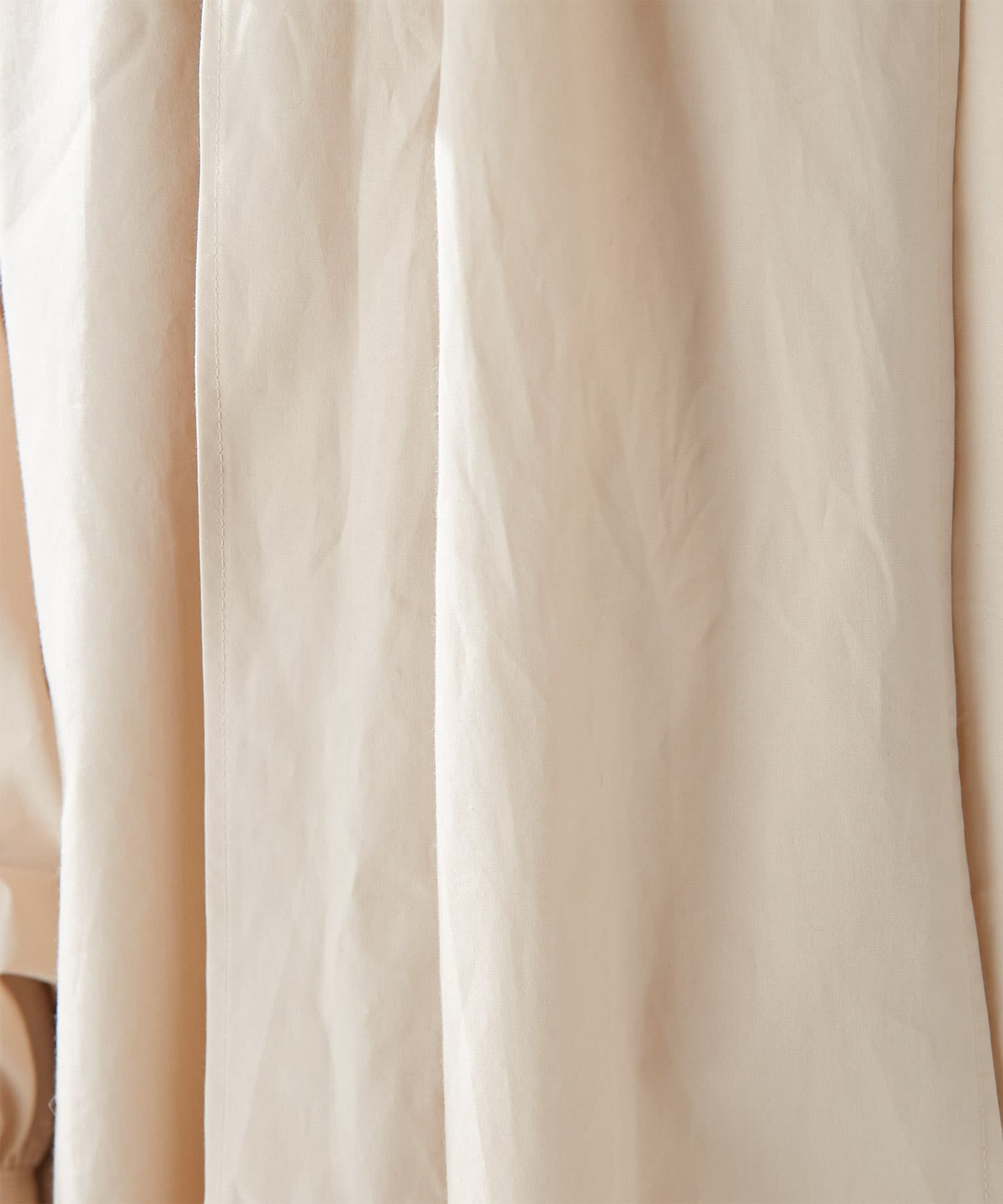 ボウタイのボリューム感が差をつけます。ハリとギャザーにより、シルエットがキープされ、着映える一枚。季節を問わず、投入できるのが嬉しいですよね。タイの結び方で雰囲気を変えられます。