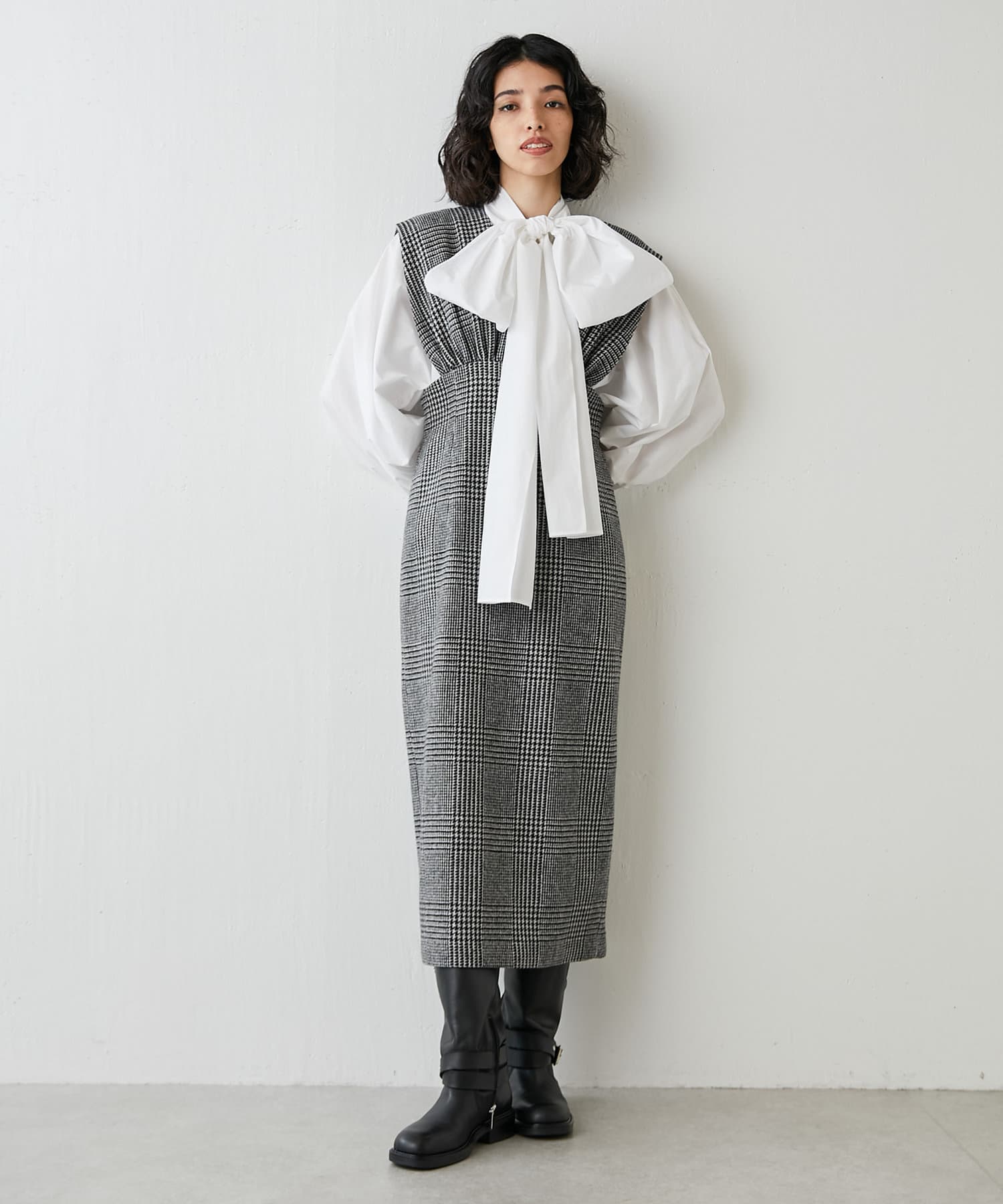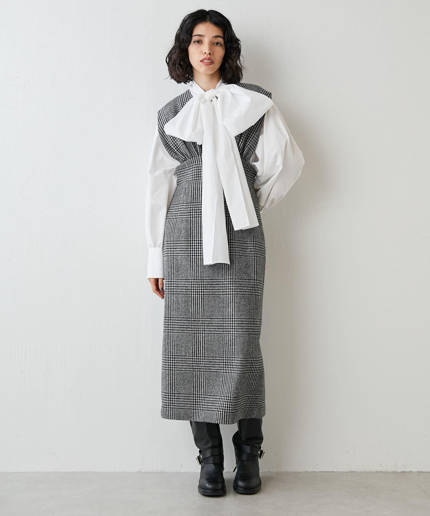 ■長めにとったタイはリボン結びはもちろん、ラフに垂らしたりバックで結んだりとアレンジ次第で様々な表情を楽しめるデザイン。