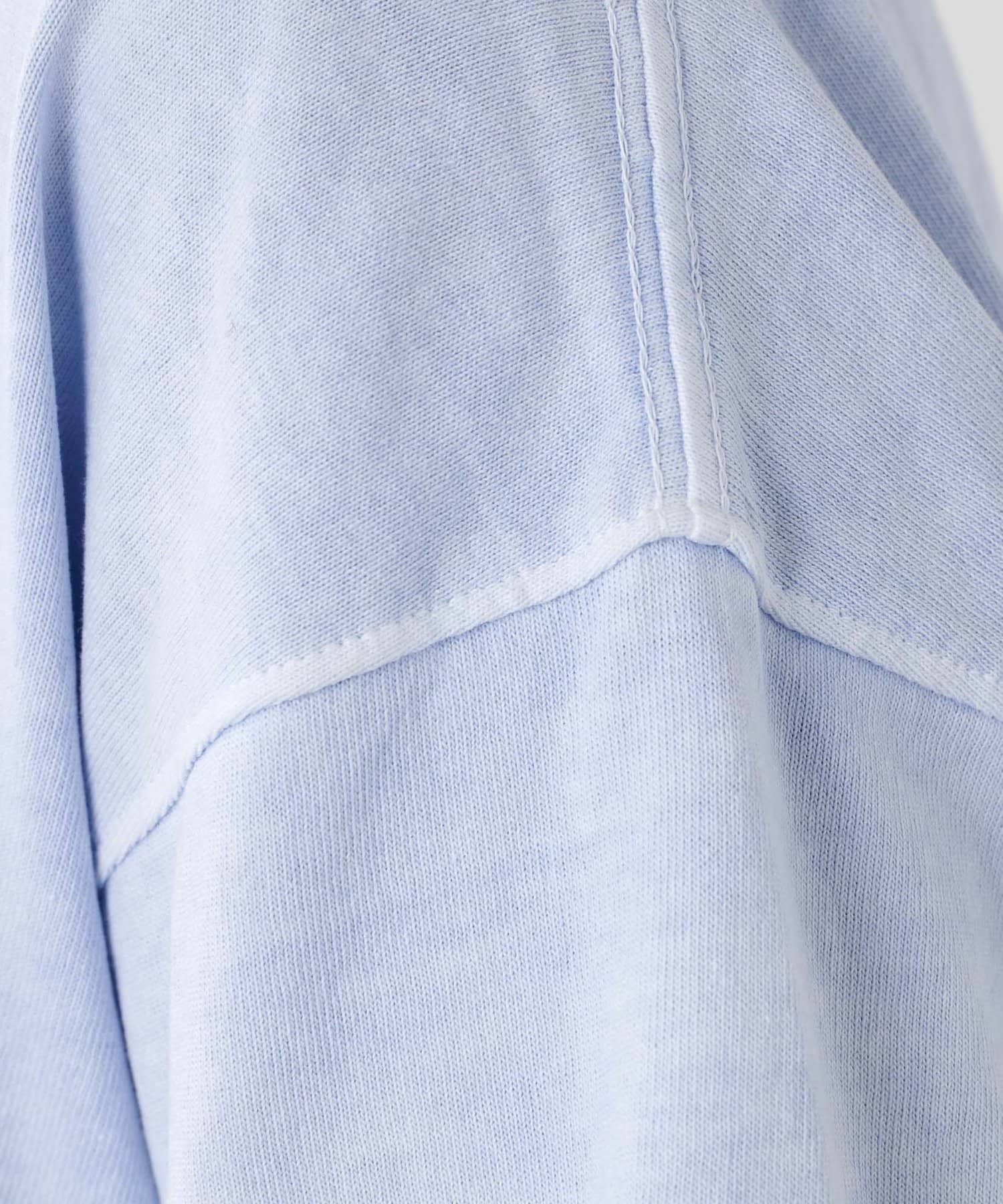 製品染めと洗いによりラフなリラックスした表情をもつドライタッチのコットン天竺素材。