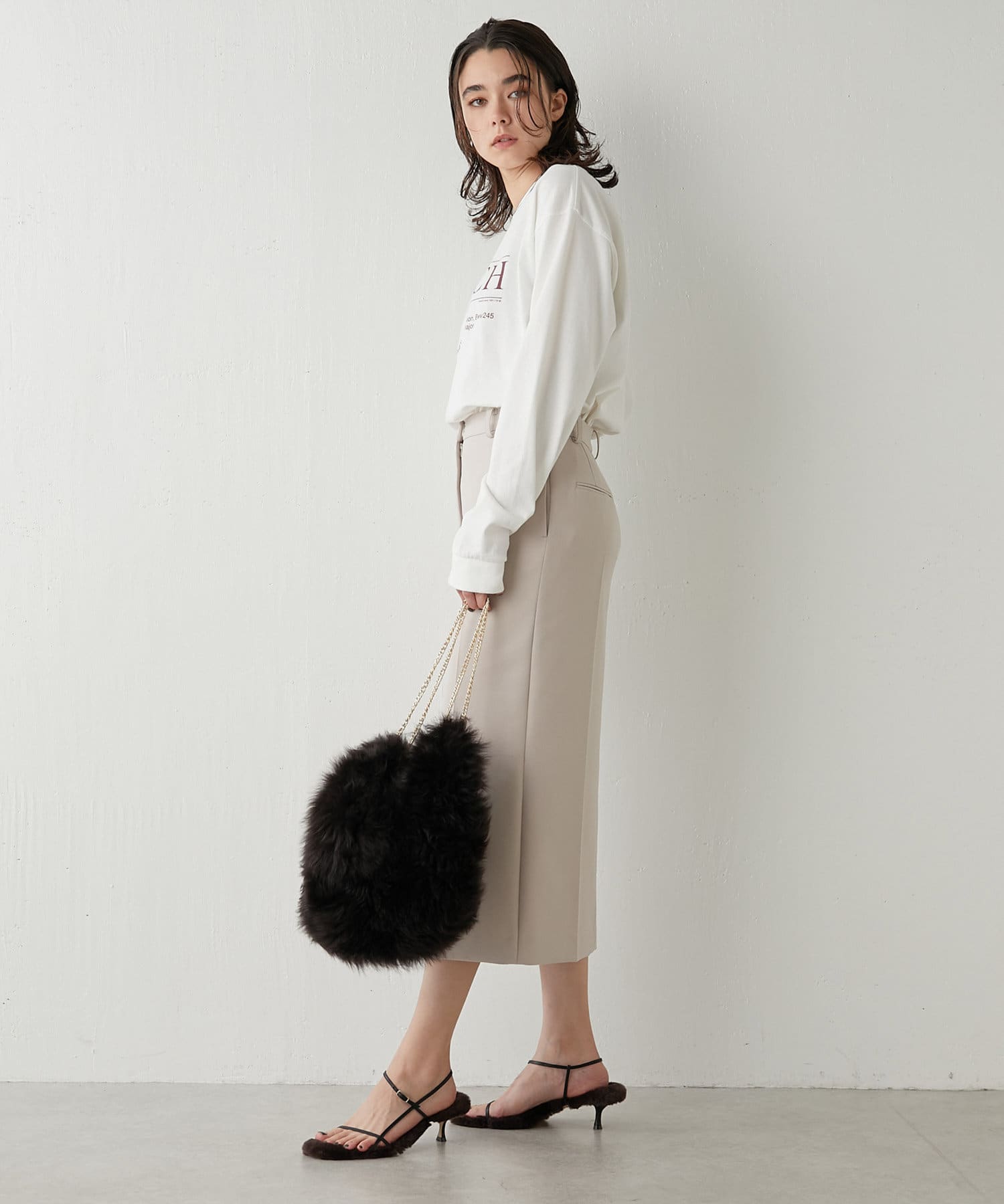 ■主張しすぎないプリントカラーやフォントデザインは大人のスタイリングに取り入れやすく、さりげない遊び心を添えてくれるアイテム。