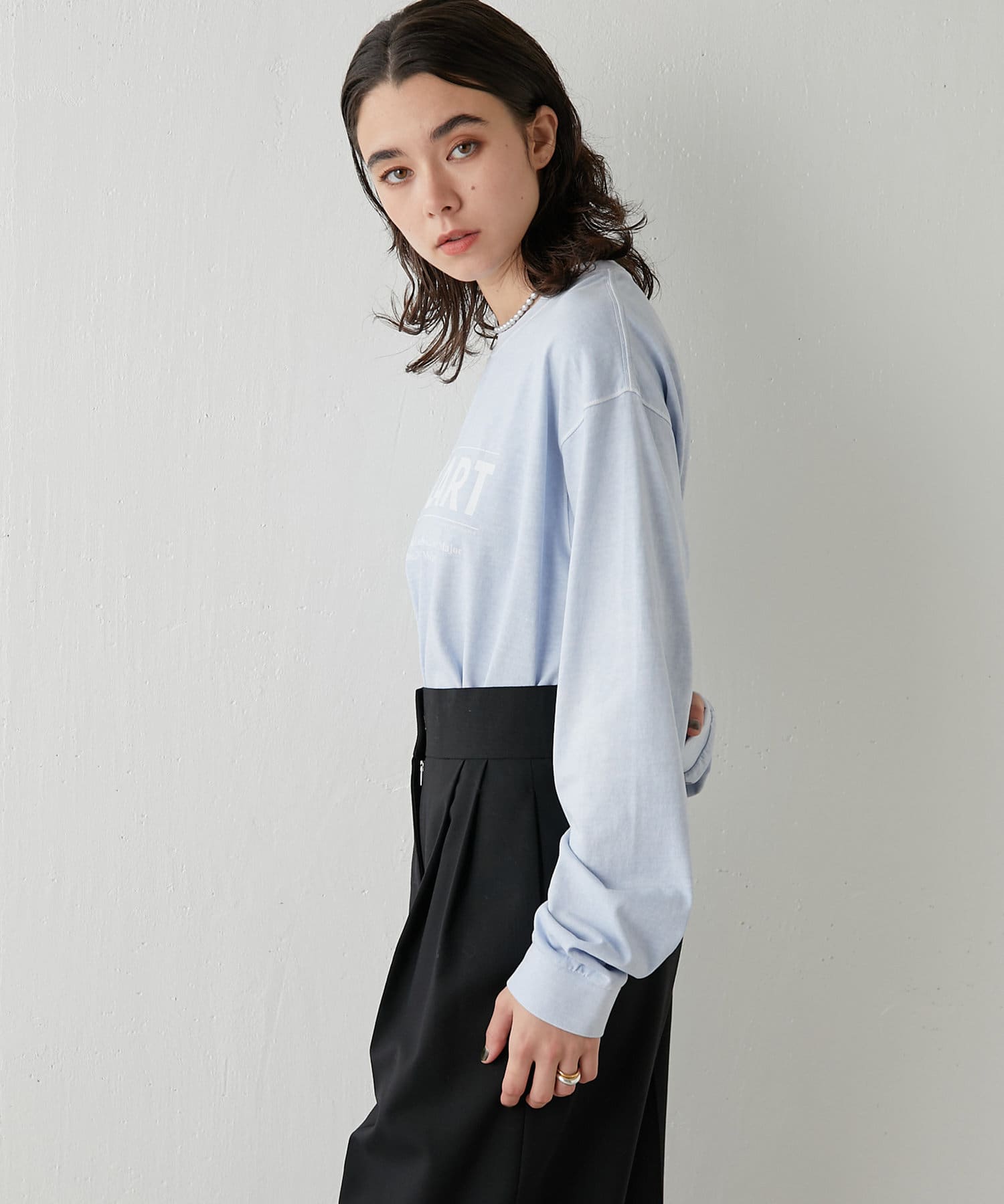 さり気ないロゴがコーデのポイントとなってくれるロンT。ありそうでない、色合いで合わせるボトムを選びません。主張し過ぎないロンTは大人の女性におすすめです。