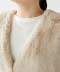 のっぺり感がなく、ふわふわな触り心地が可愛い一枚。ベージュでワントーンコーデを作れば柔らかい雰囲気の上品な装いへと導きます。タイトすぎずルーズすぎない絶妙シルエットが人気の理由です。フロントのホックで前を閉じてスタイリングするのもおすすめです。