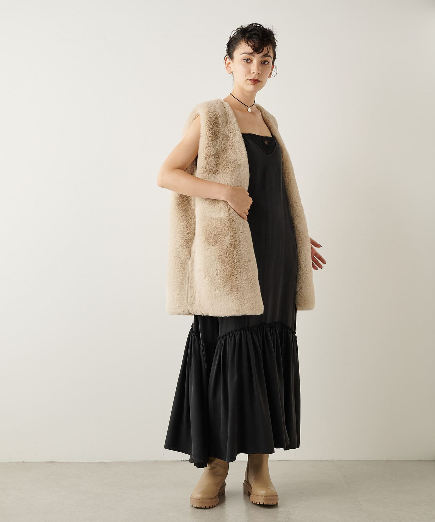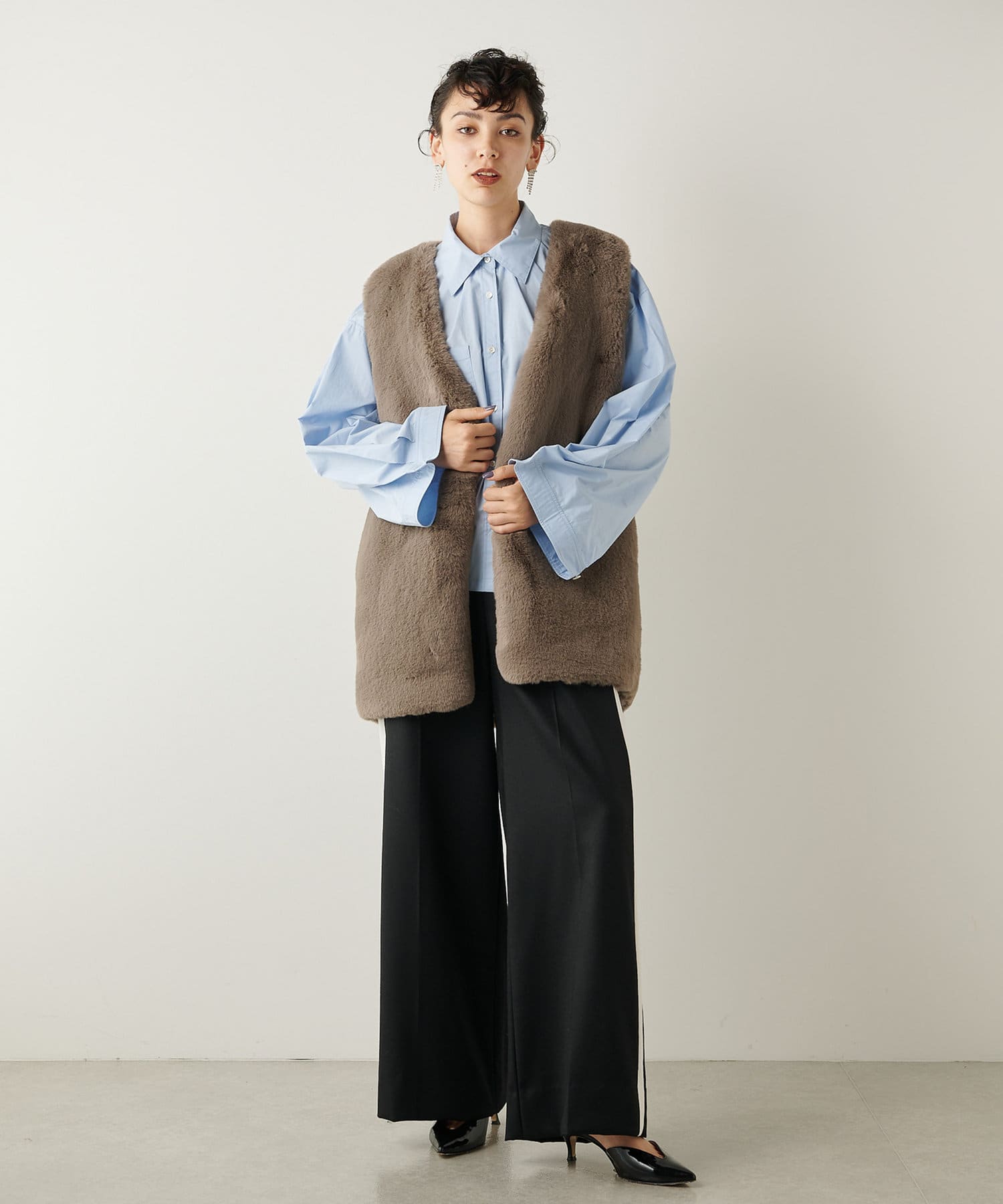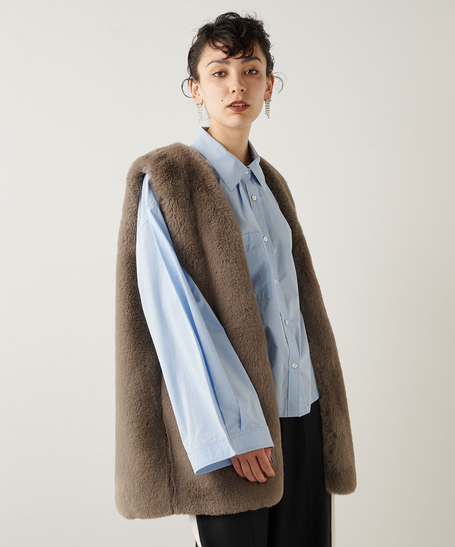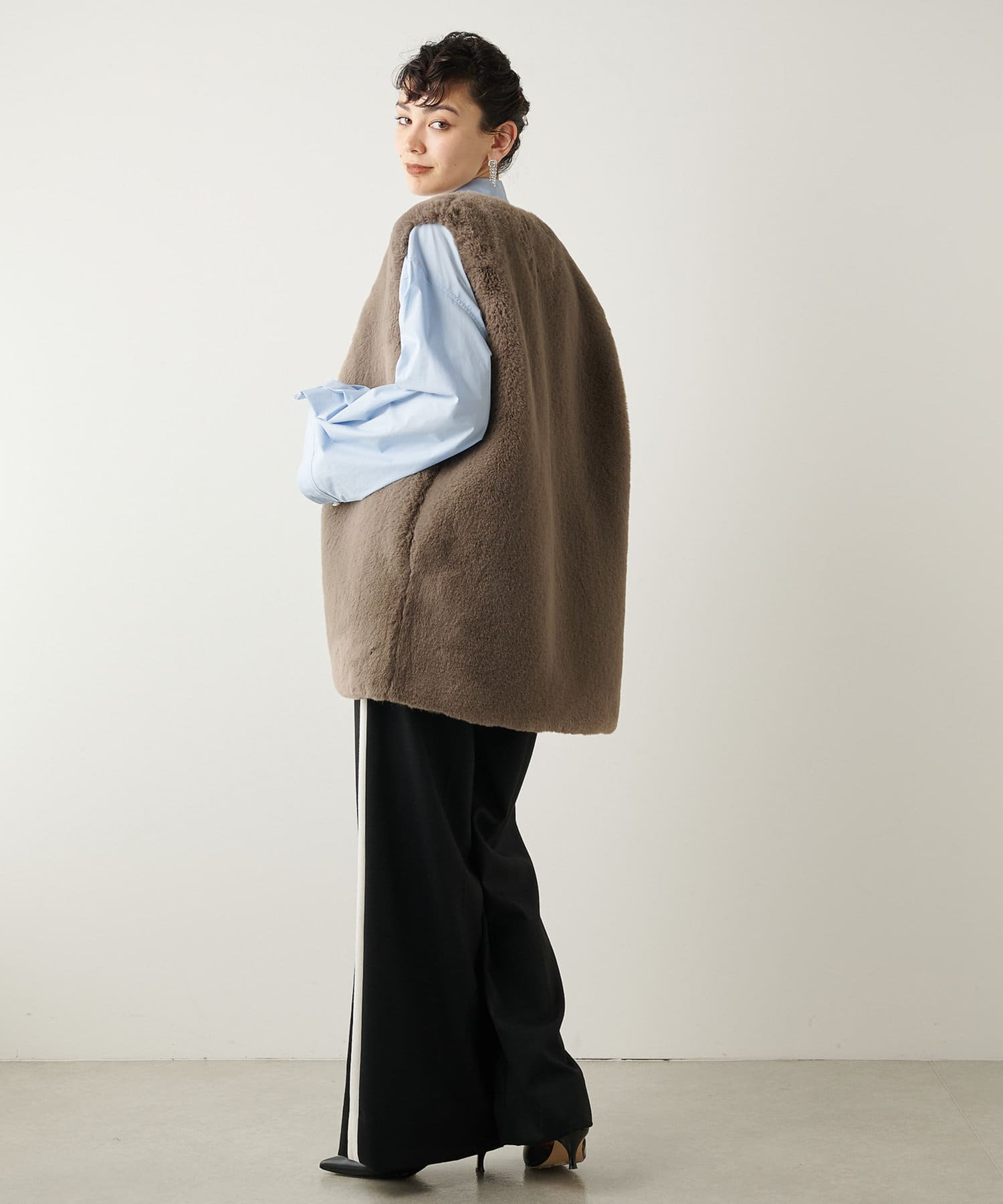 ■フェイクとは思えない滑らかな肌触りと上質なツヤが魅力のエコファーベスト。