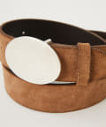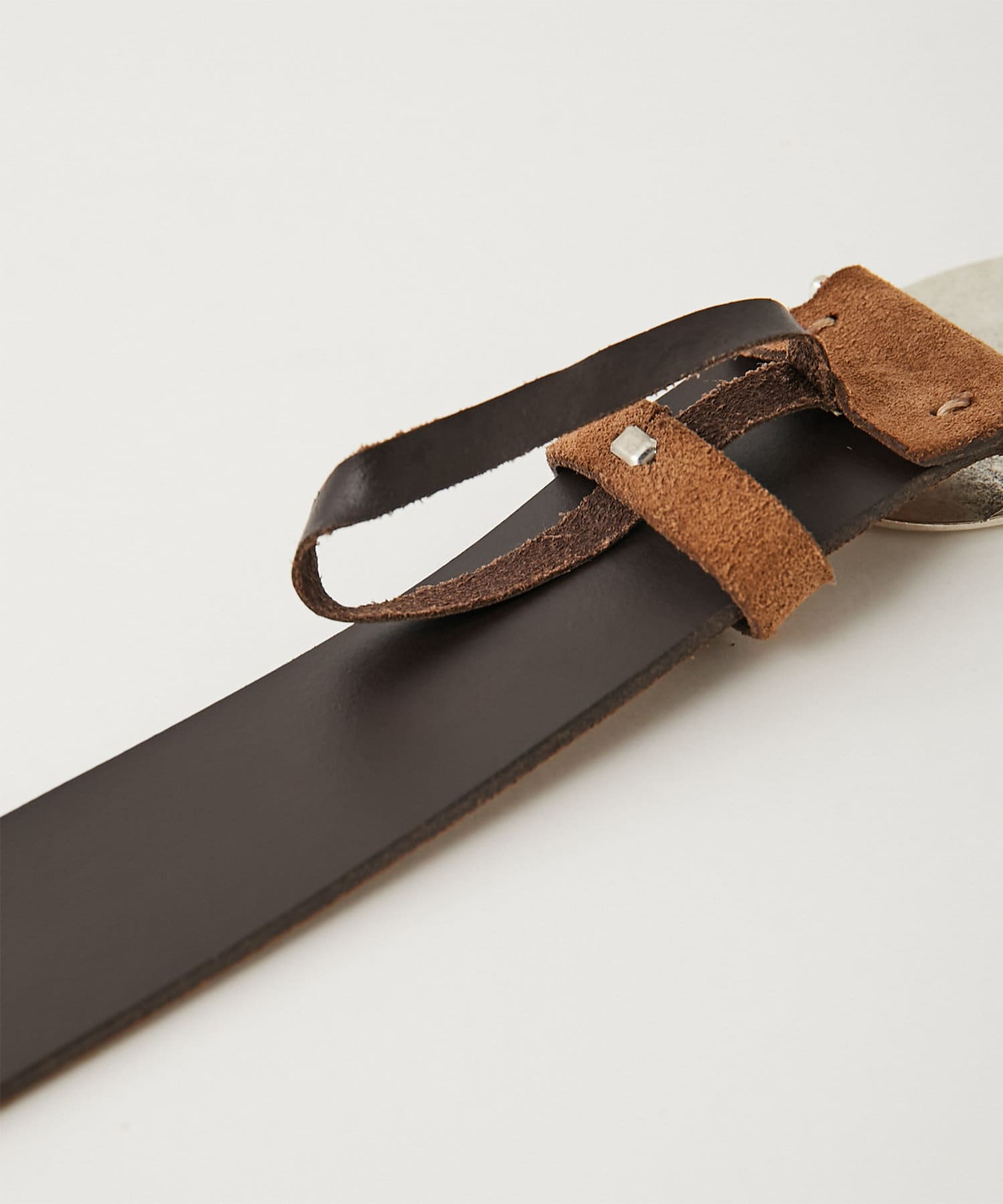 ■柔らかなレザー素材のベルトに、大きめのシルバープレートがアクセントになったデザイン。