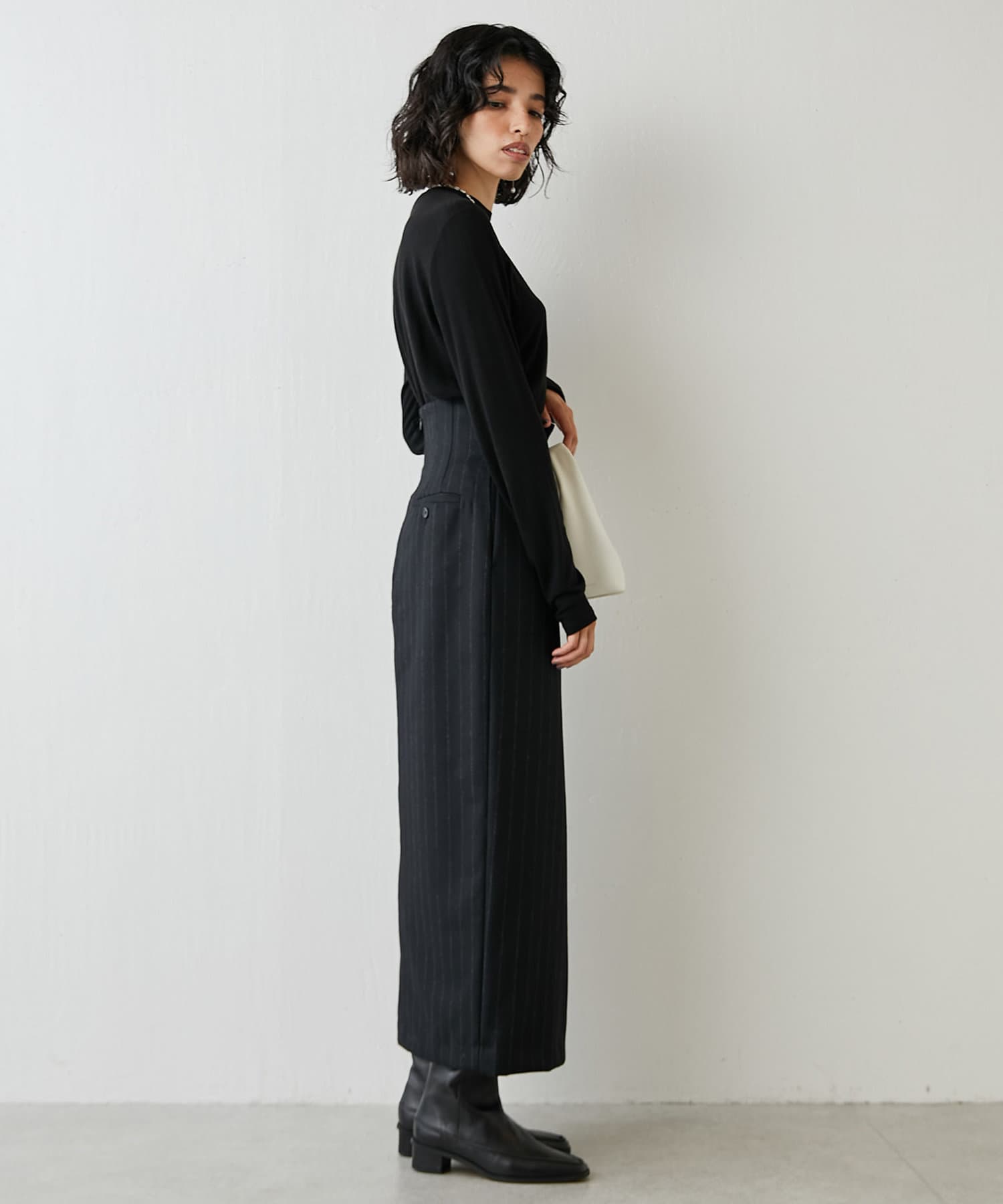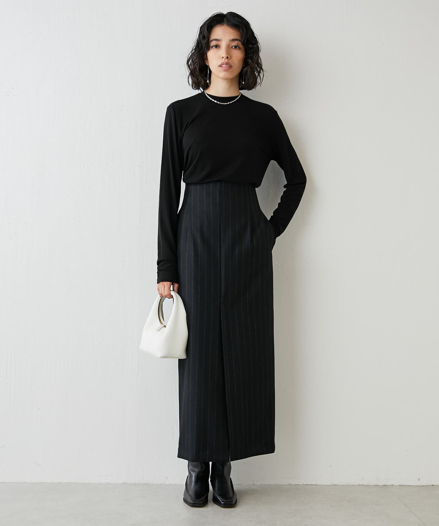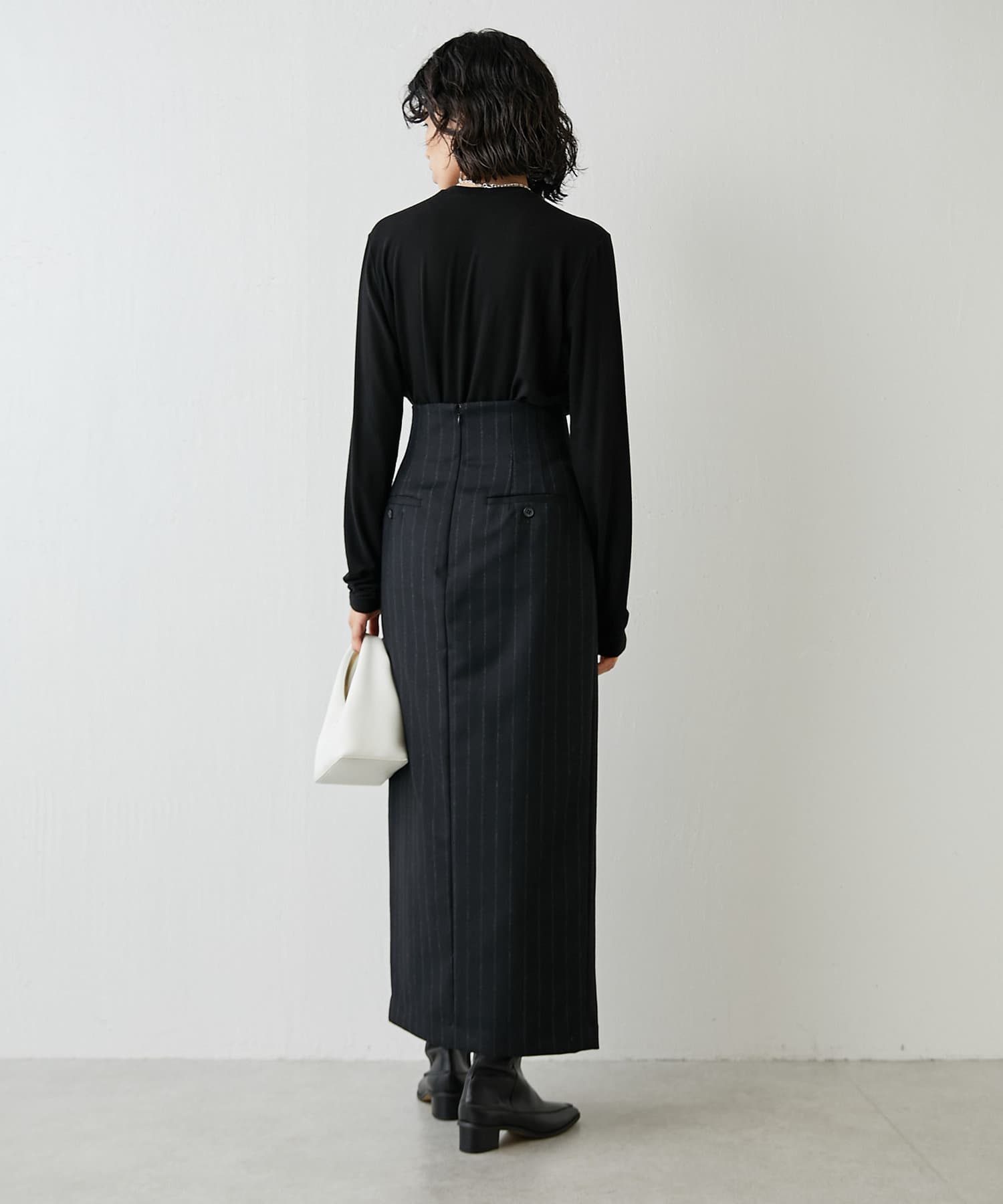 ■高めのウエスト位置がアクセントになった、スタイリッシュなロングスカート。
