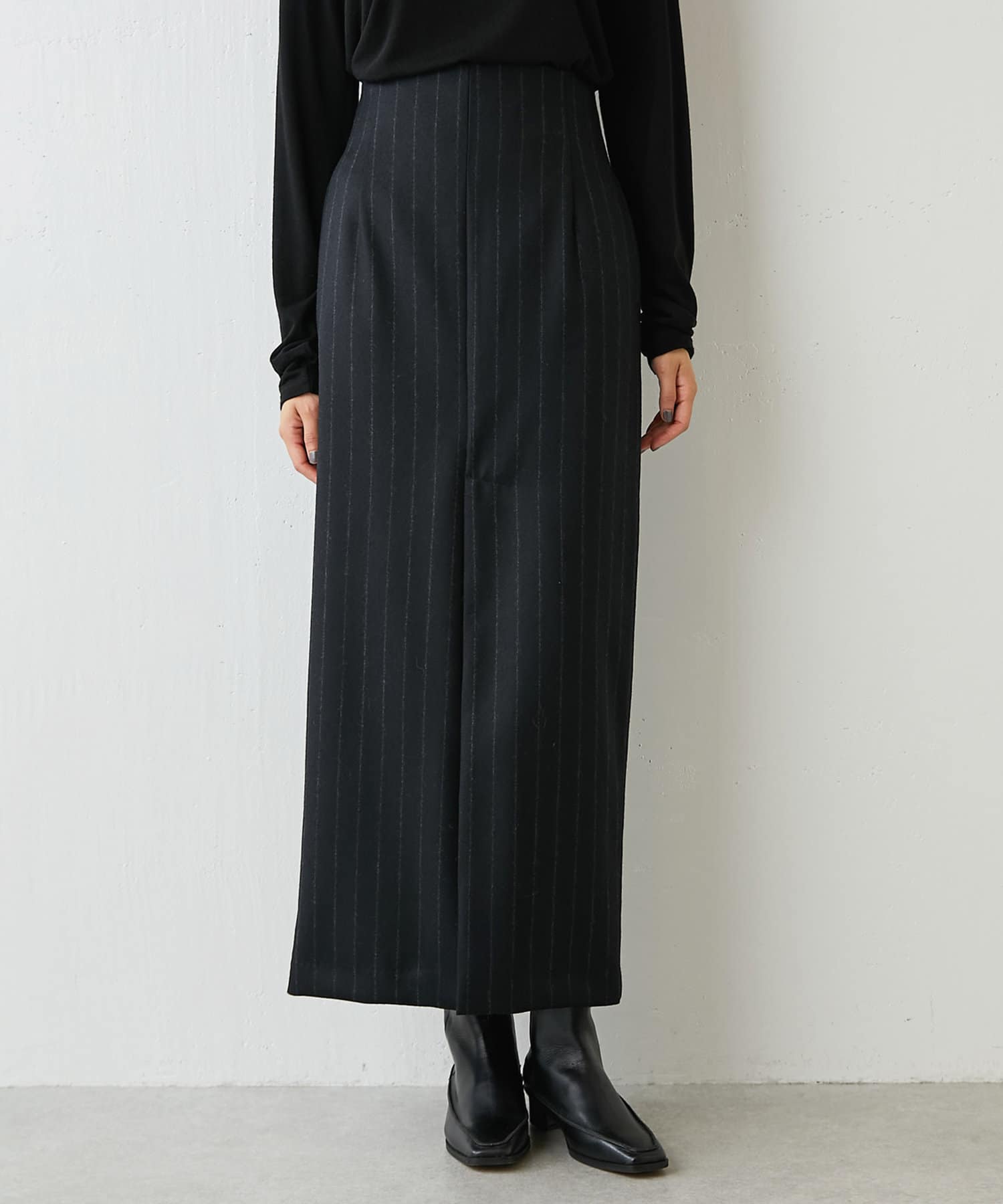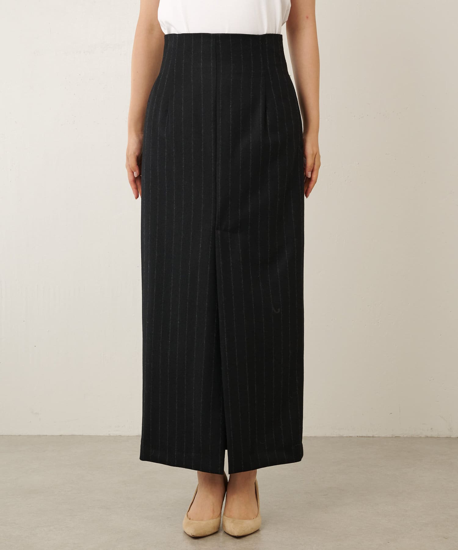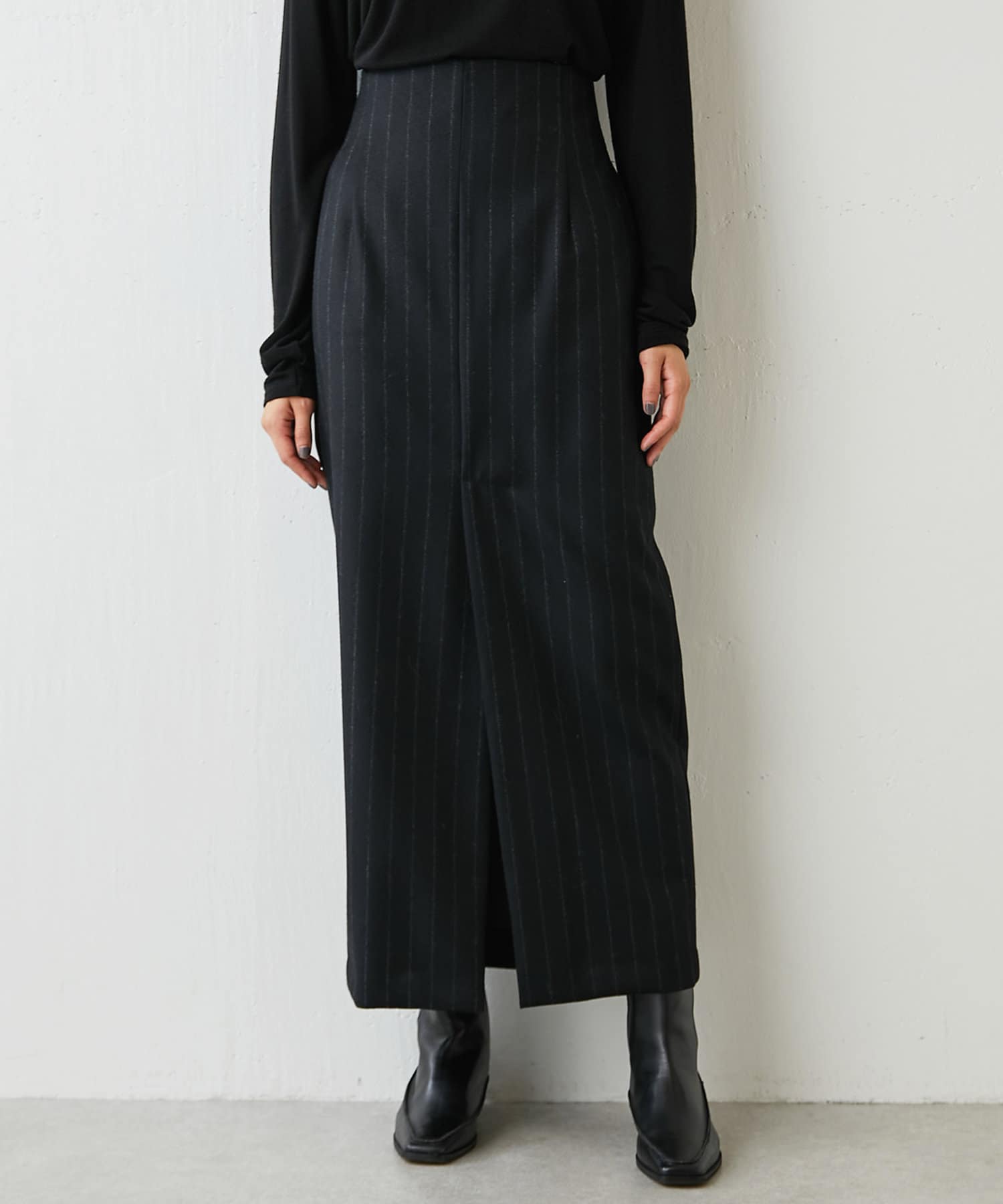 ■高めのウエスト位置がアクセントになった、スタイリッシュなロングスカート。