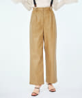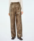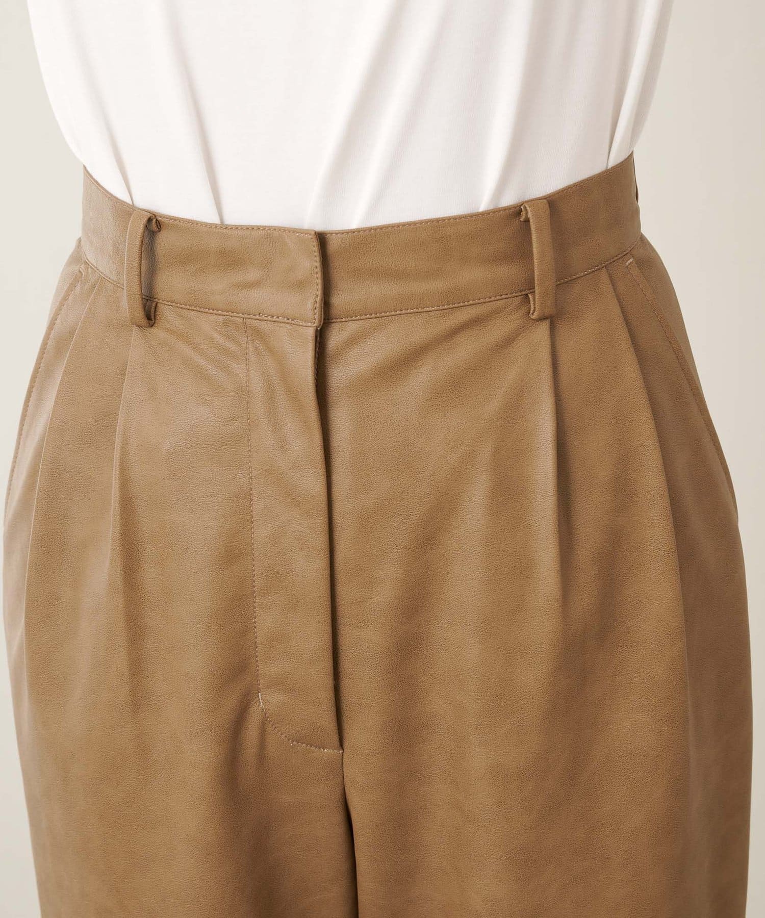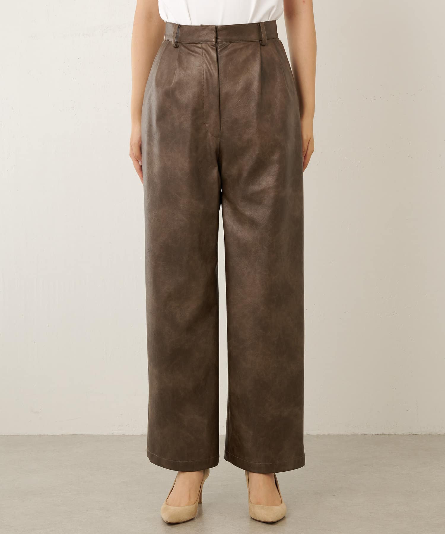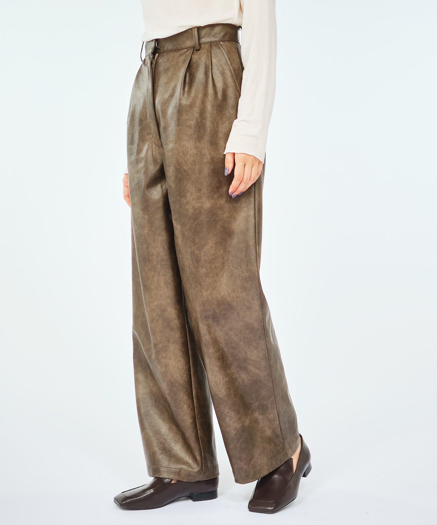 ■ヴィンテージレザーのようなムラ感のあるフェイクレザーを使用したタックパンツ。