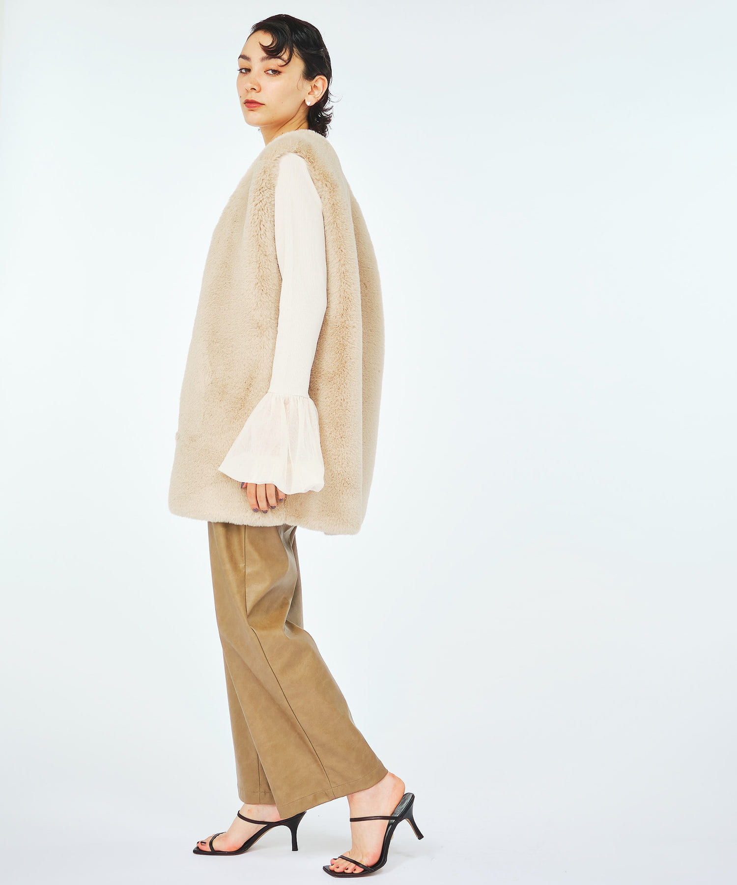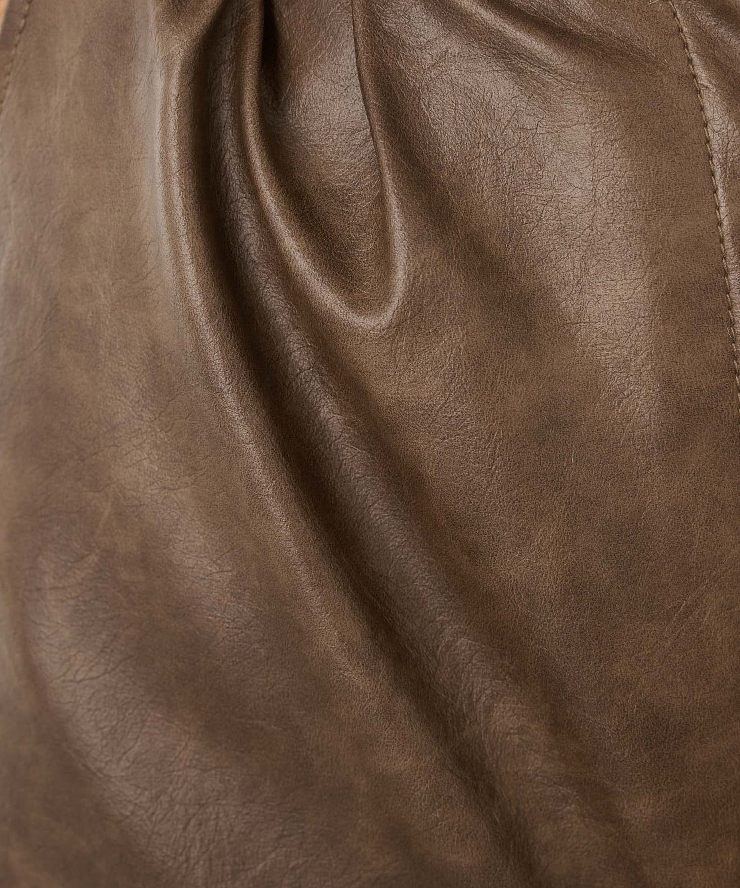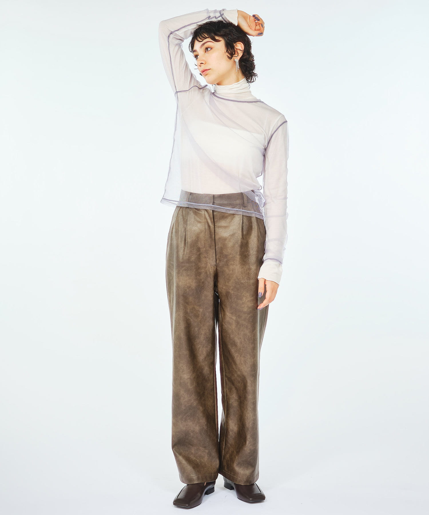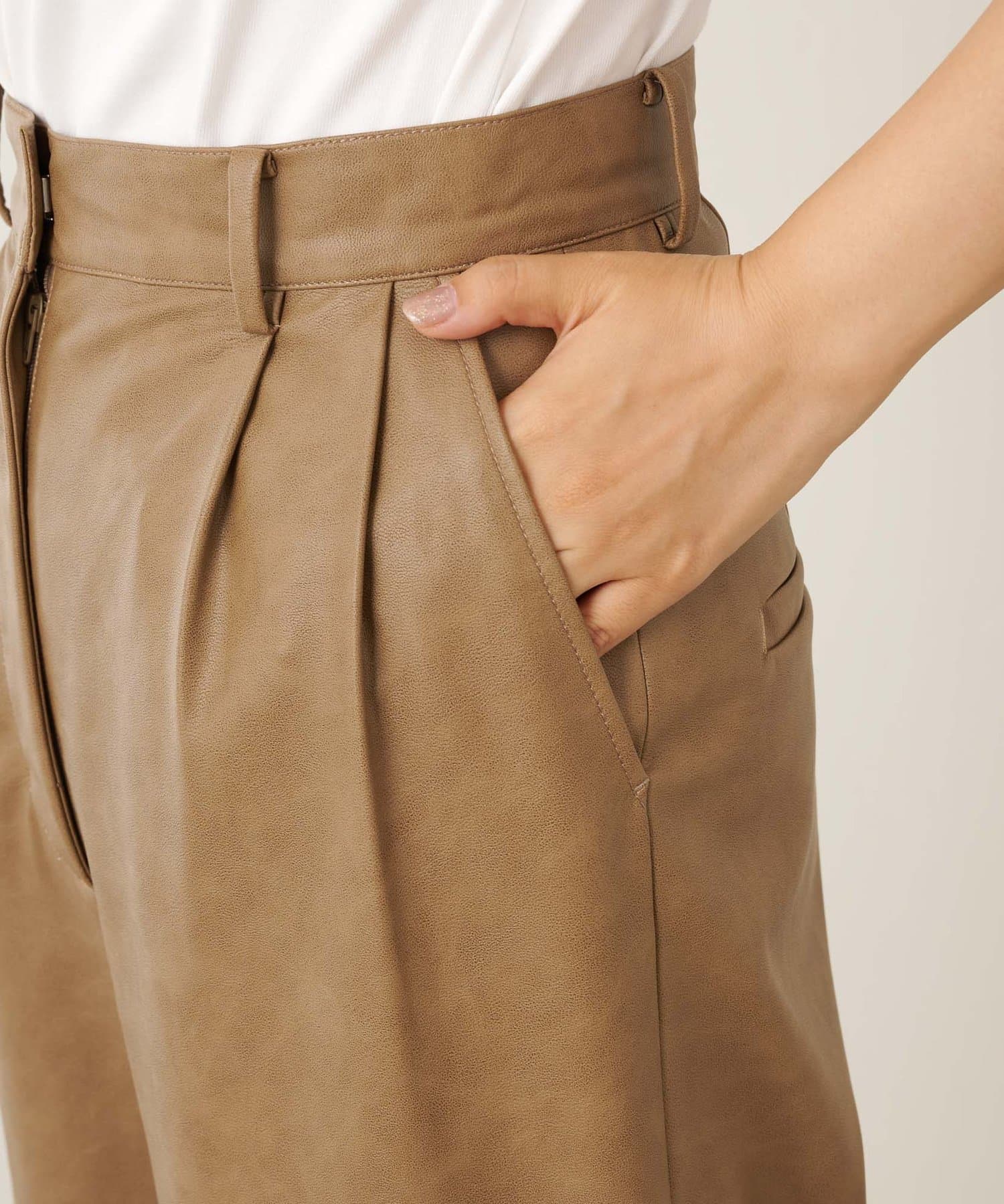 ■ヴィンテージレザーのようなムラ感のあるフェイクレザーを使用したタックパンツ。