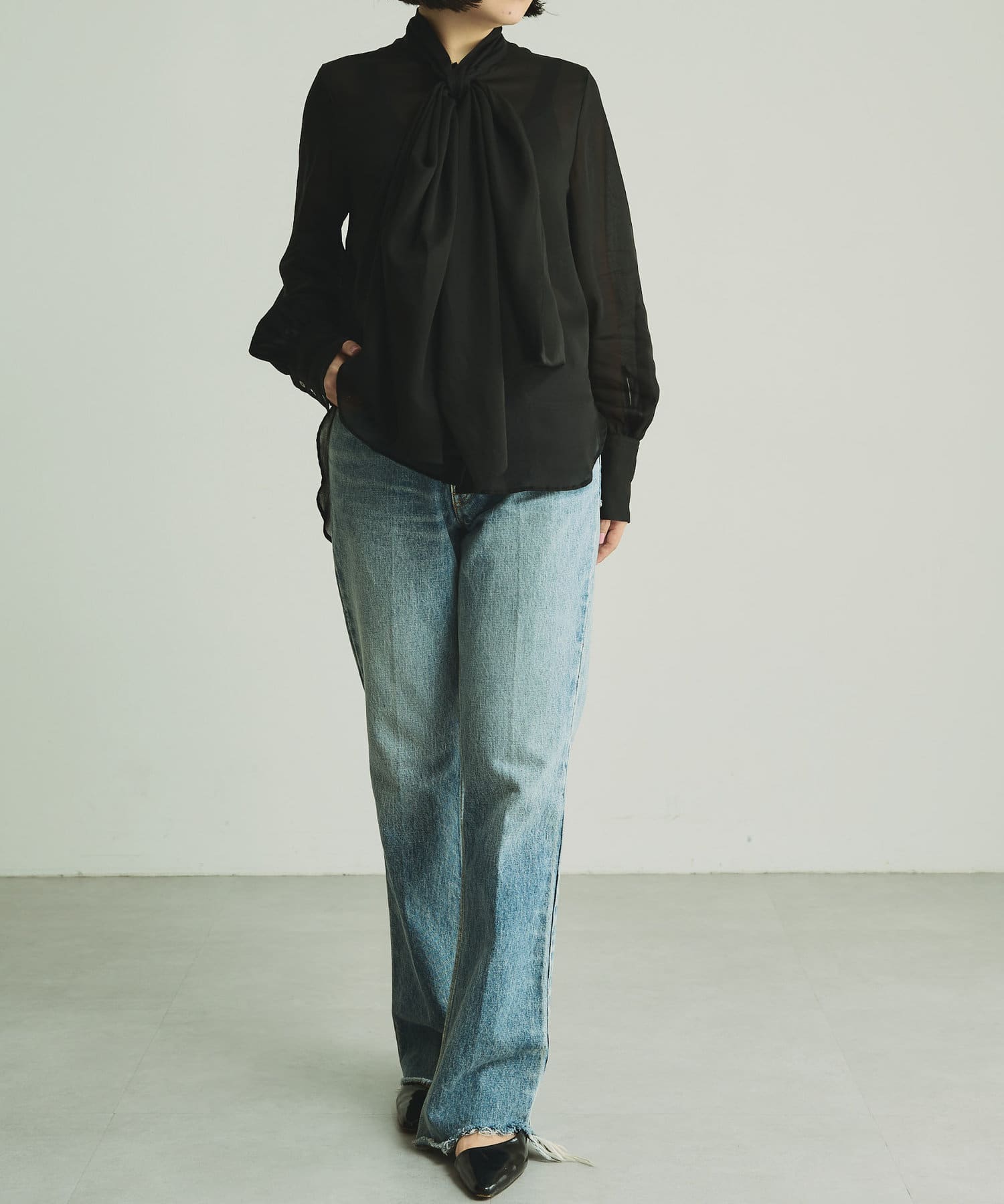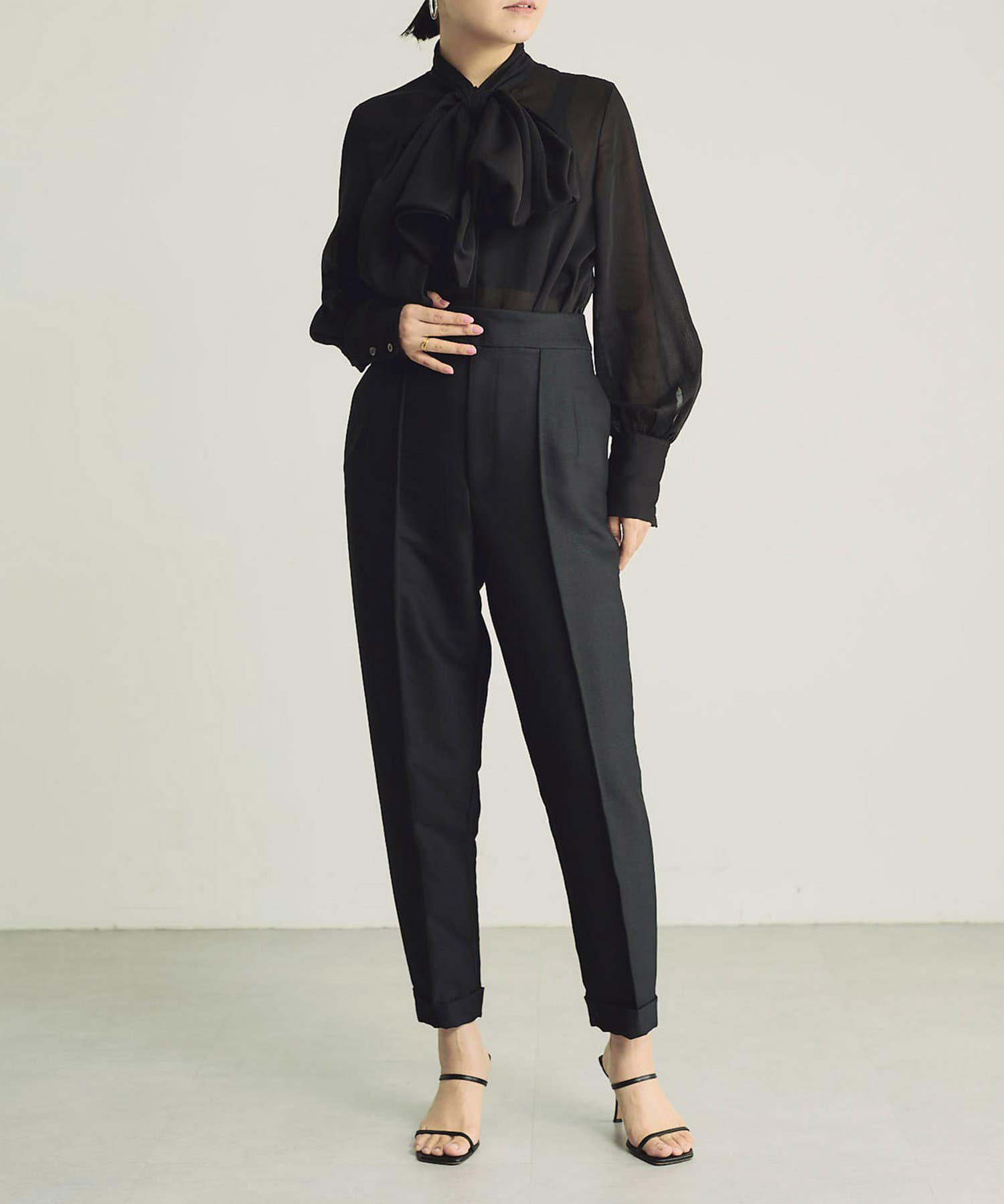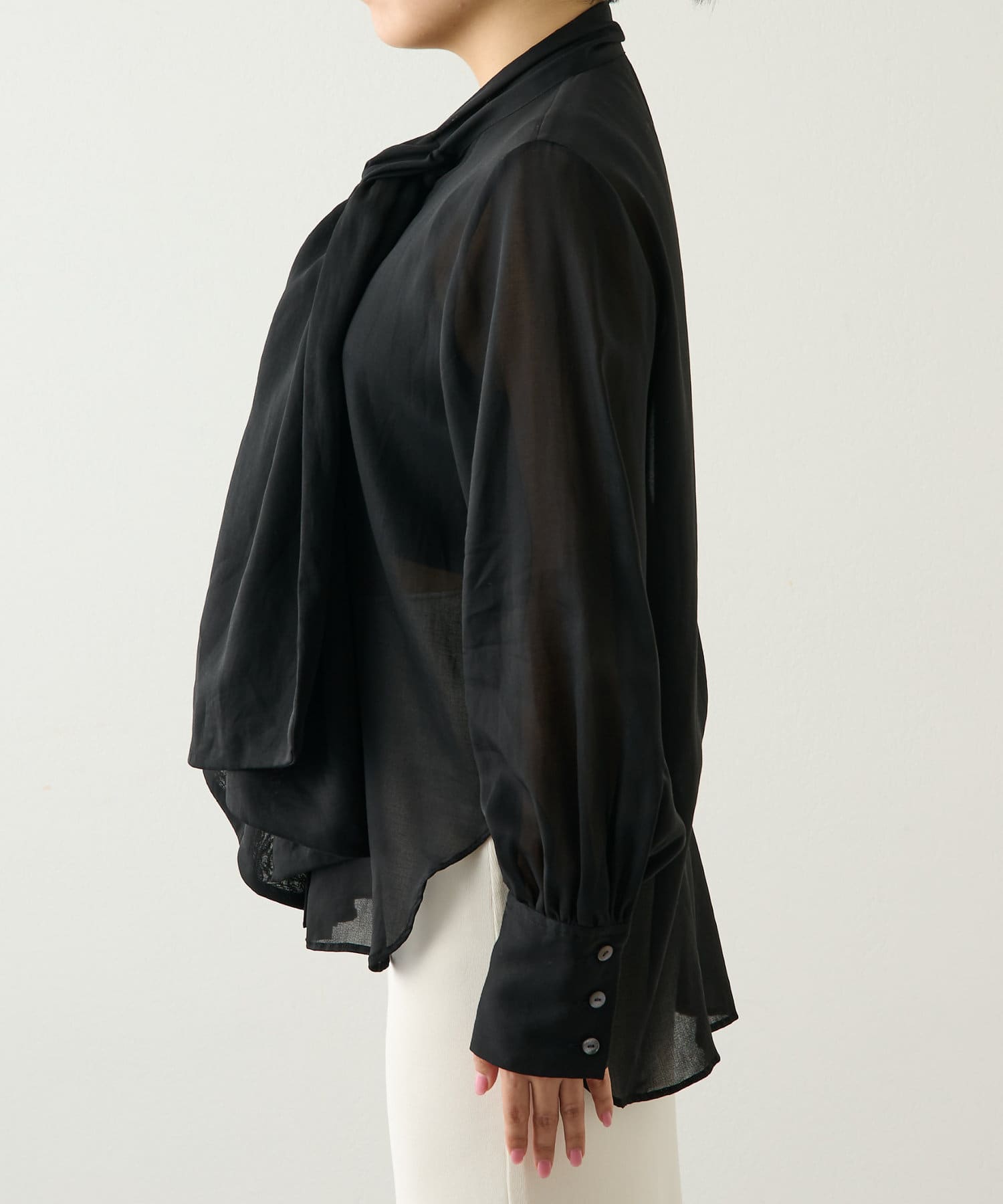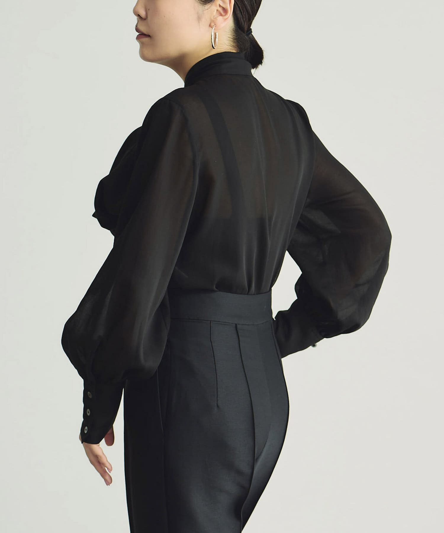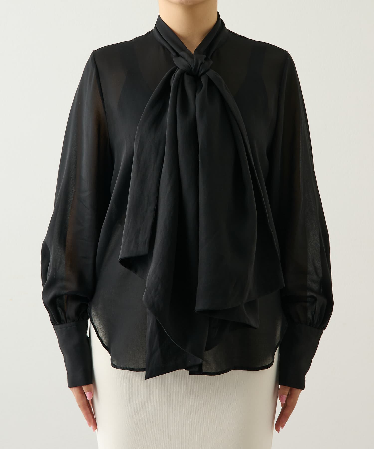 ■立体感のあるボリュームタイが華やかな印象のボウブラウス。