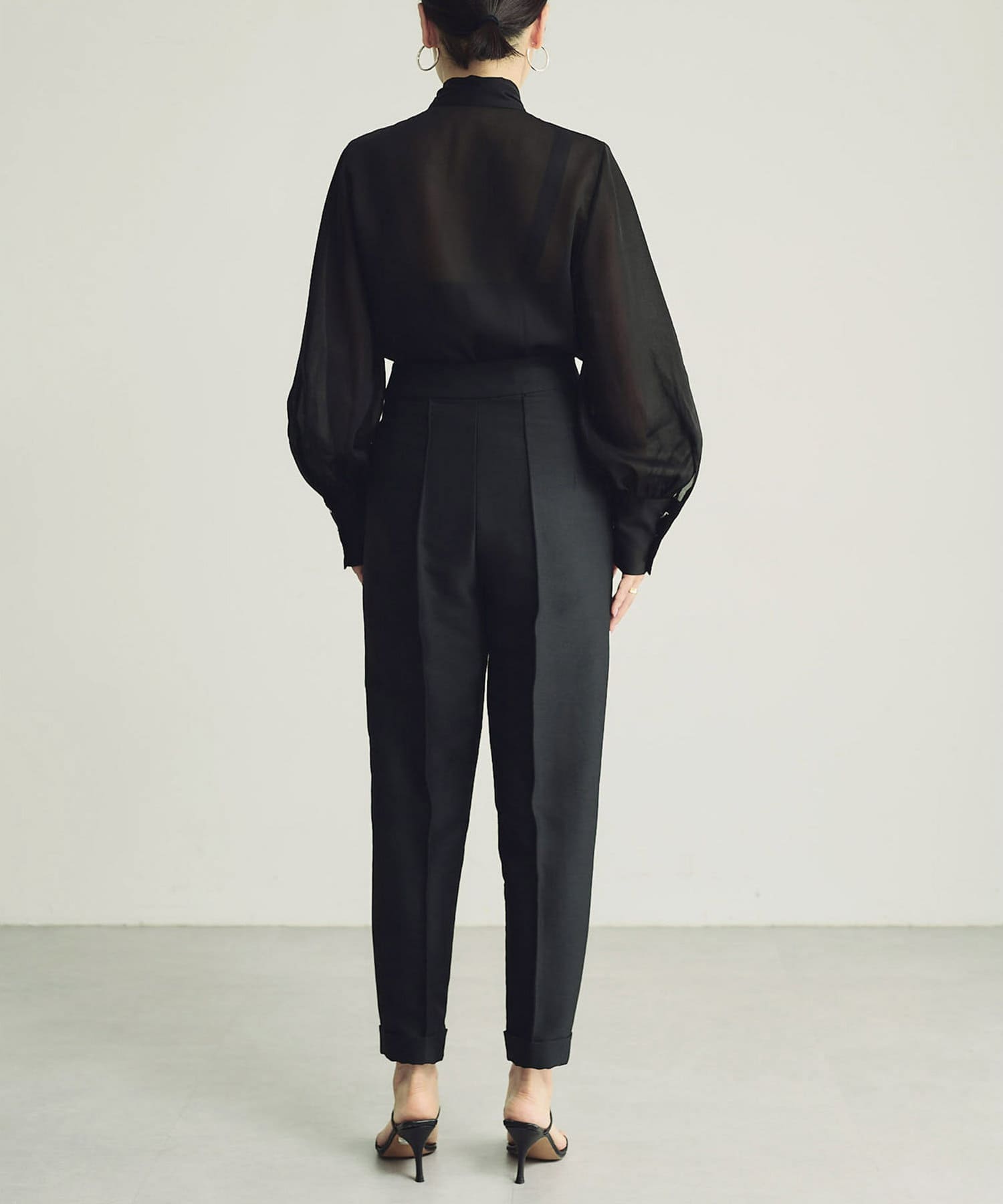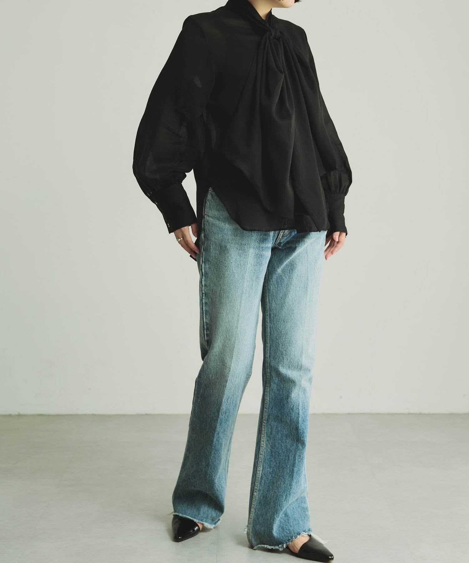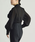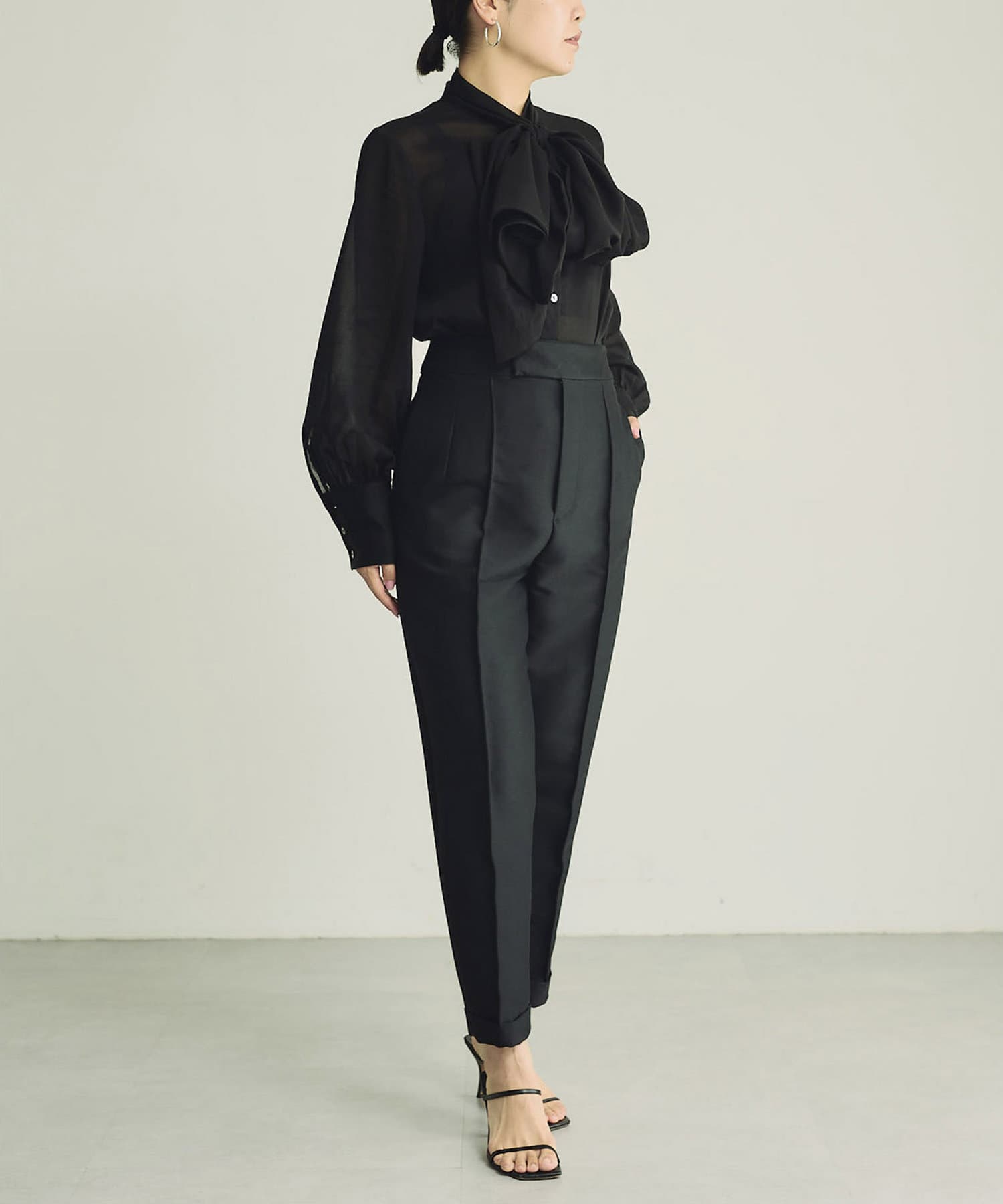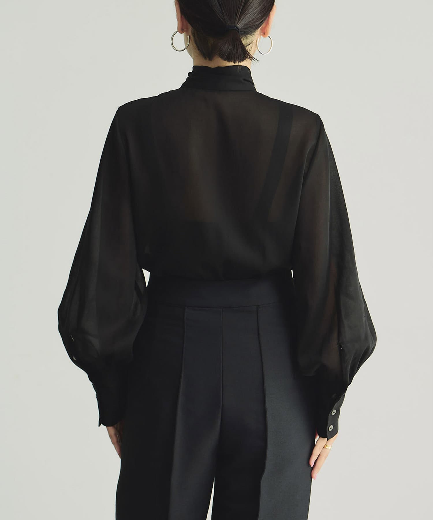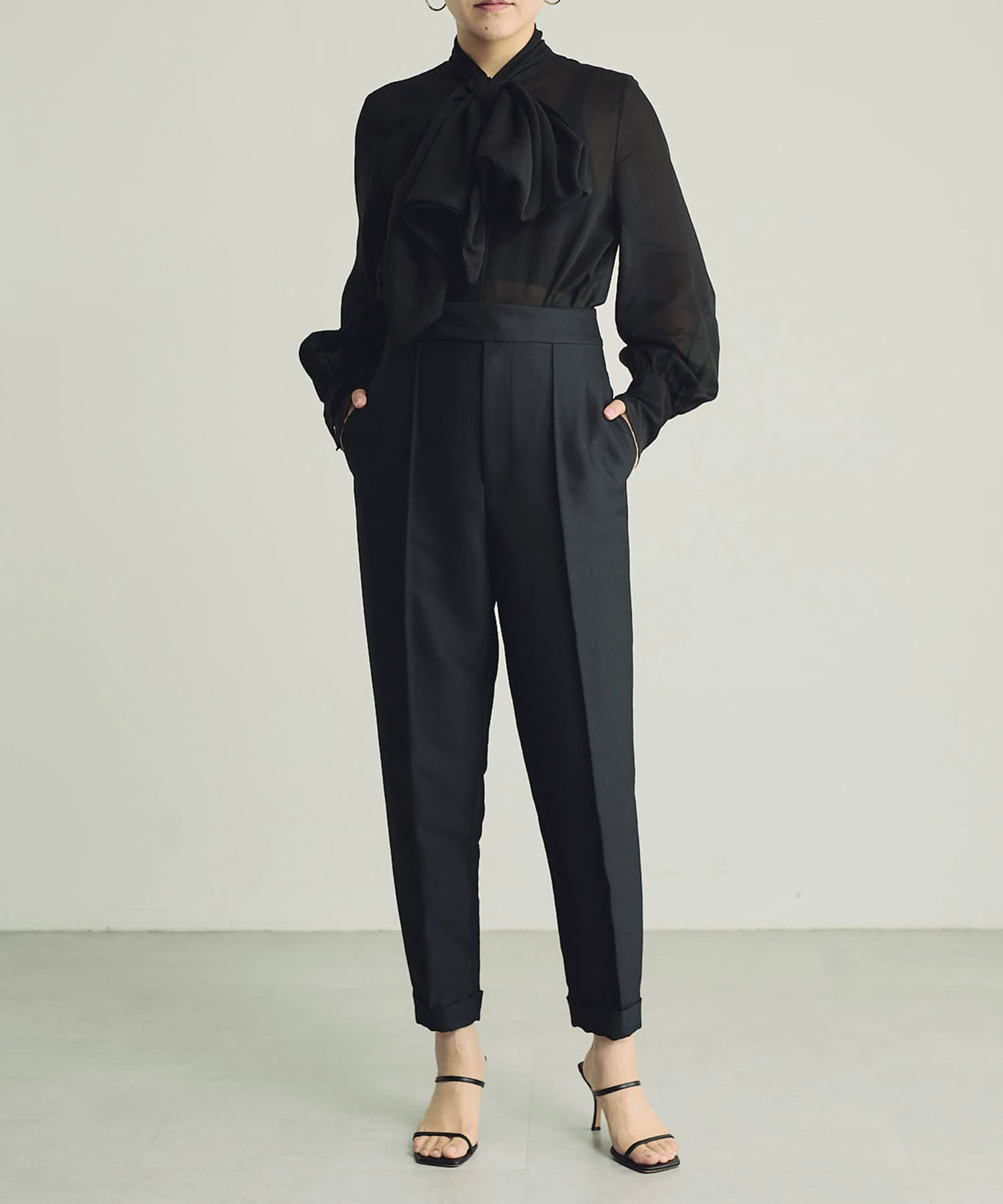 ■立体感のあるボリュームタイが華やかな印象のボウブラウス。