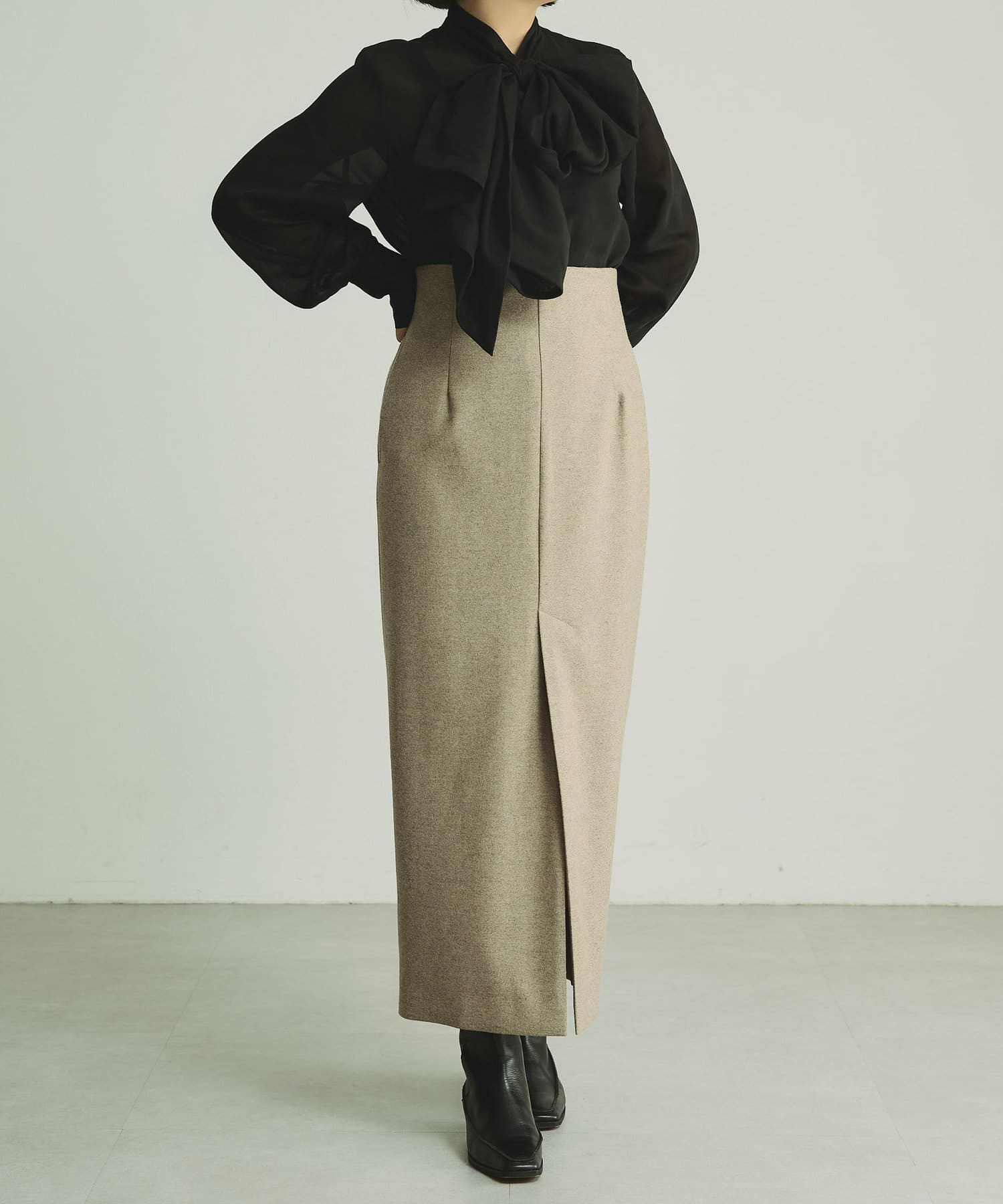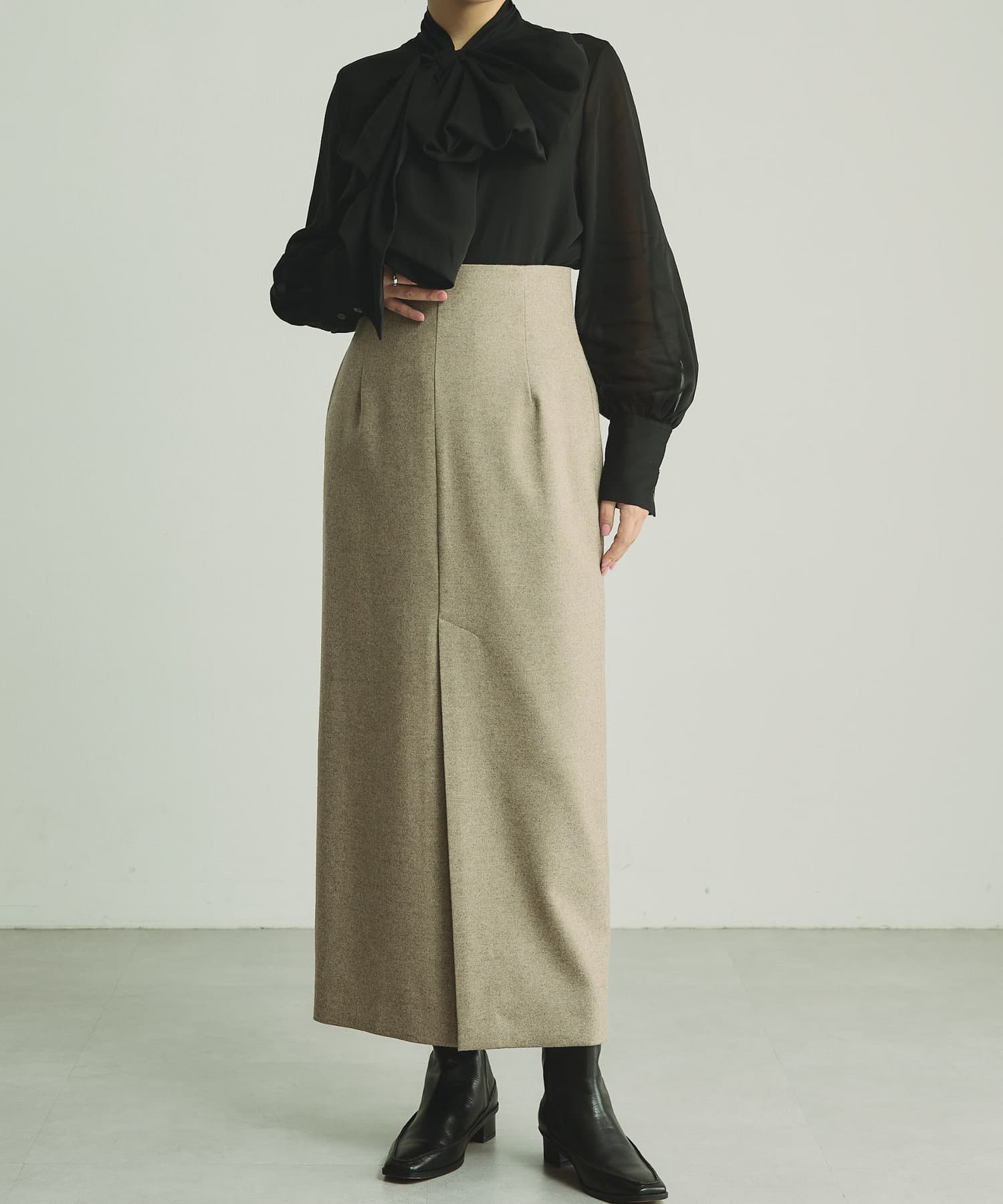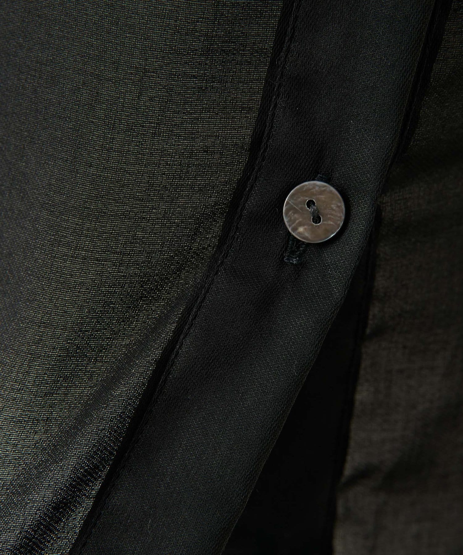 ■ボウタイを付けずにスタンドカラーとしても着用でき、一枚あれば幅広いスタイリングに着回しの効くアイテム。