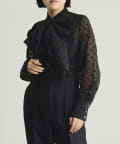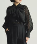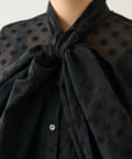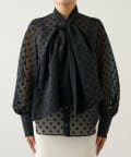 ■立体感のあるボリュームタイとドット柄が華やかなボウブラウス。