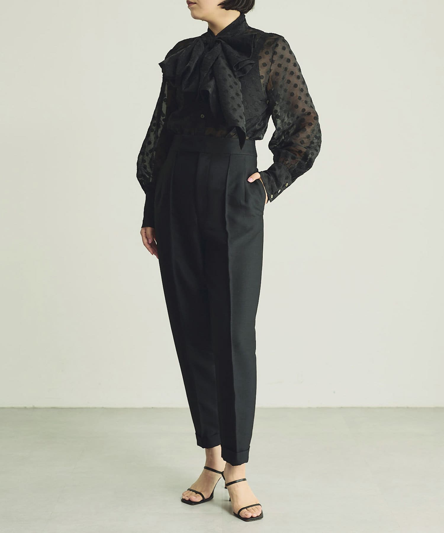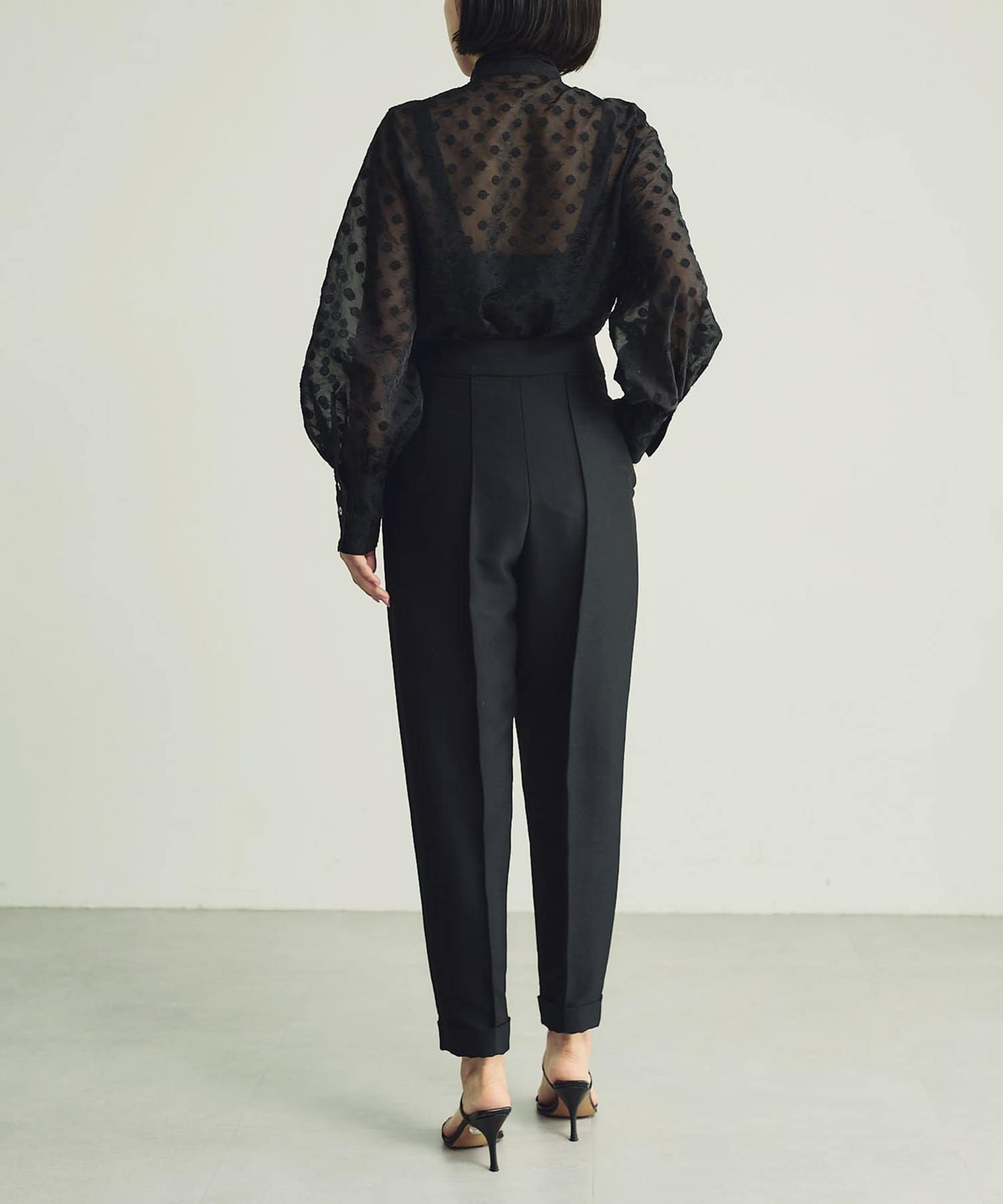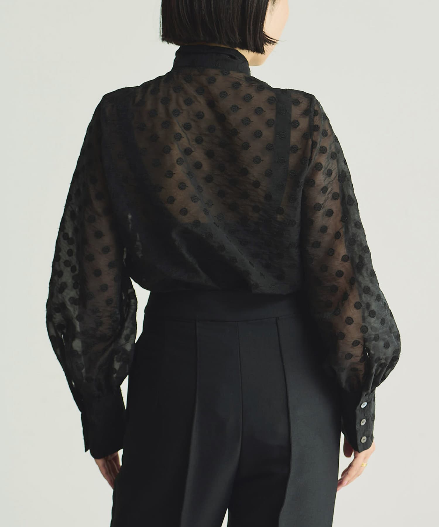 シアーな表情に品良く映えるドットが存在感をプラスするブラック。