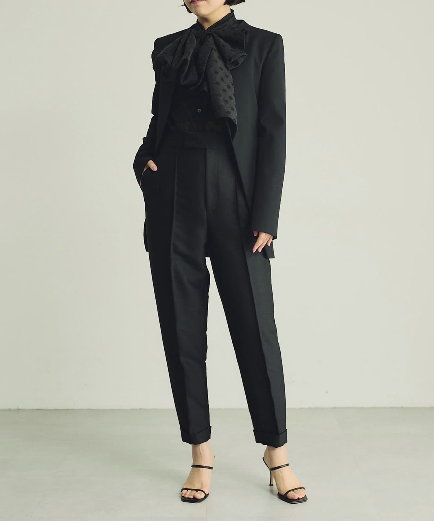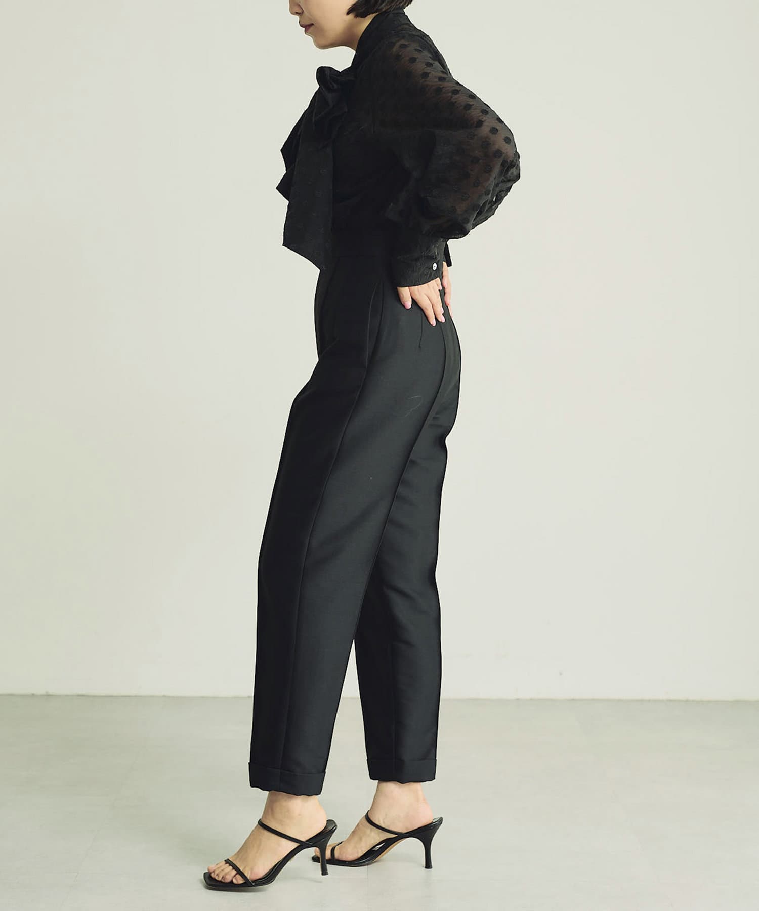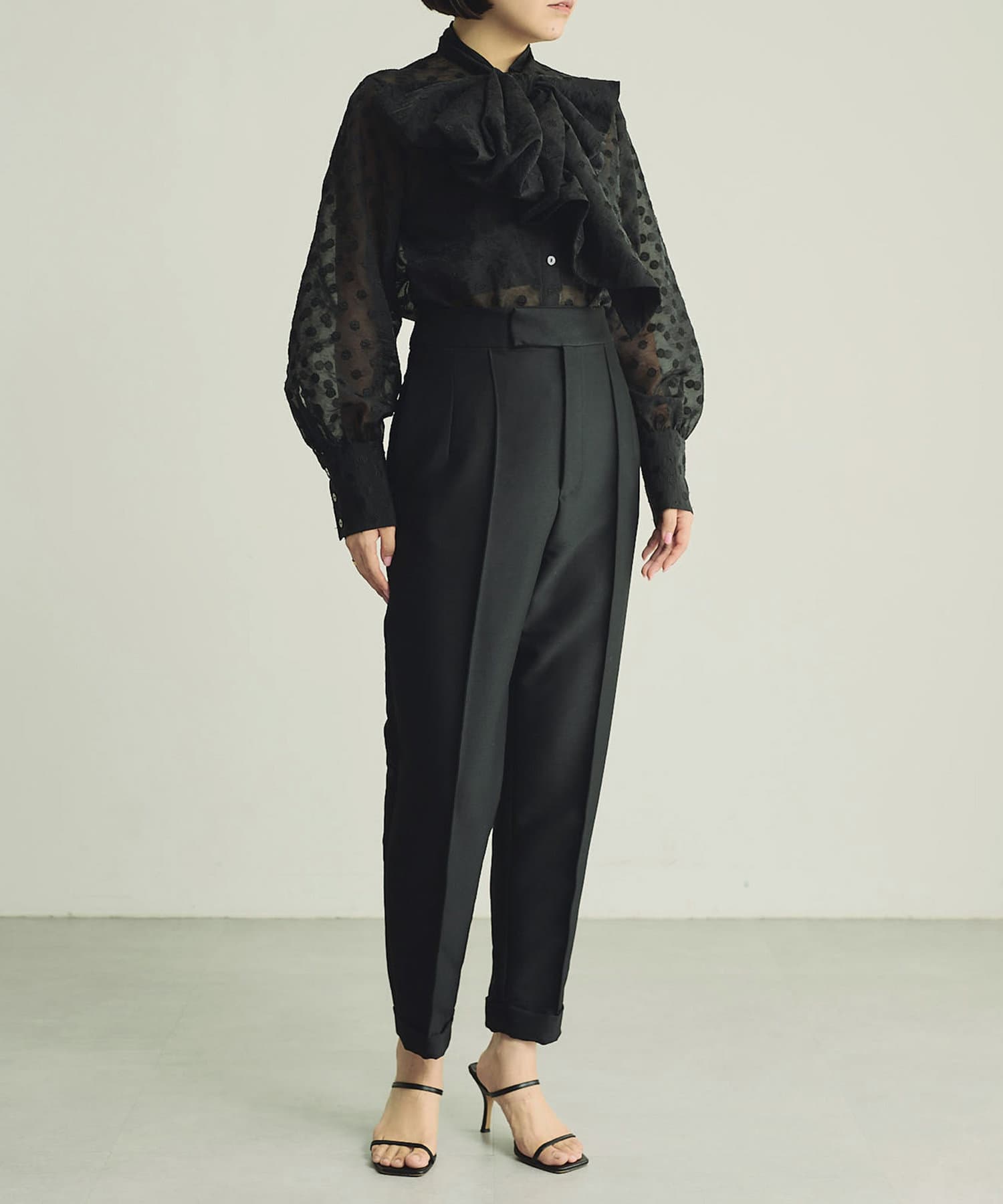 シアーな表情に品良く映えるドットが存在感をプラスするブラック。