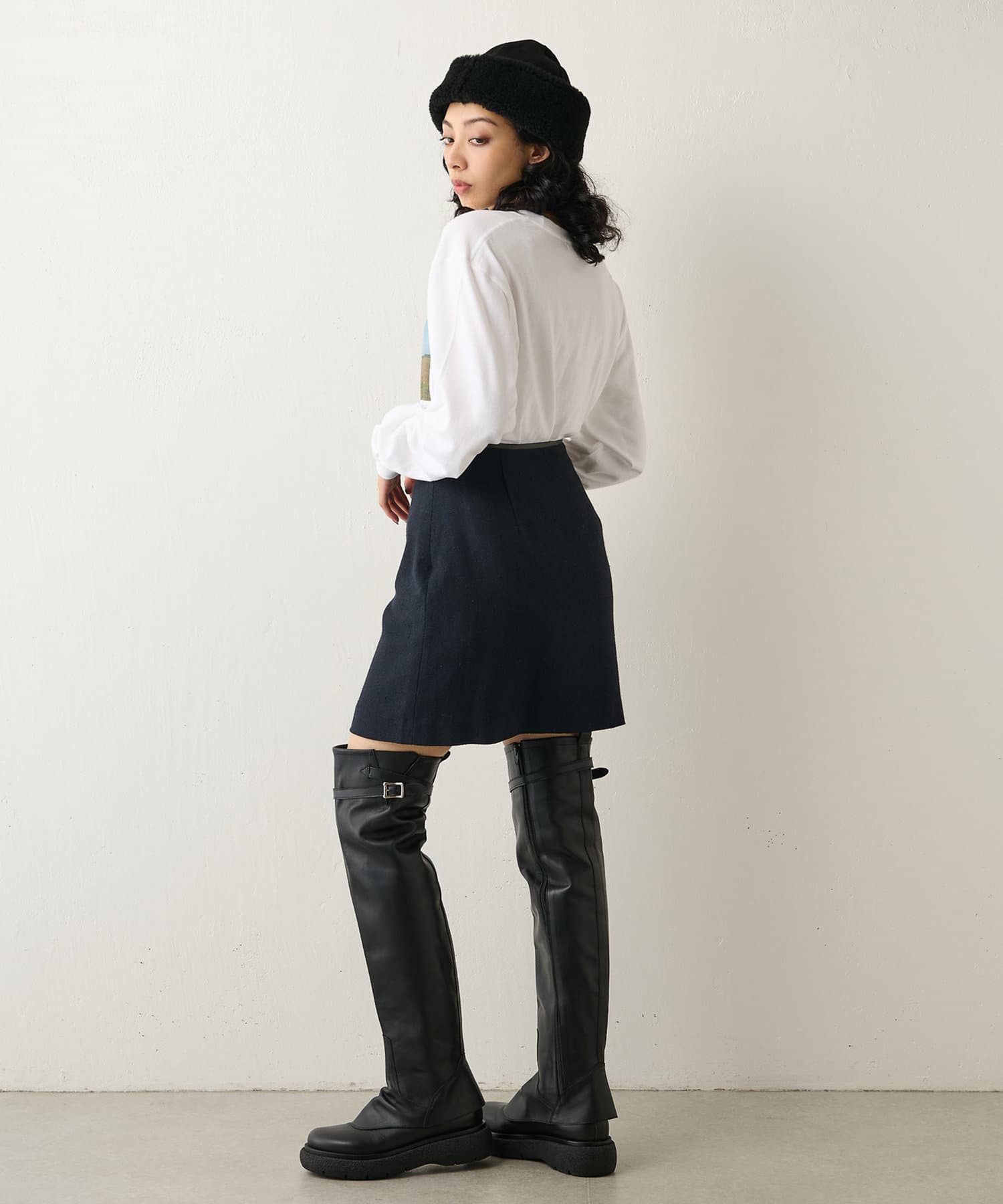 着丈、袖丈長めのサイズ感。首元も詰まり過ぎていないので着脱も簡単です。ローウエストのパンツを合わせる時には長めの着丈が嬉しい。しっかりした生地なので冬の季節にもおすすめ。ジャケットを合わせても素敵◎。オフホワイト色はインナー使いにも最適です。