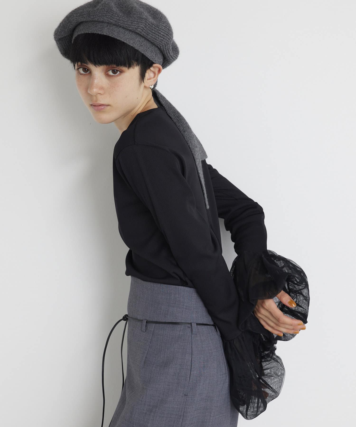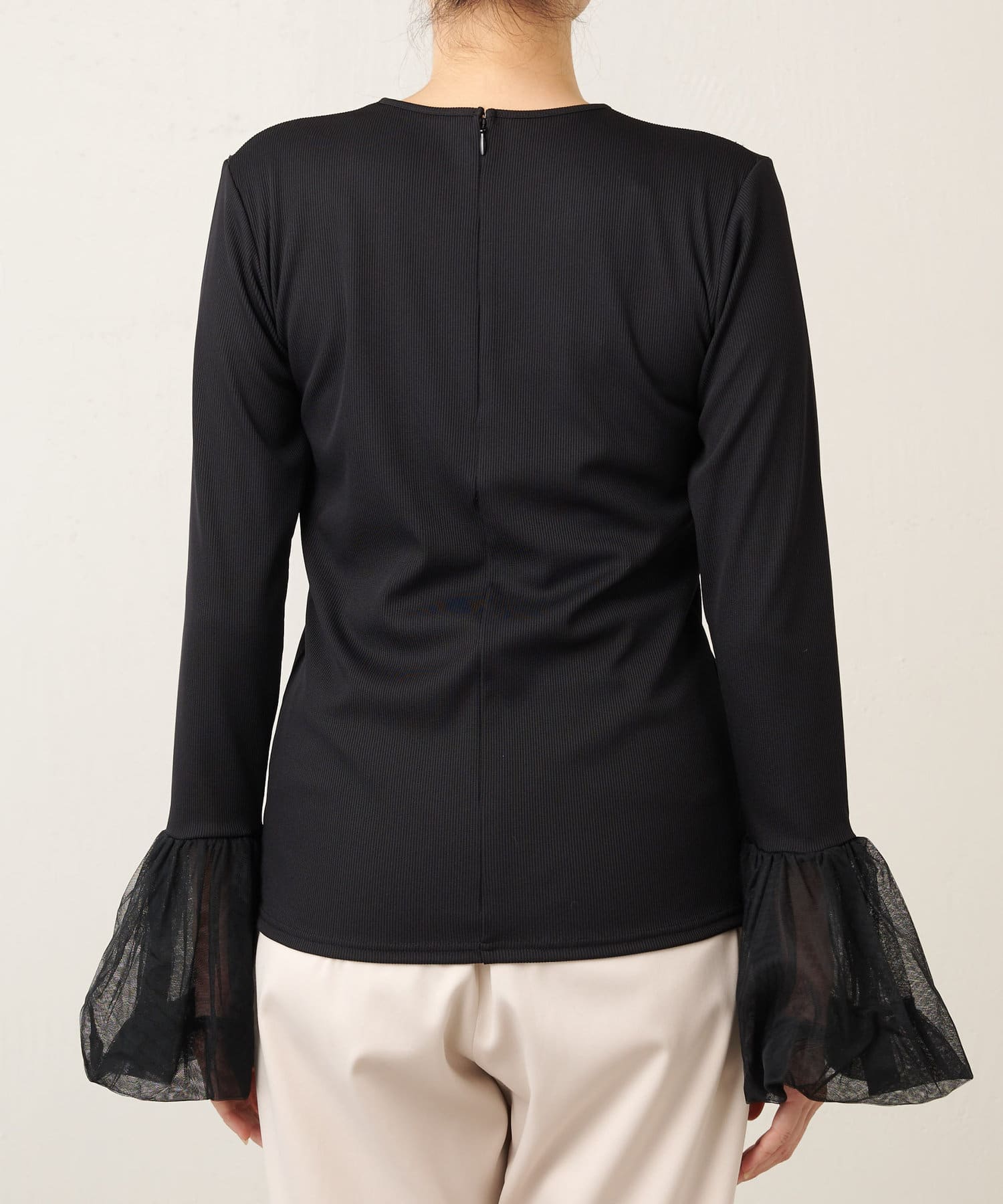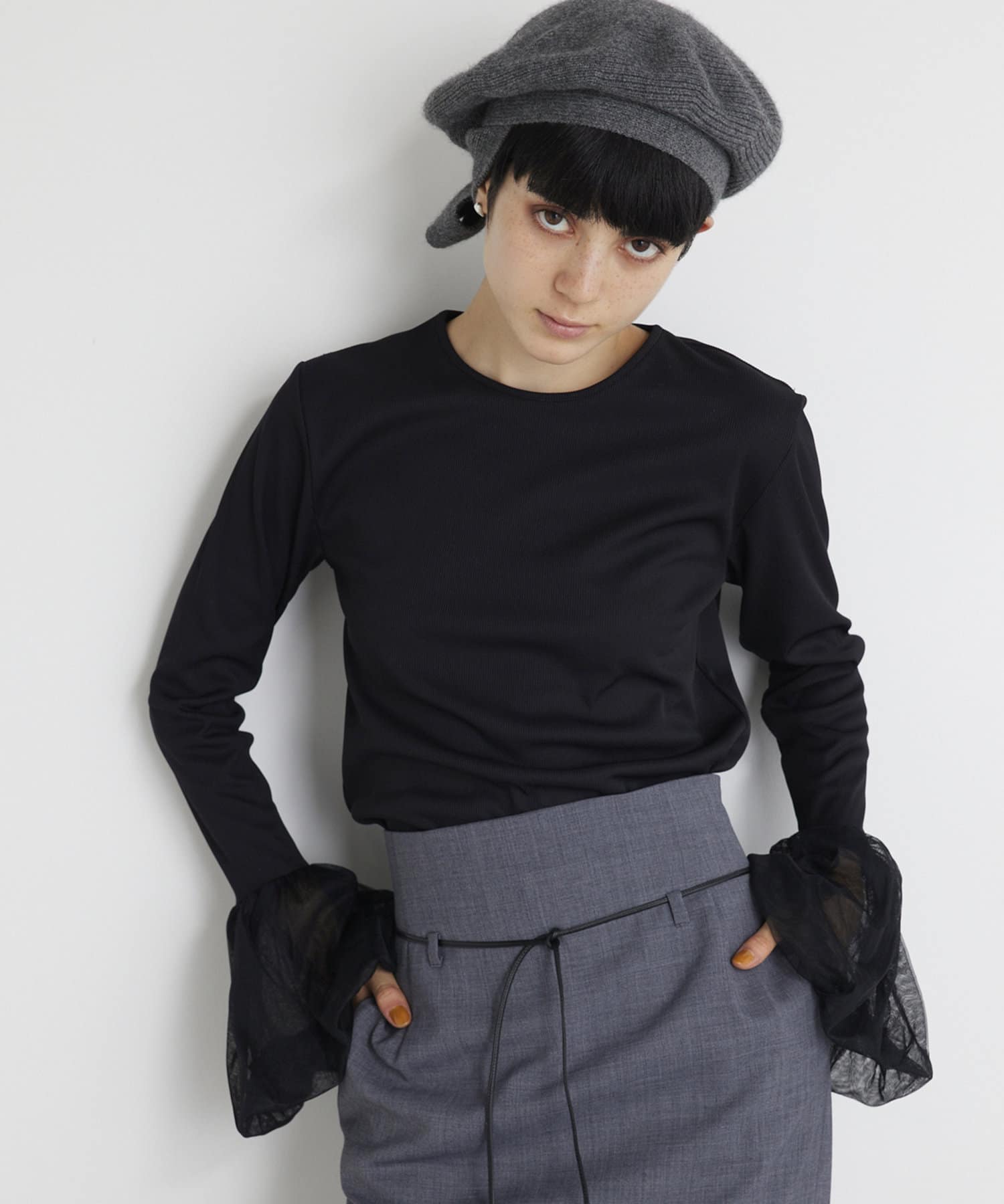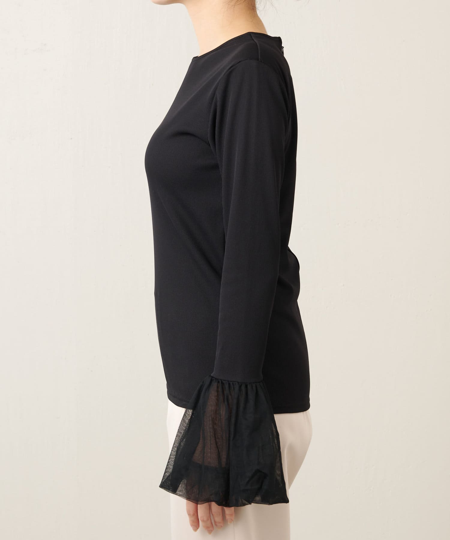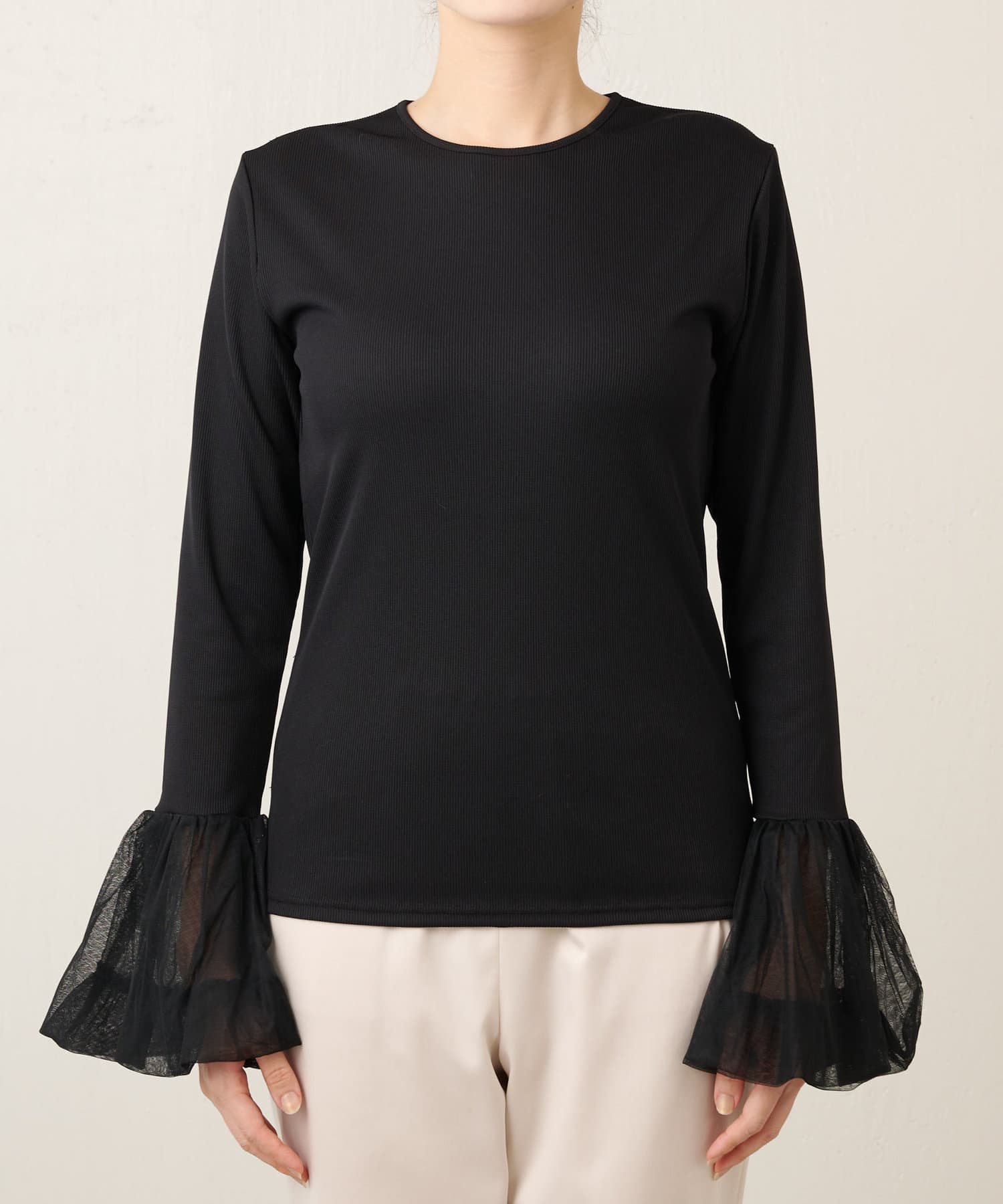 ■カットソーとチュールの異素材を組み合わせたロングスリーブトップス。