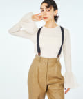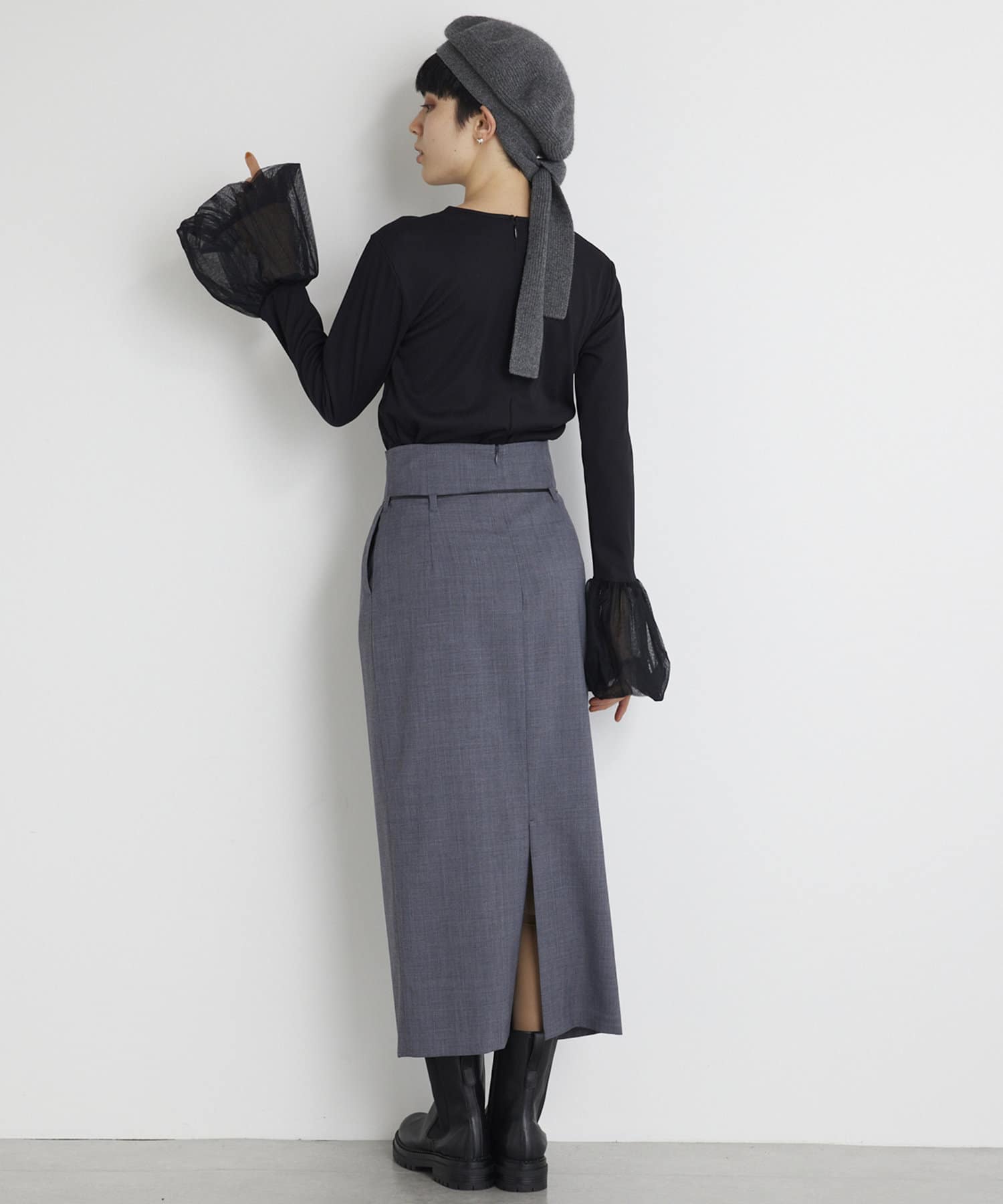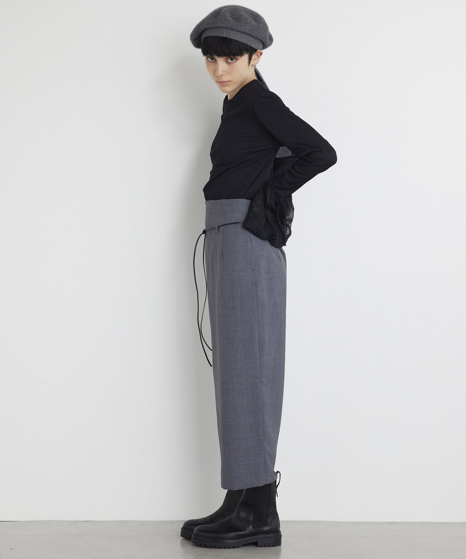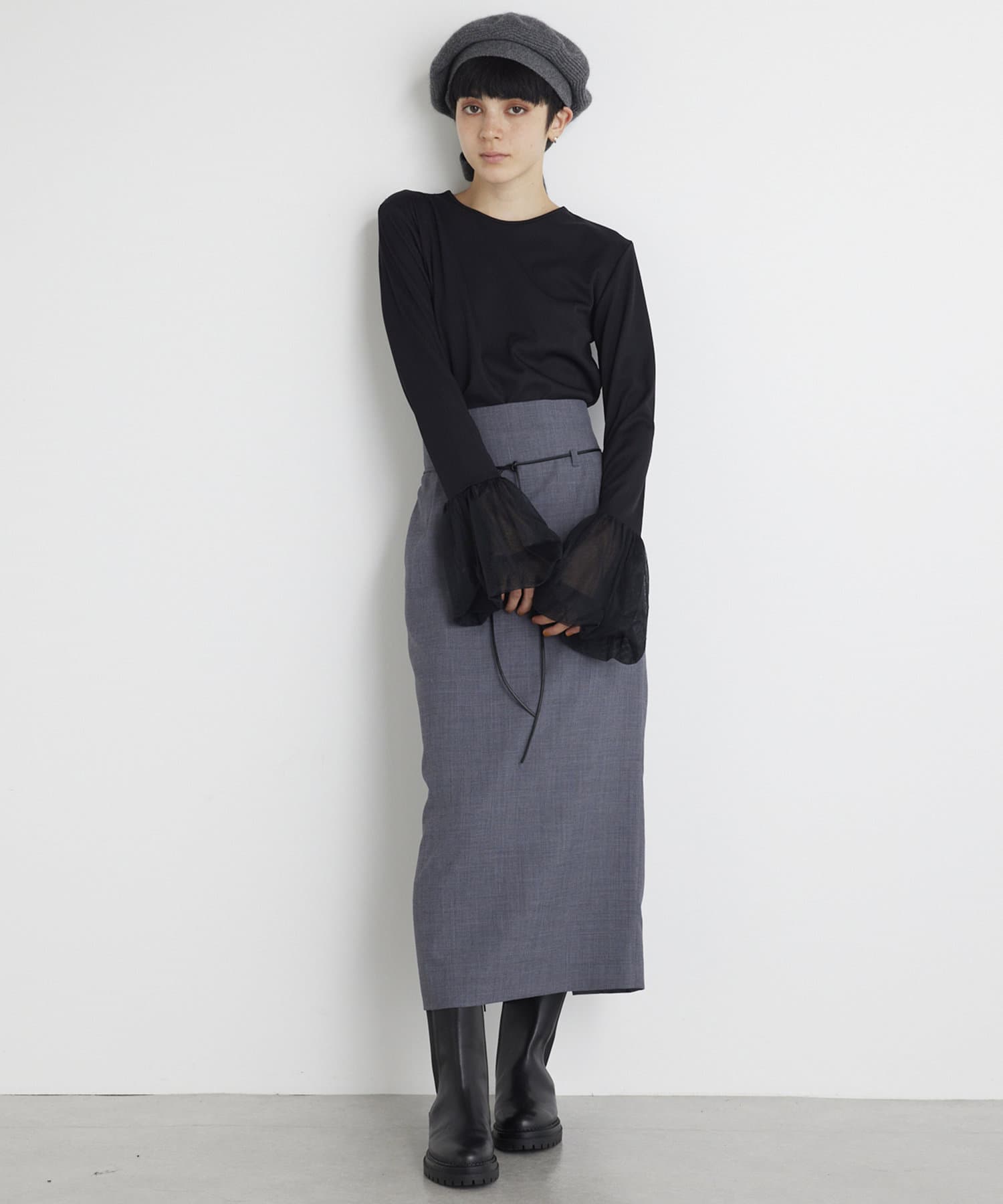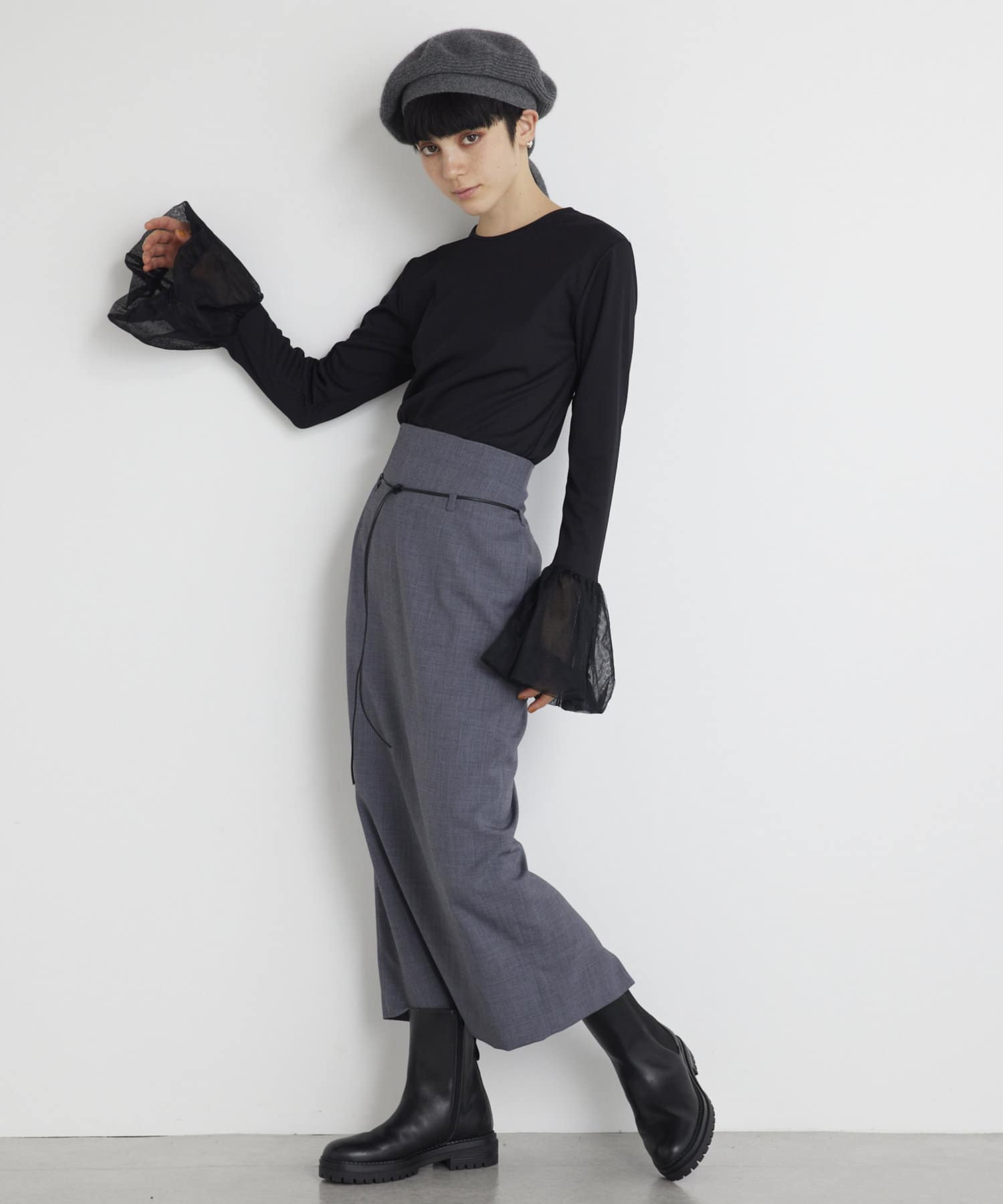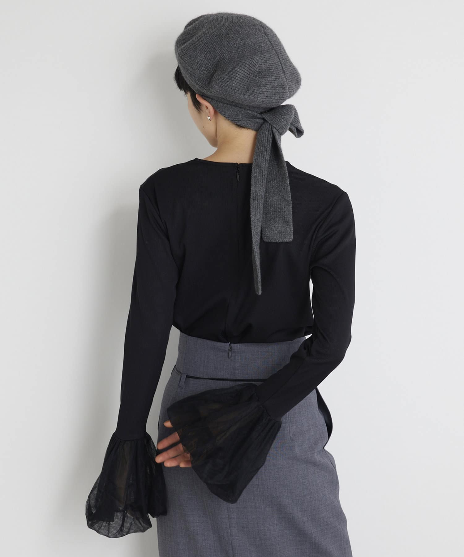 ■カットソーとチュールの異素材を組み合わせたロングスリーブトップス。